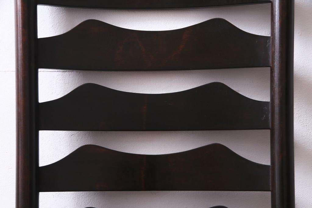 ビンテージ 松本民芸家具 #23型 ラッシ座面 山並みの背貫が素敵なラダーバックチェア(椅子)(定価約17.2万円)(3)