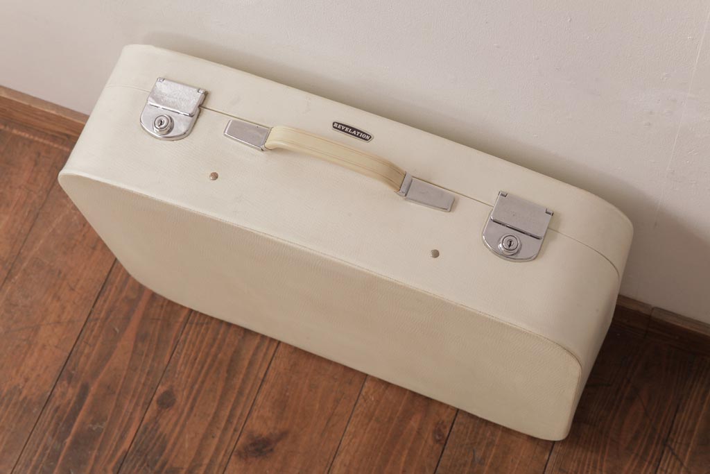 イギリスビンテージ REVELATION社 収納とディスプレイが楽しめるホワイトカラーのトランク(鞄)