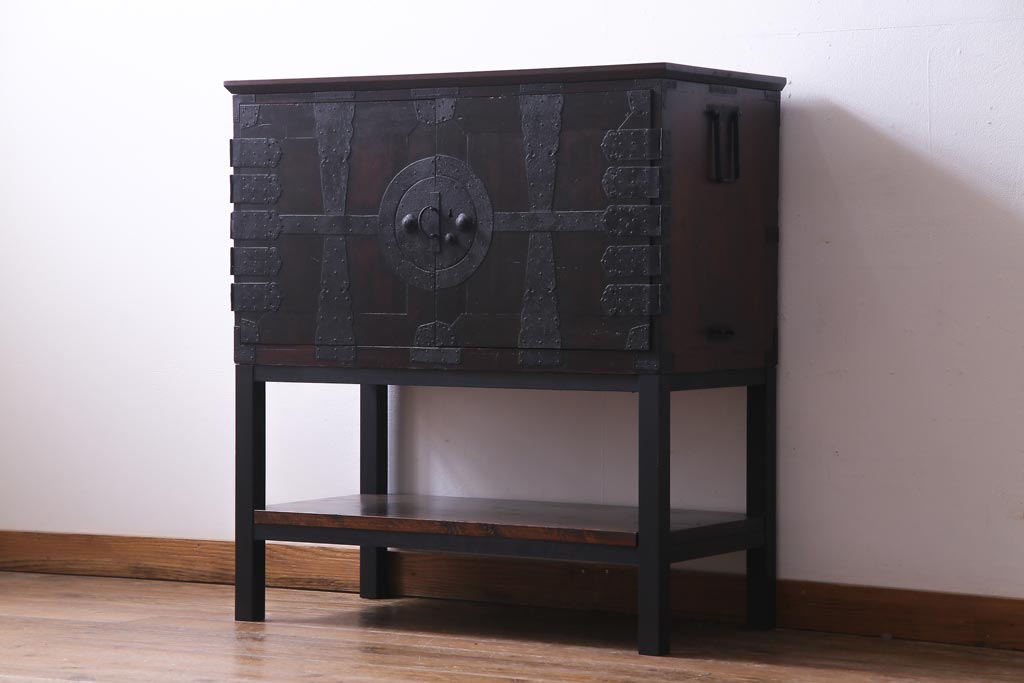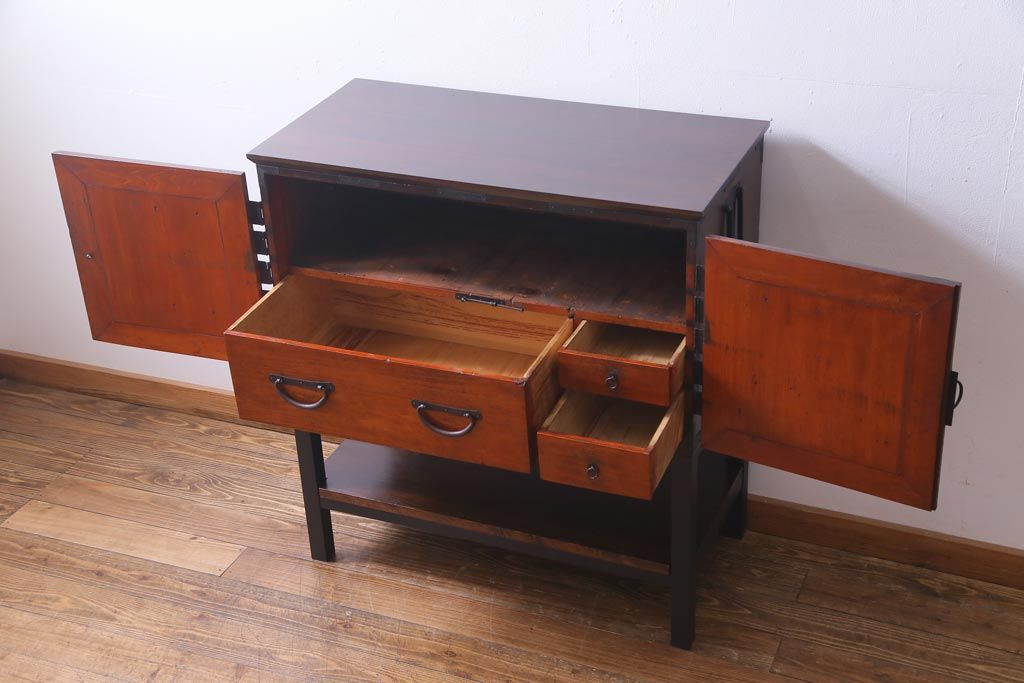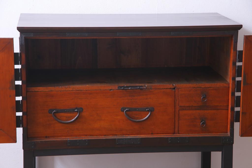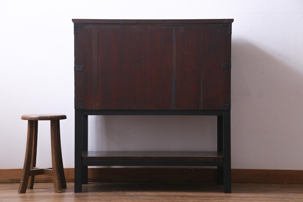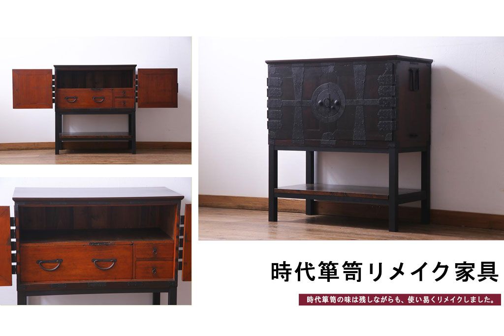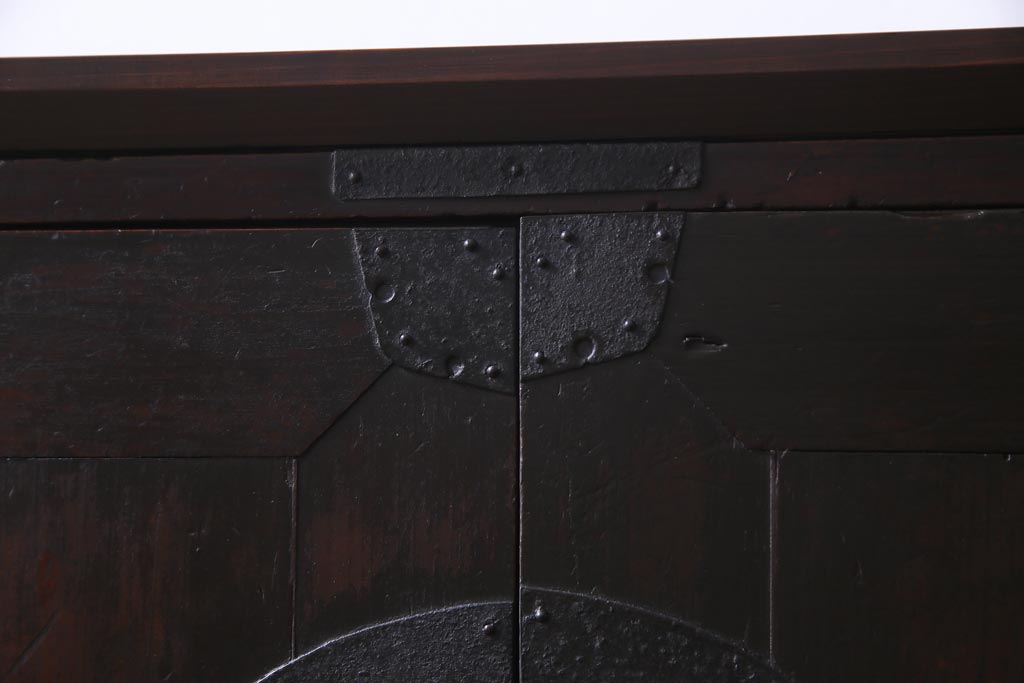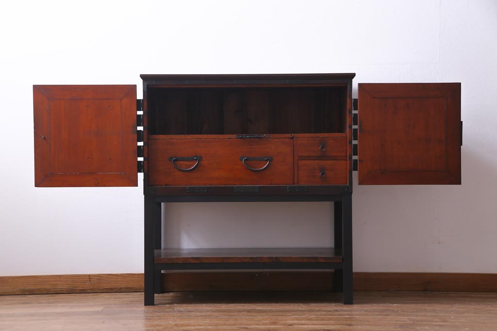和製アンティーク リメイク家具 杉材 観音開き 隠し付き 渋さ漂う十字金具がカッコイイ箪笥サイドボード(収納棚、戸棚)