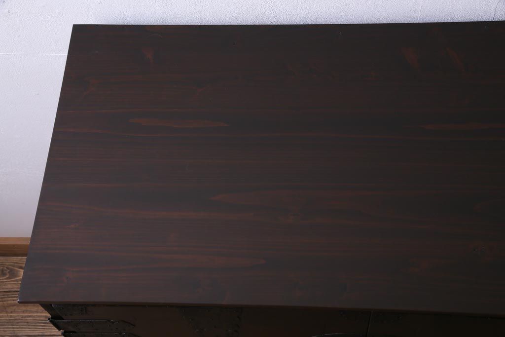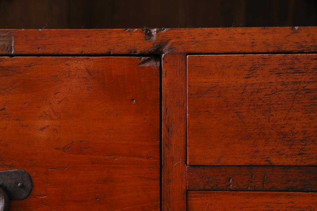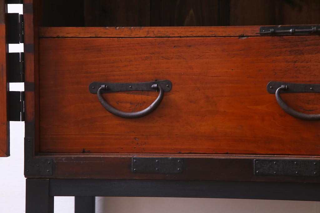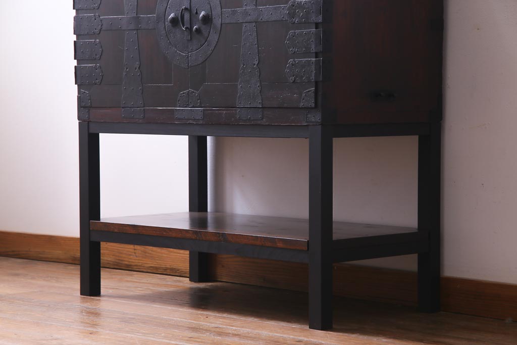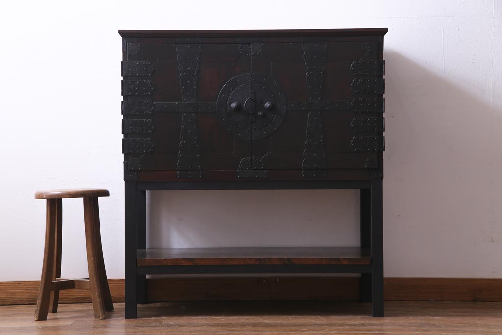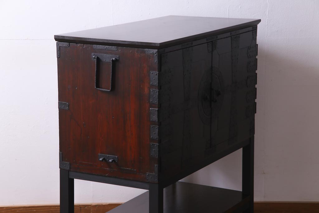 和製アンティーク リメイク家具 杉材 観音開き 隠し付き 渋さ漂う十字金具がカッコイイ箪笥サイドボード(収納棚、戸棚)