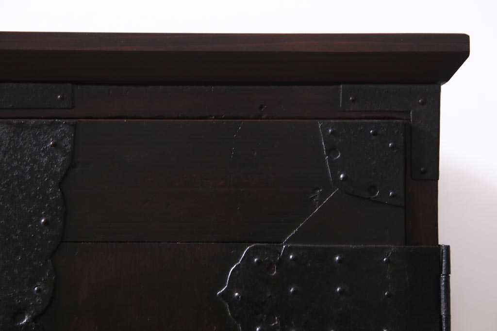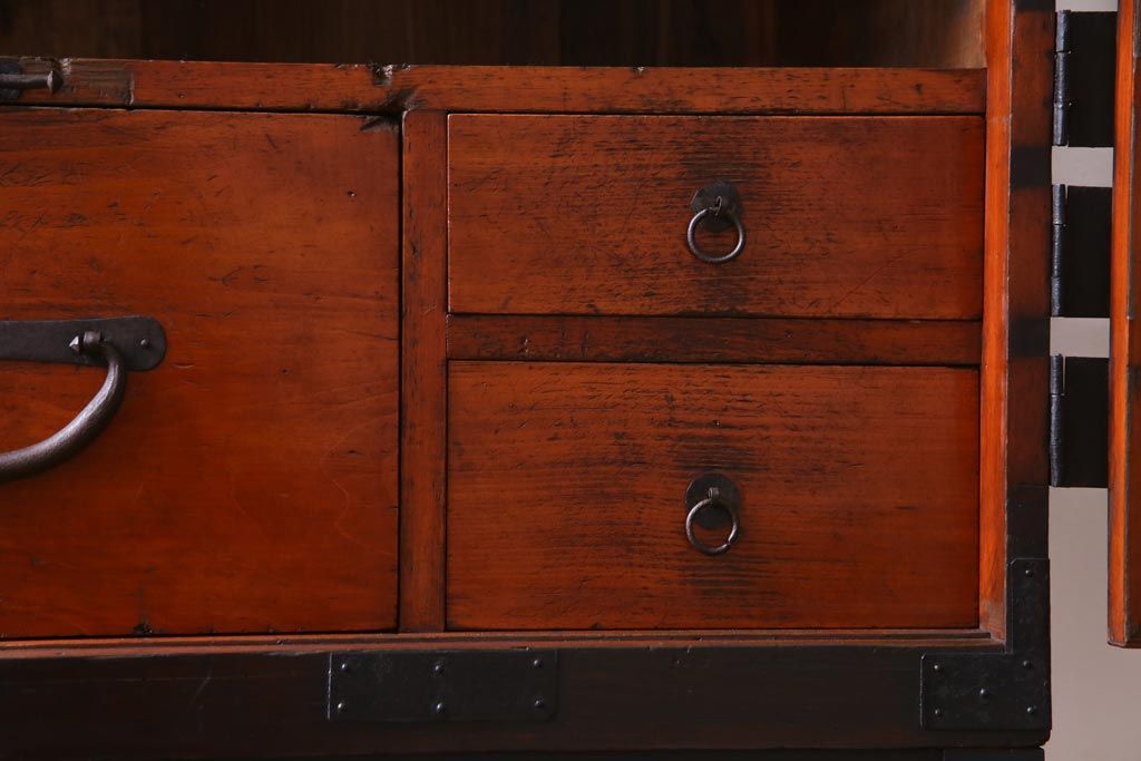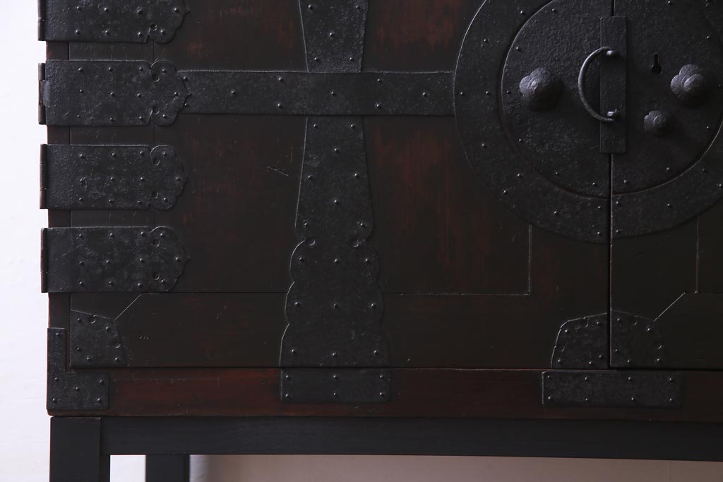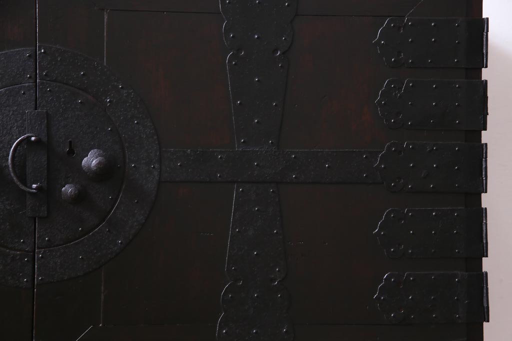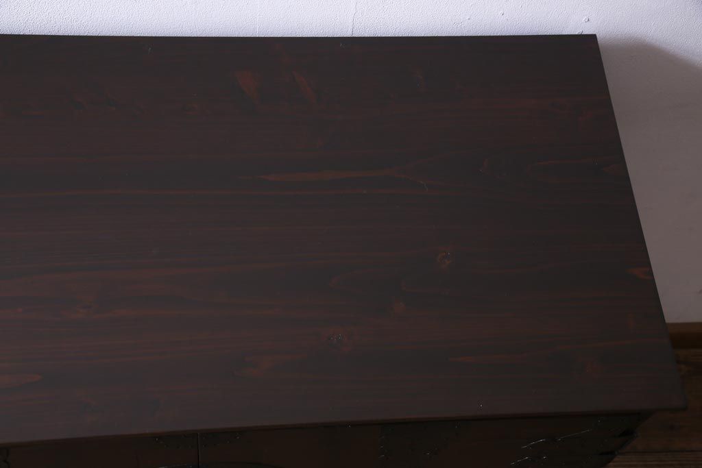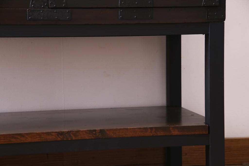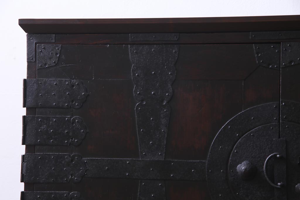 和製アンティーク リメイク家具 杉材 観音開き 隠し付き 渋さ漂う十字金具がカッコイイ箪笥サイドボード(収納棚、戸棚)