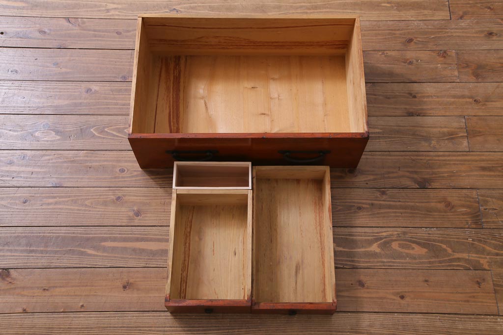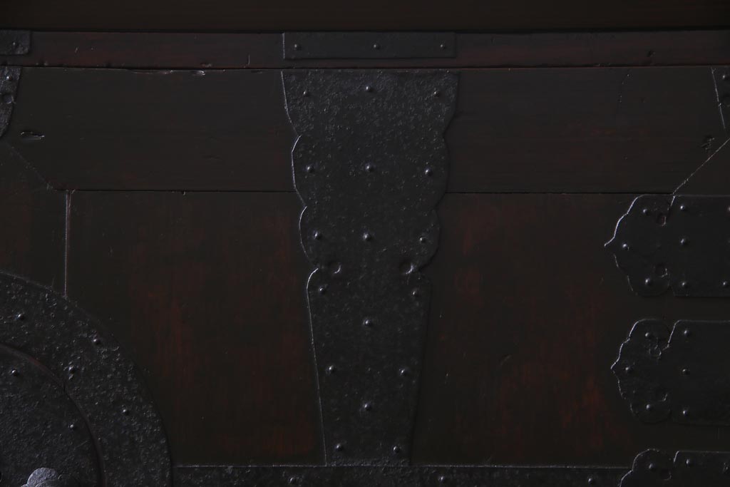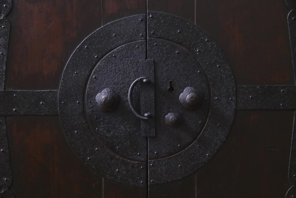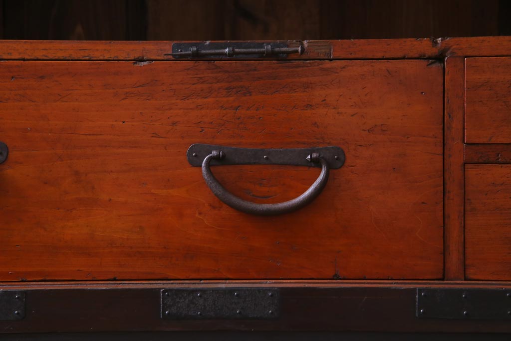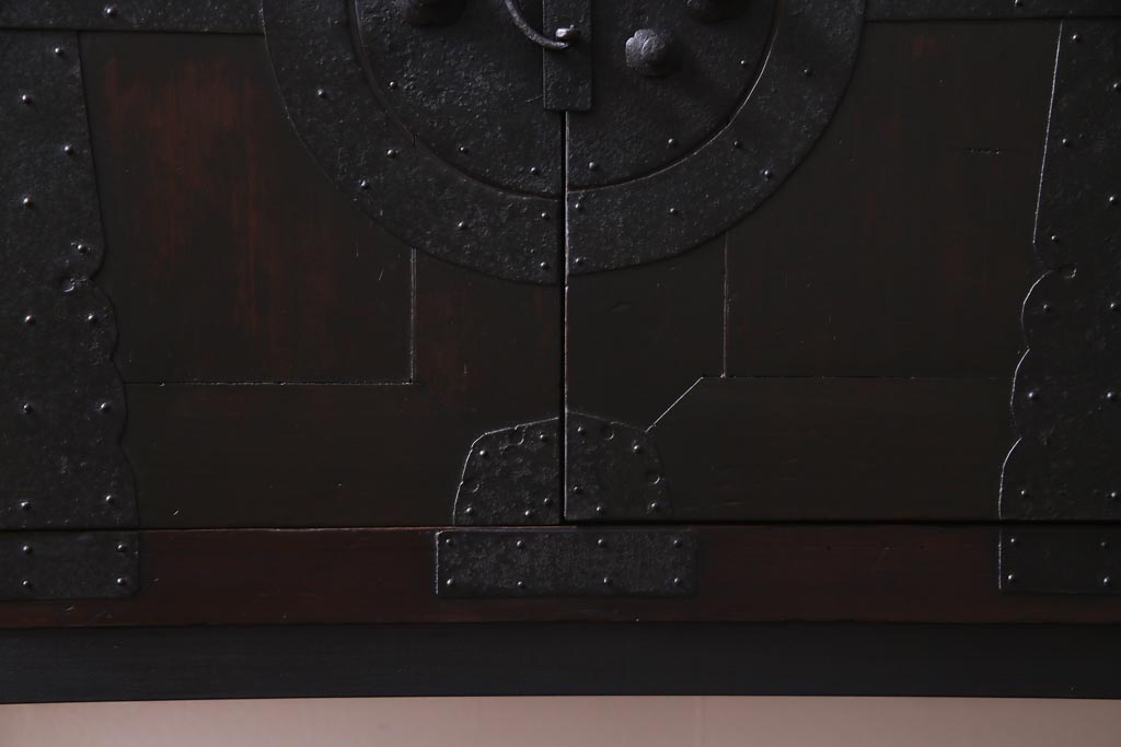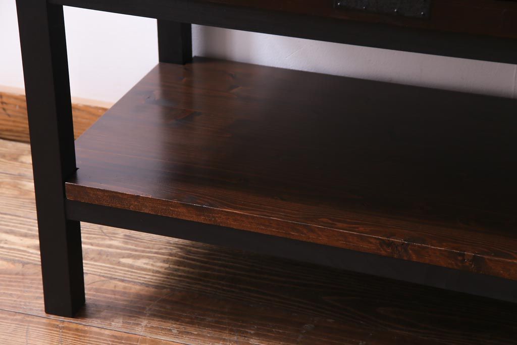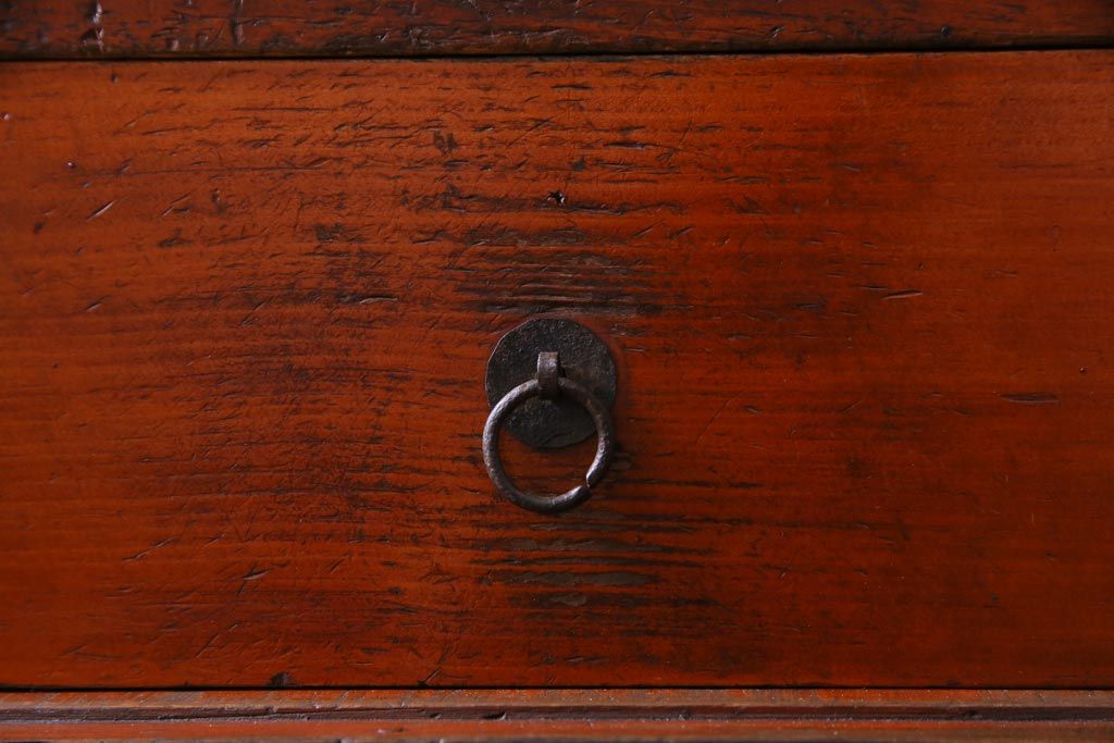 和製アンティーク リメイク家具 杉材 観音開き 隠し付き 渋さ漂う十字金具がカッコイイ箪笥サイドボード(収納棚、戸棚)