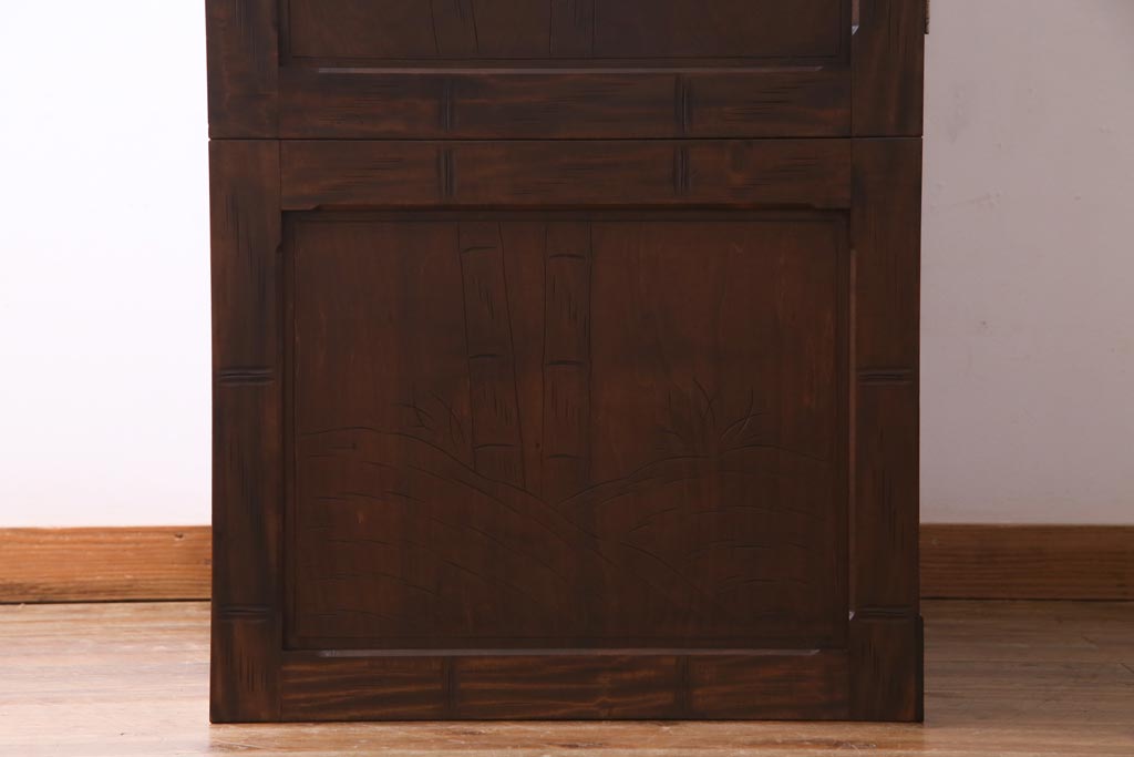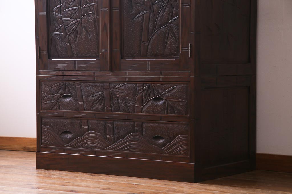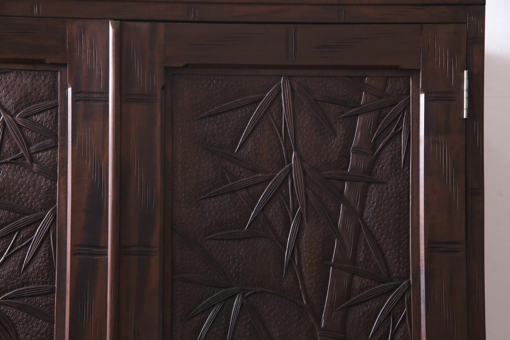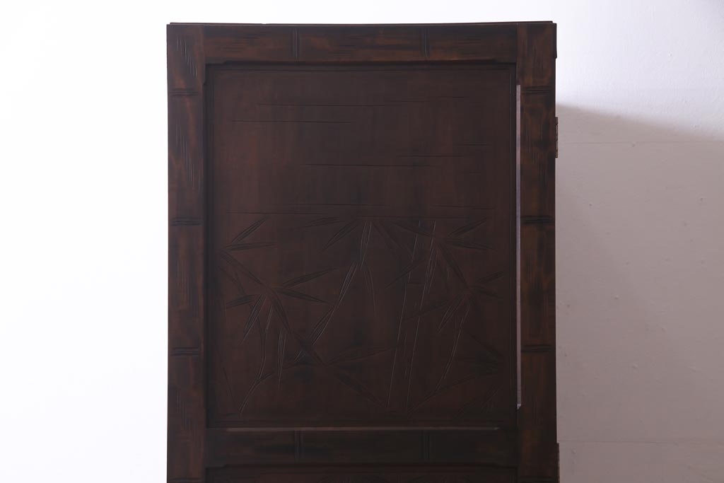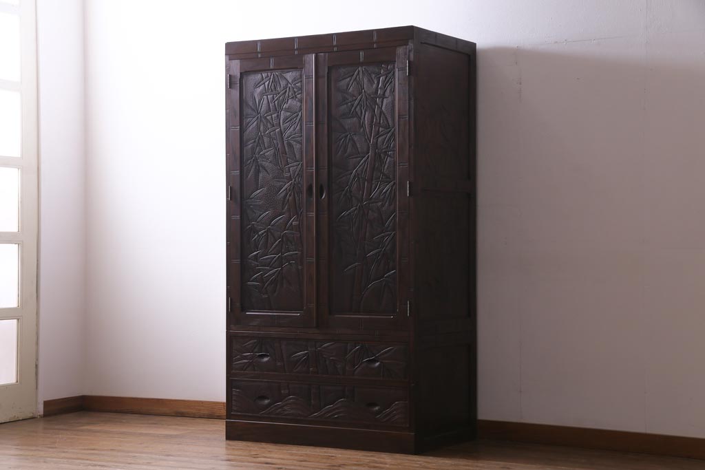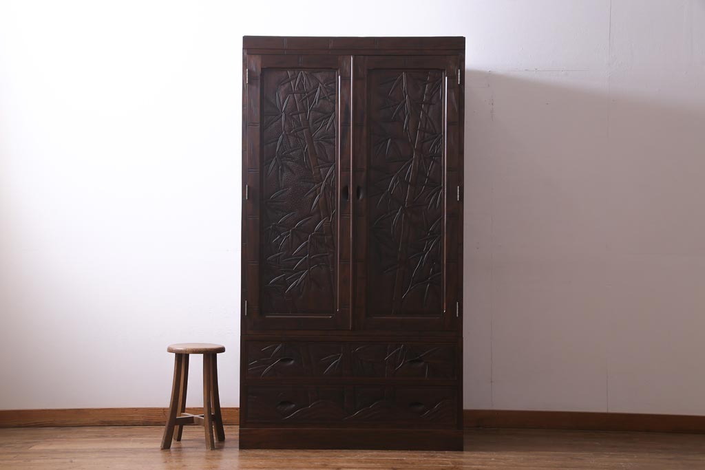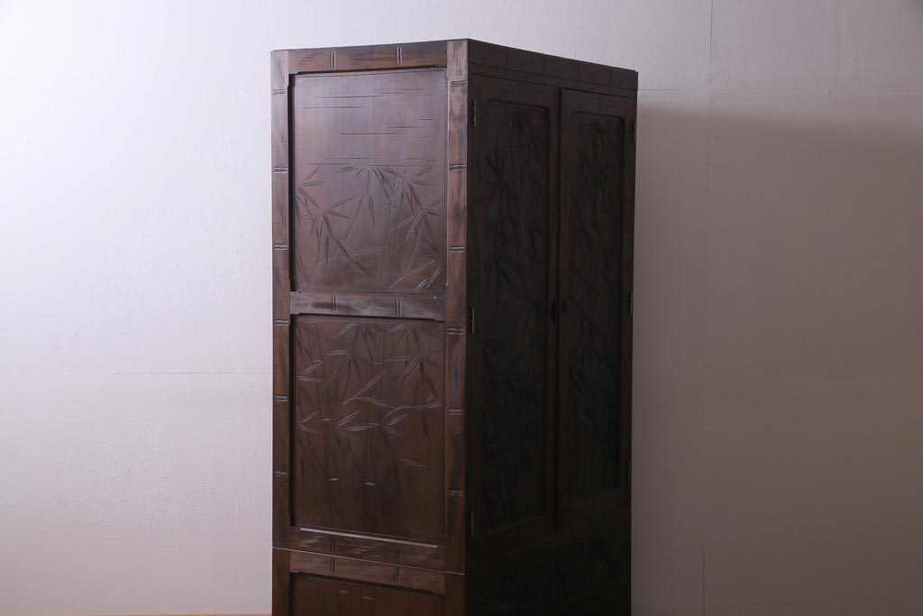中古 伝統工芸 軽井沢彫り 竹モチーフの意匠が魅力的なワードローブ(洋服タンス、チェスト)
