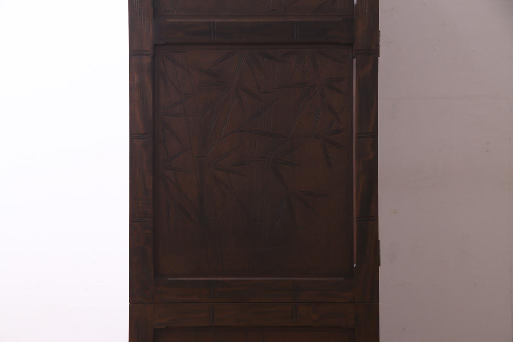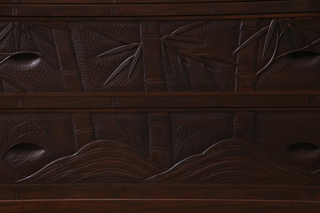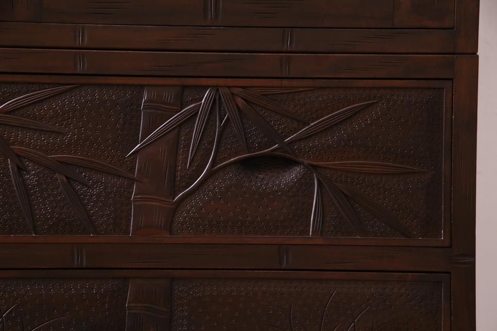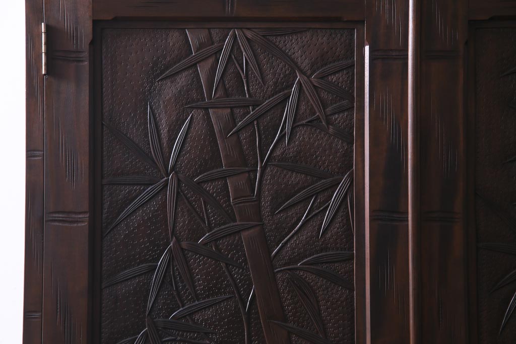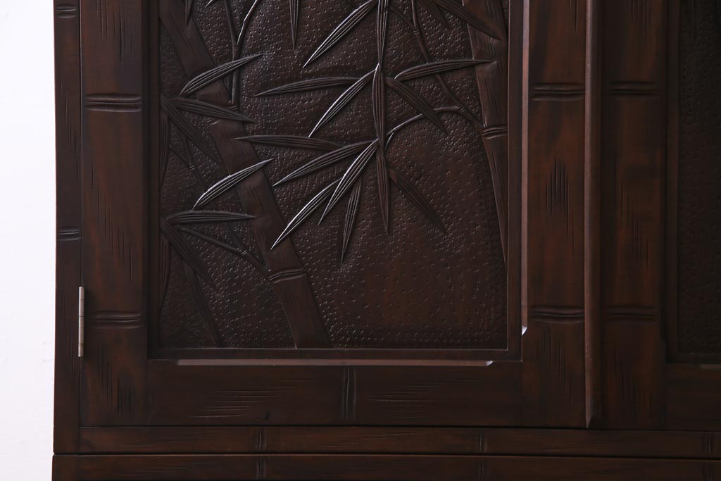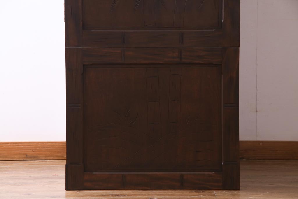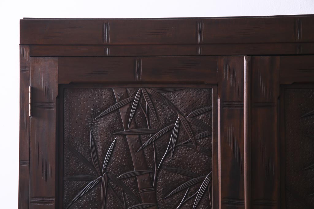 中古 伝統工芸 軽井沢彫り 竹モチーフの意匠が魅力的なワードローブ(洋服タンス、チェスト)