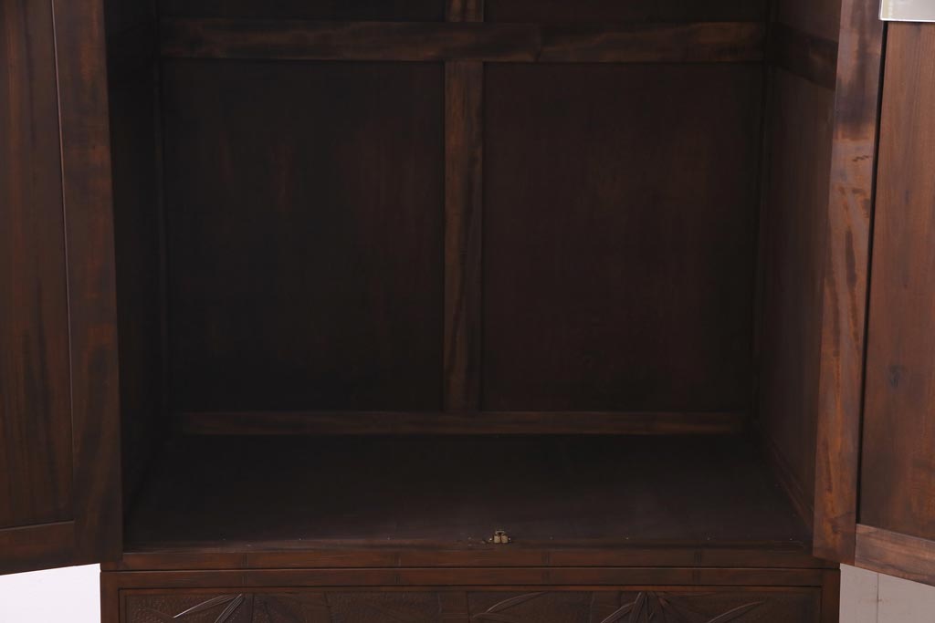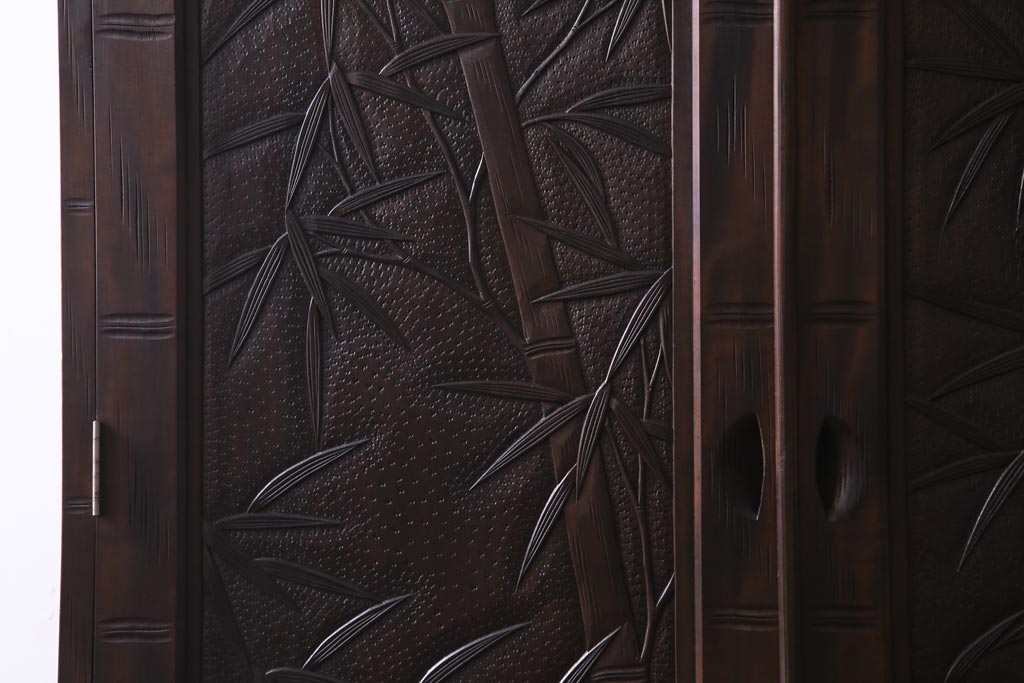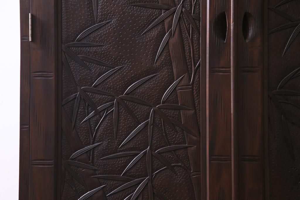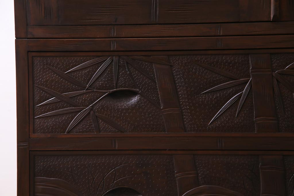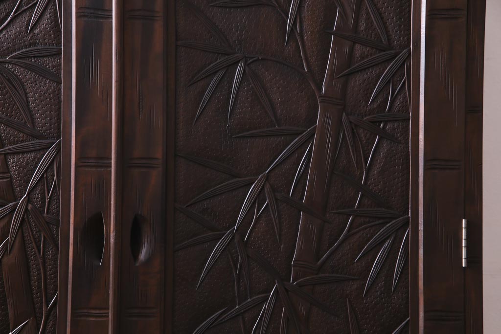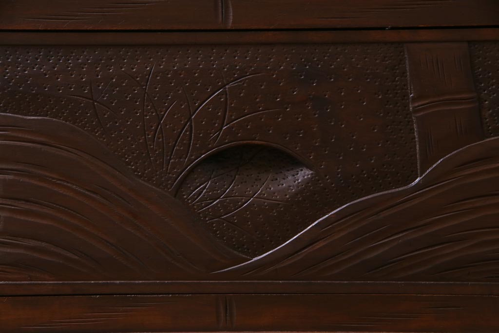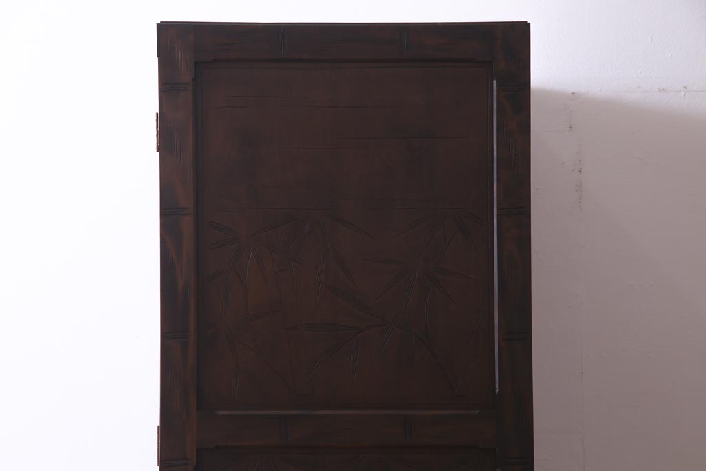 中古 伝統工芸 軽井沢彫り 竹モチーフの意匠が魅力的なワードローブ(洋服タンス、チェスト)