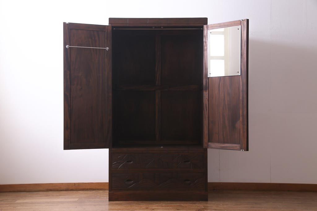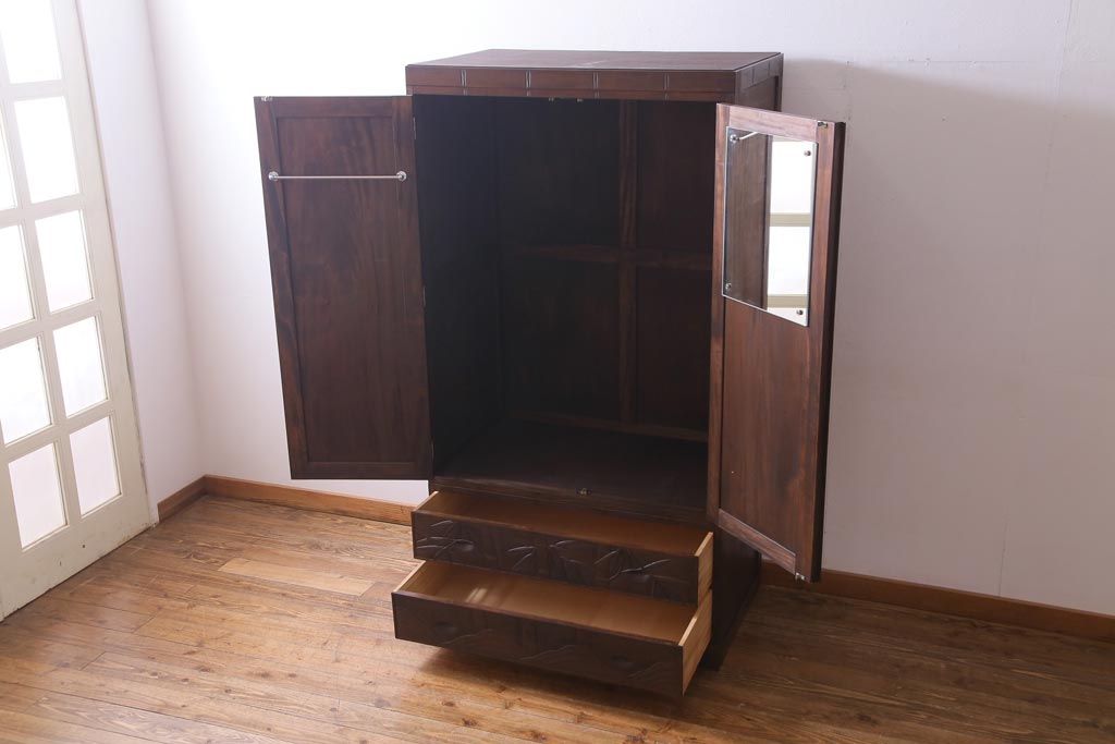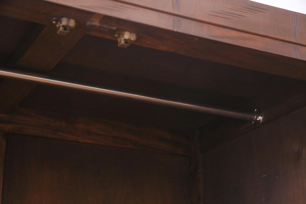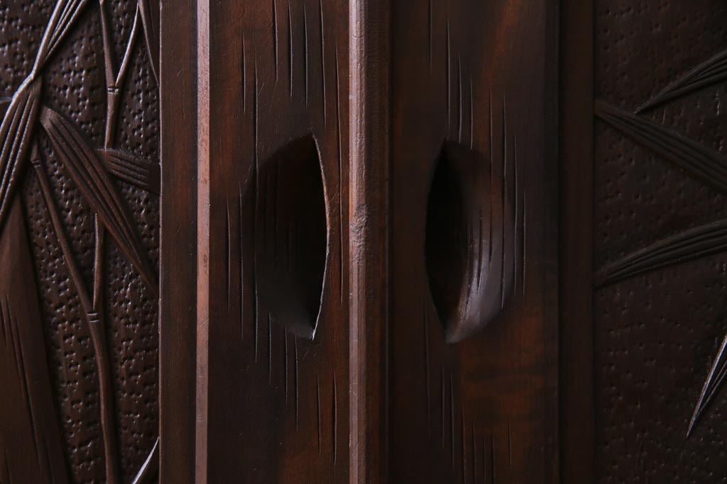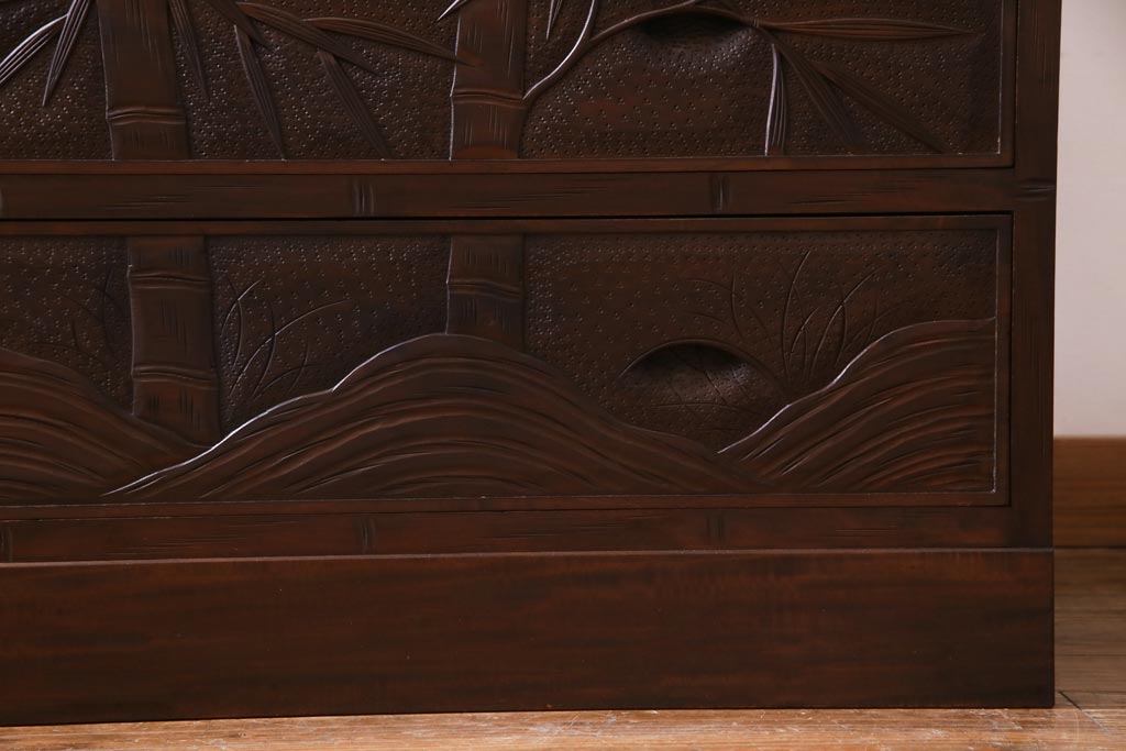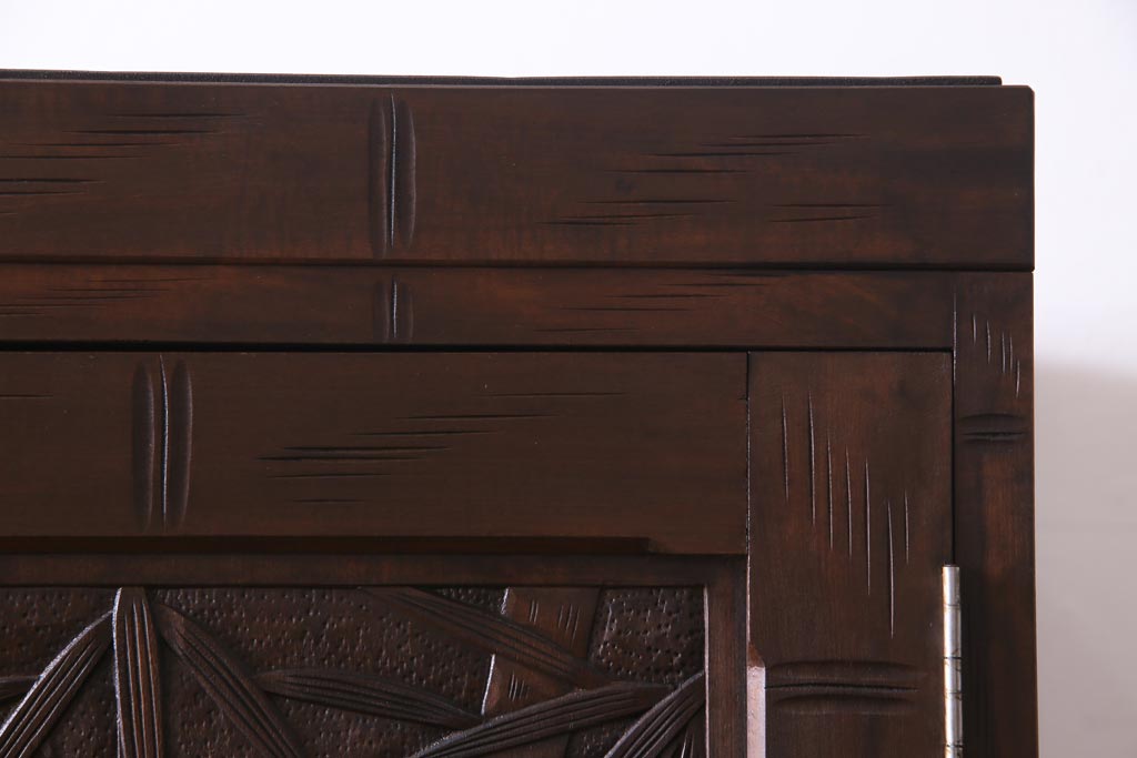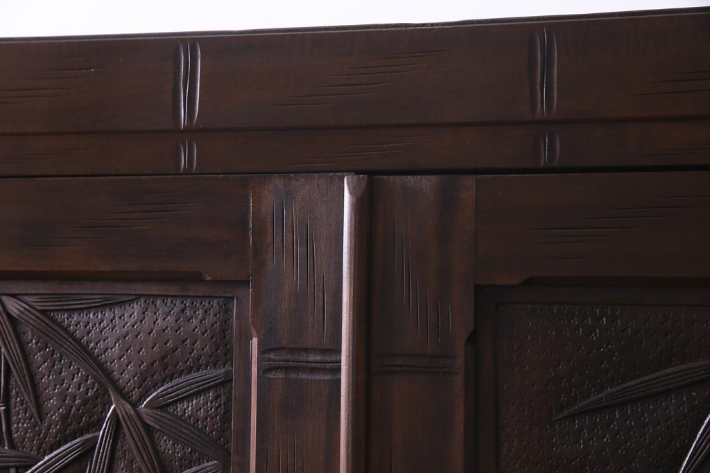 中古 伝統工芸 軽井沢彫り 竹モチーフの意匠が魅力的なワードローブ(洋服タンス、チェスト)