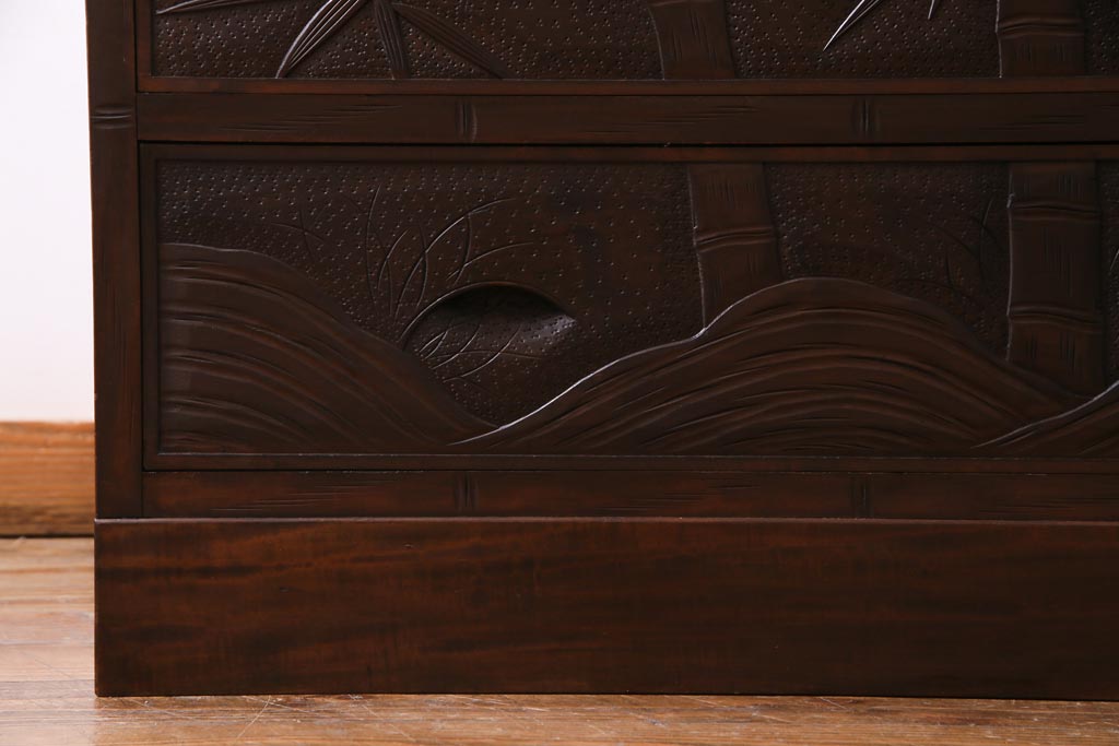 中古 伝統工芸 軽井沢彫り 竹モチーフの意匠が魅力的なワードローブ(洋服タンス、チェスト)です。