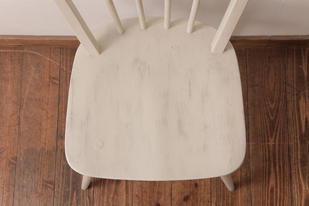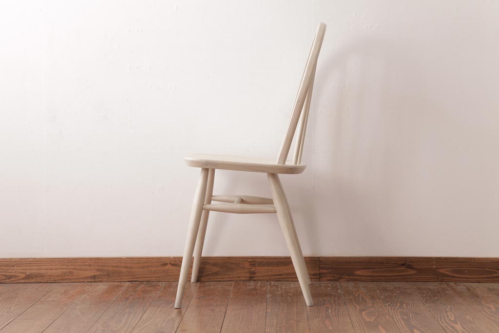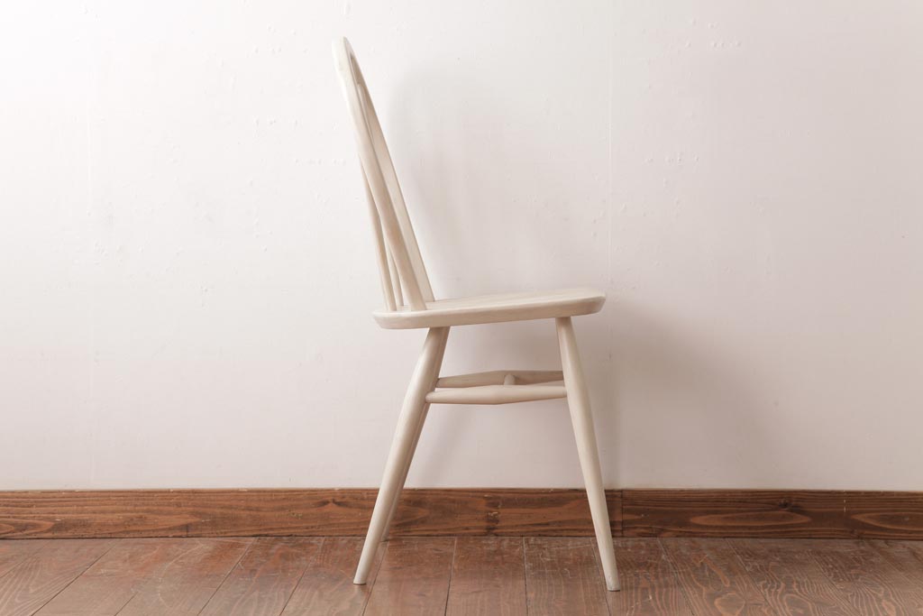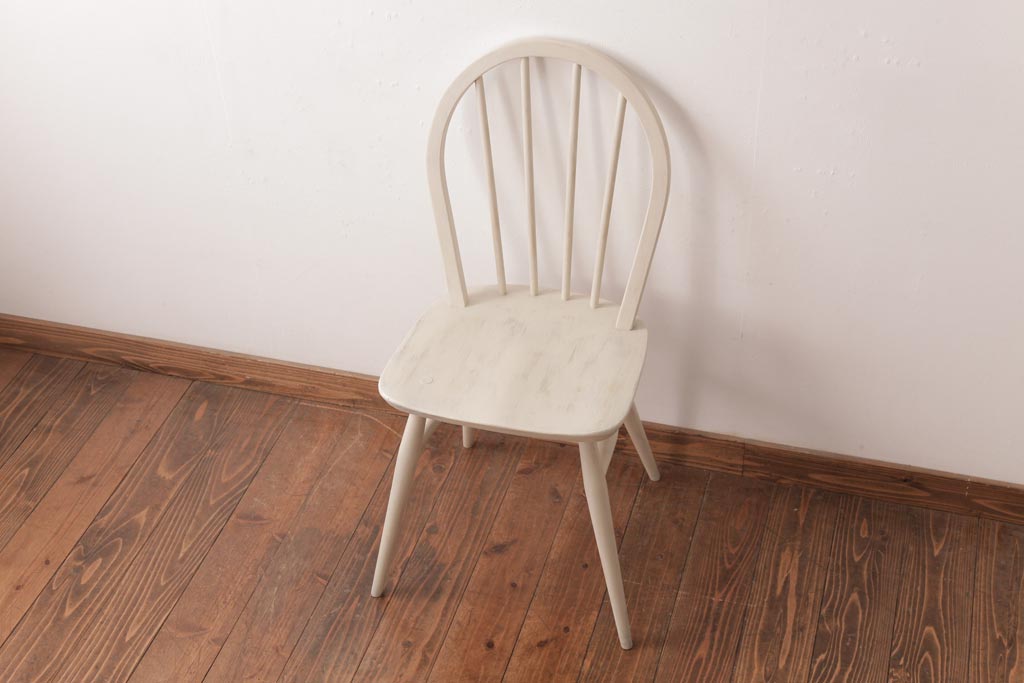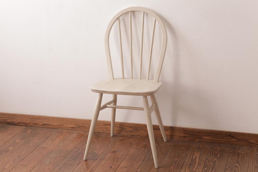 イギリスビンテージ ペイント家具 ERCOL(アーコール) 優しげなアイボリーカラーが魅力のフープバックチェア(椅子、ダイニングチェア)