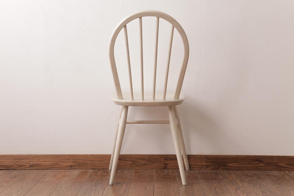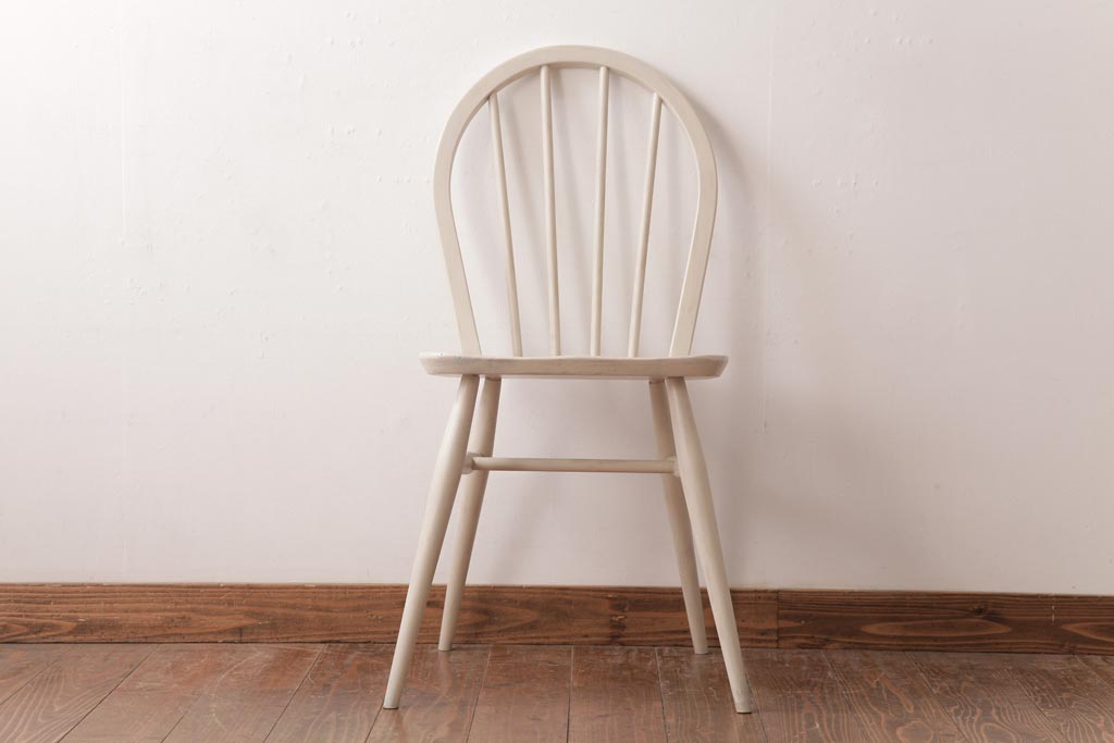 イギリスビンテージ ペイント家具 ERCOL(アーコール) 優しげなアイボリーカラーが魅力のフープバックチェア(椅子、ダイニングチェア)です。