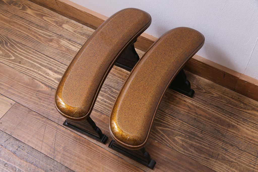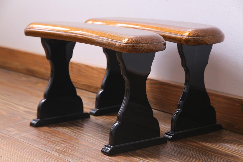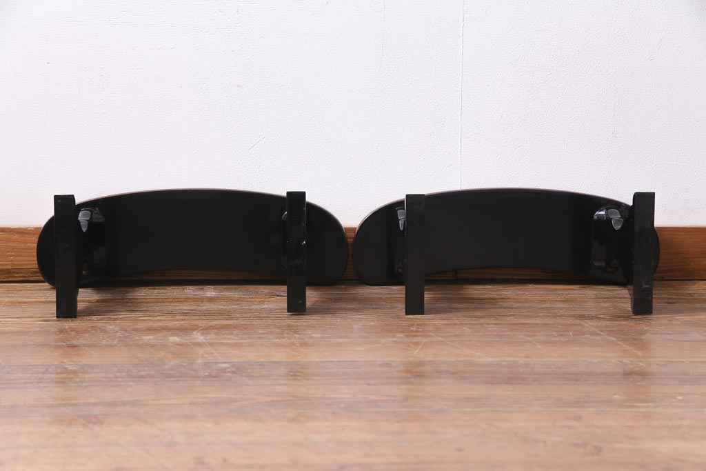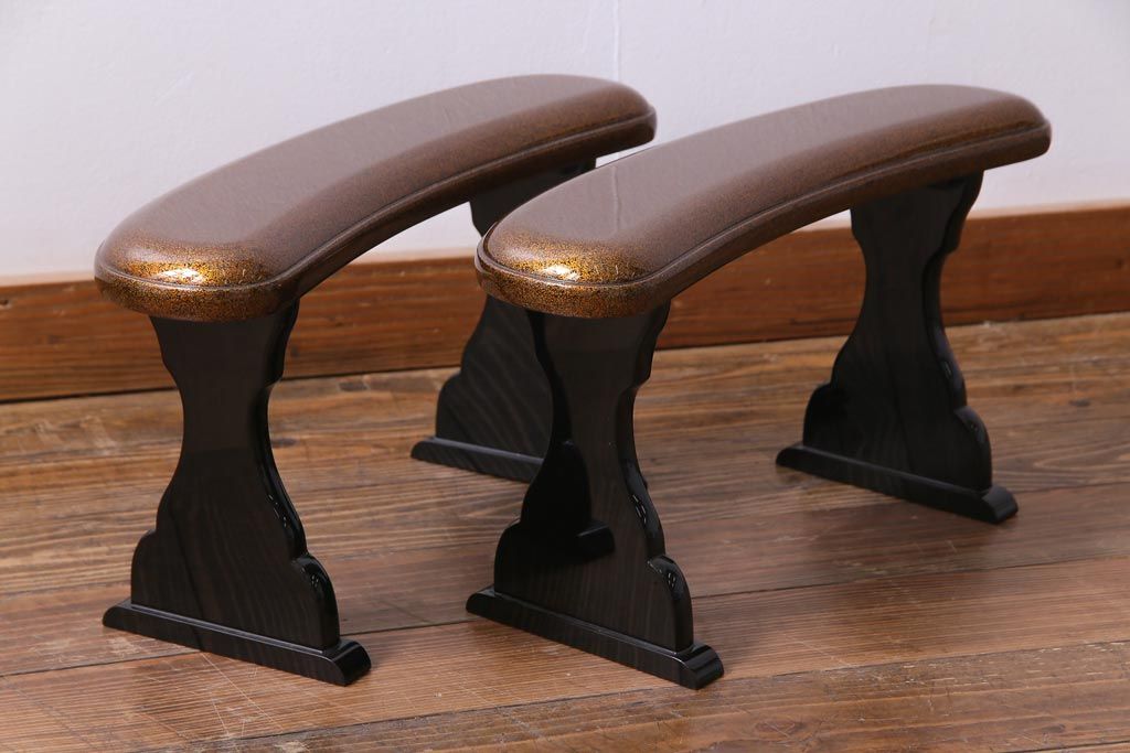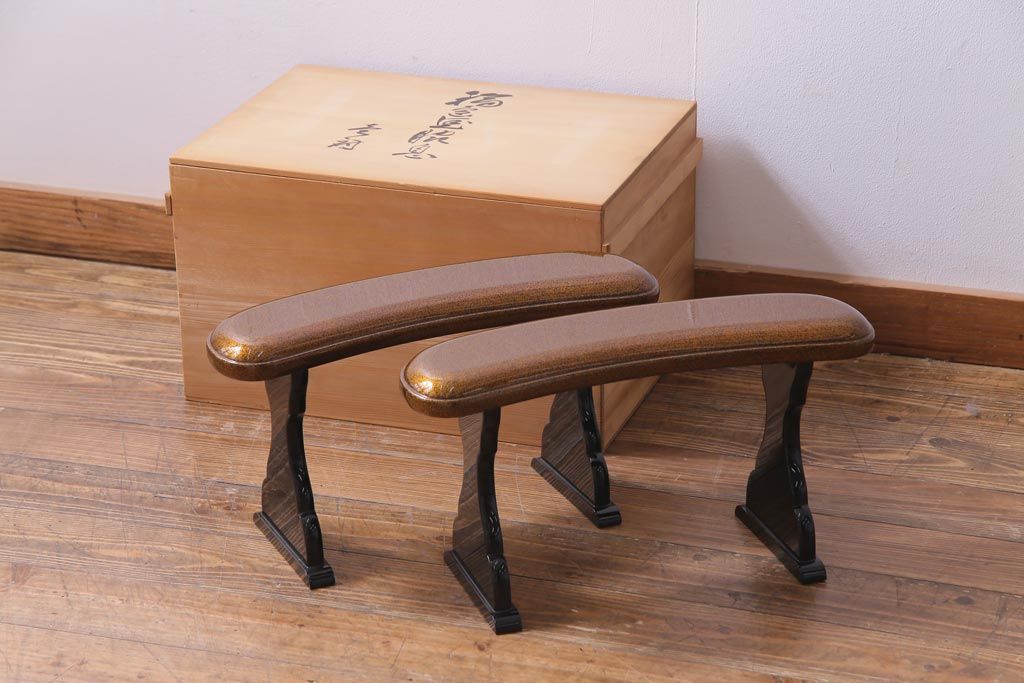 アンティーク雑貨 伝統工芸 輪島塗 輪光堂 共箱付き 黒漆 梨地 高級感を漂わせる脇息一対(肘置き、肘掛け)