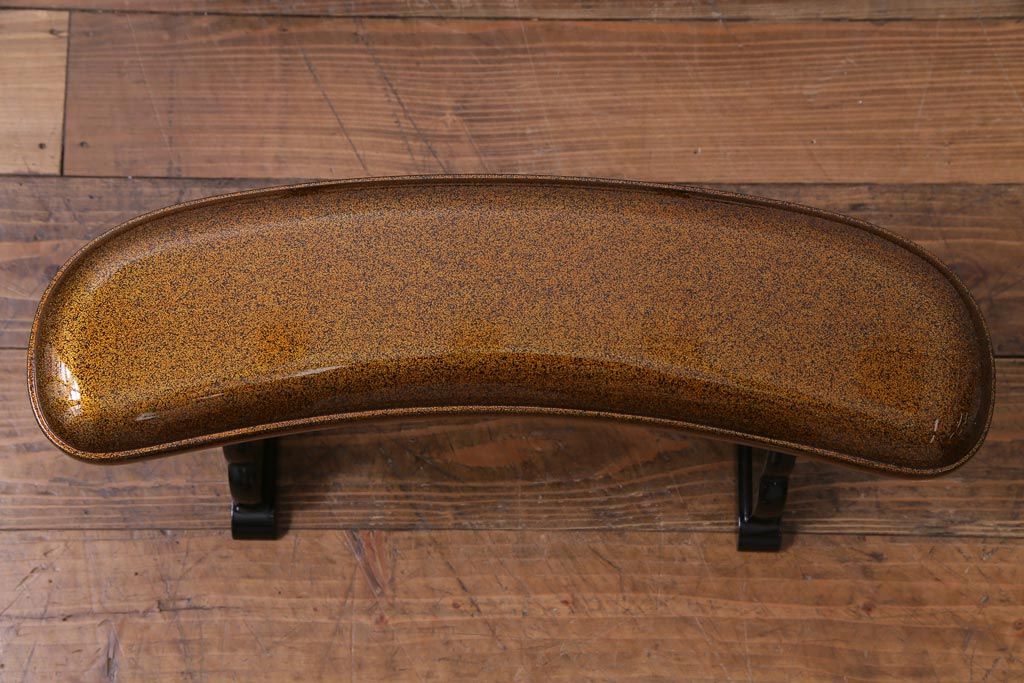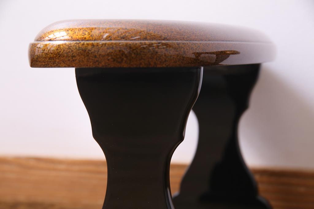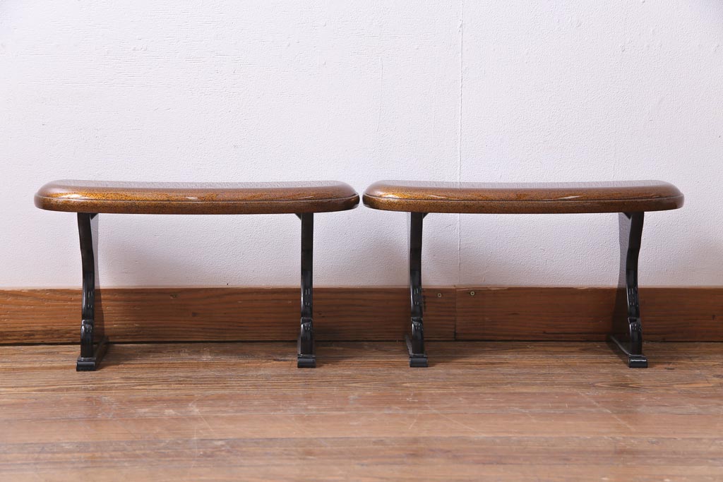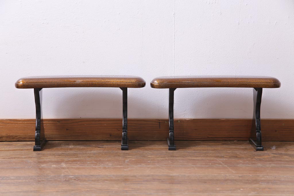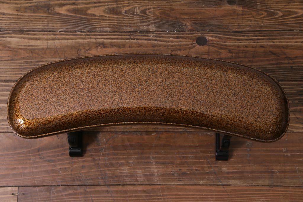 アンティーク雑貨 伝統工芸 輪島塗 輪光堂 共箱付き 黒漆 梨地 高級感を漂わせる脇息一対(肘置き、肘掛け)