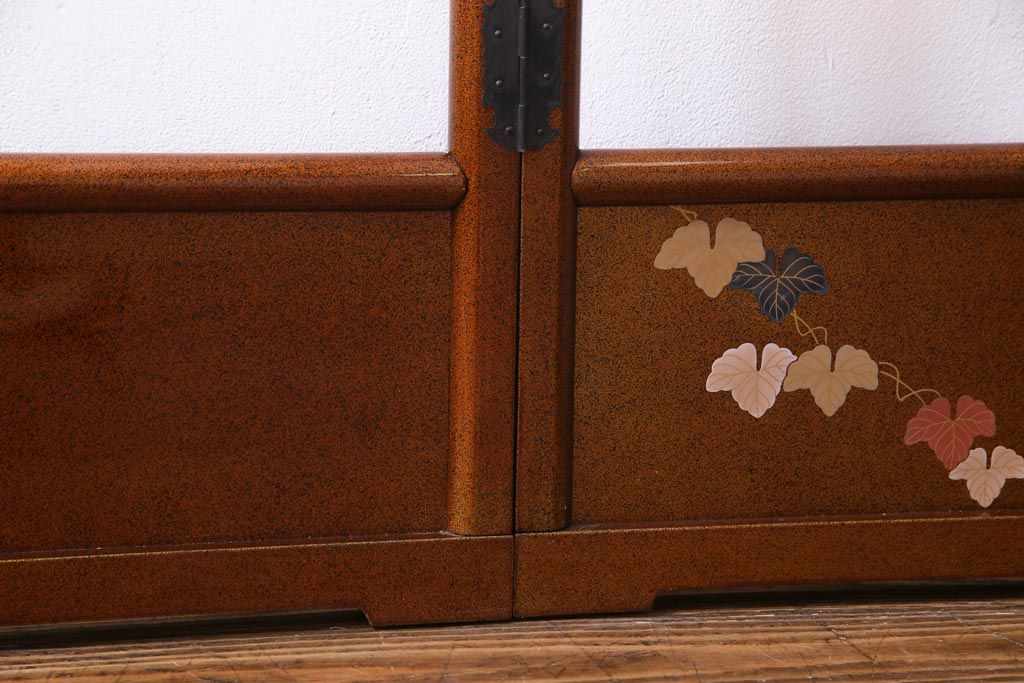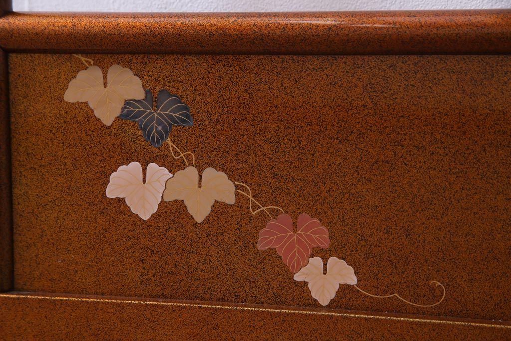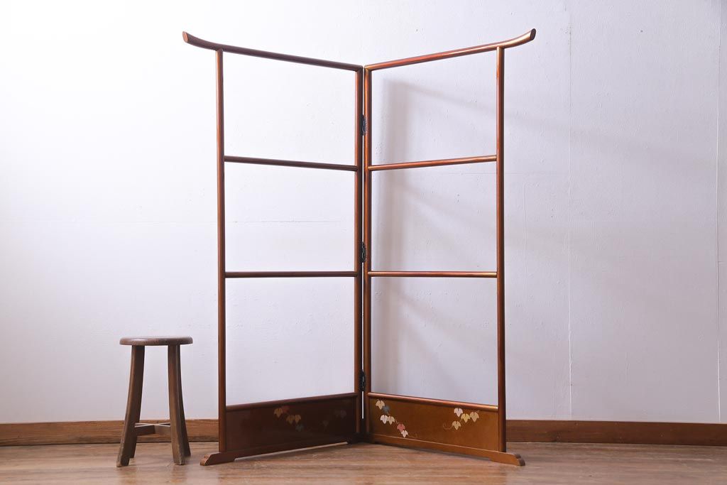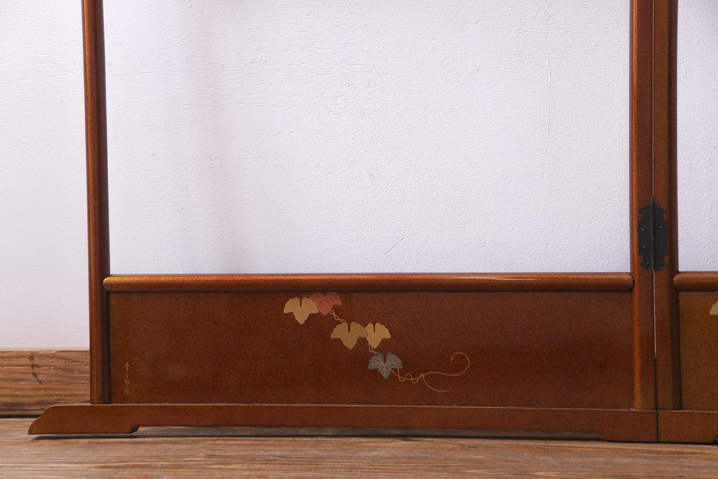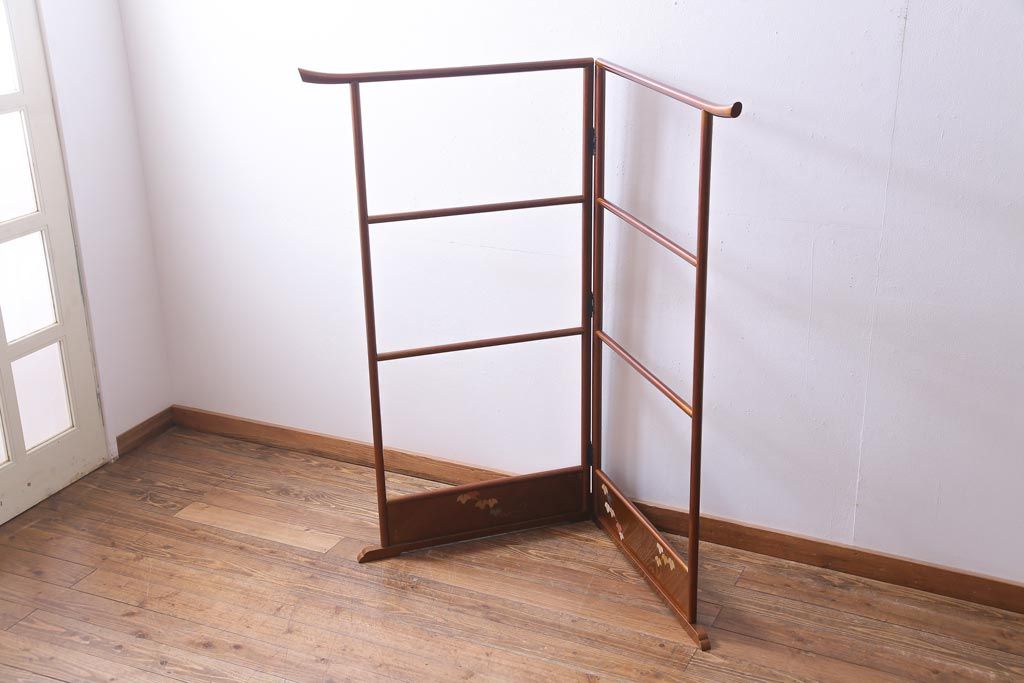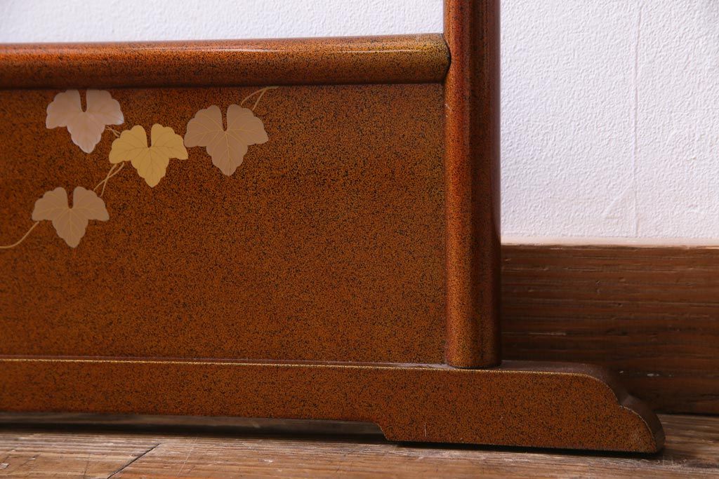 アンティーク雑貨 古民具 輪島塗 山本幸三郎作 梨地 蔦の葉モチーフが描かれた衣桁(ハンガーラック、着物掛け)