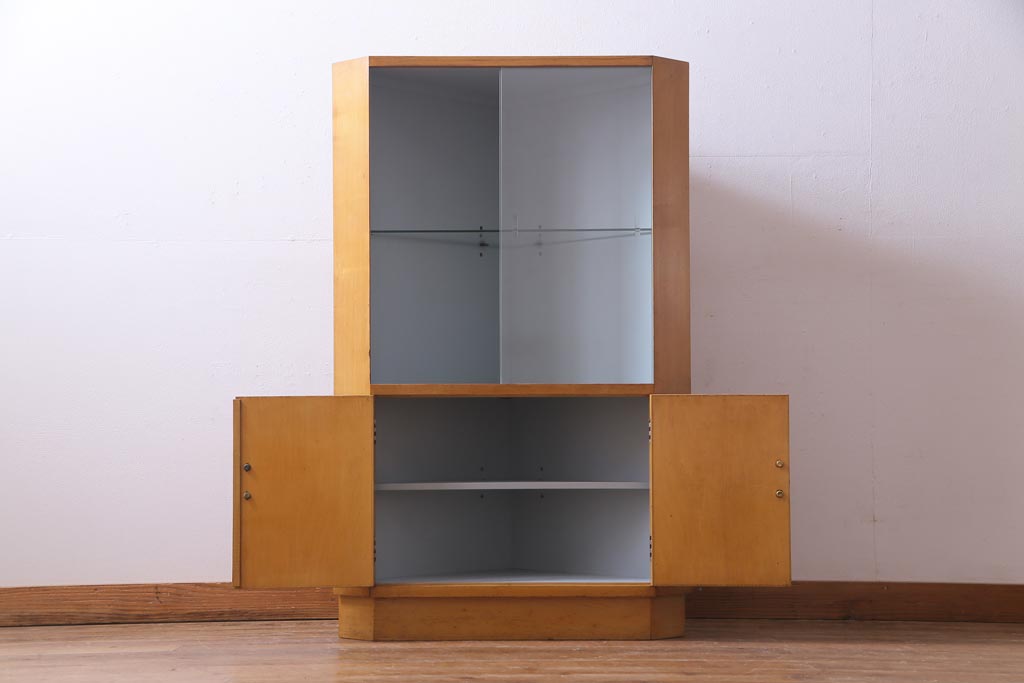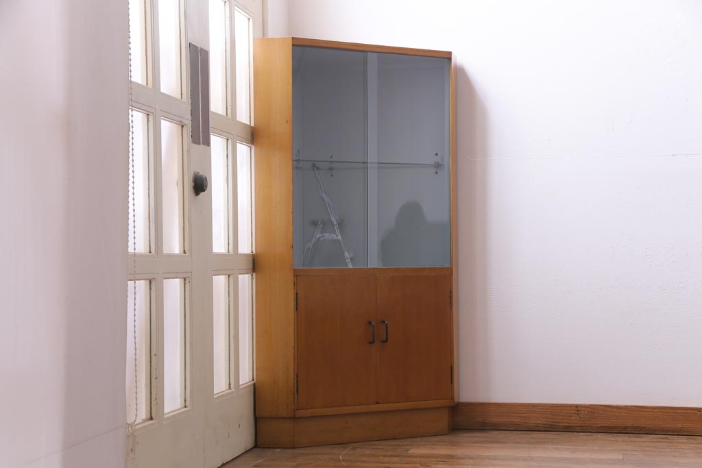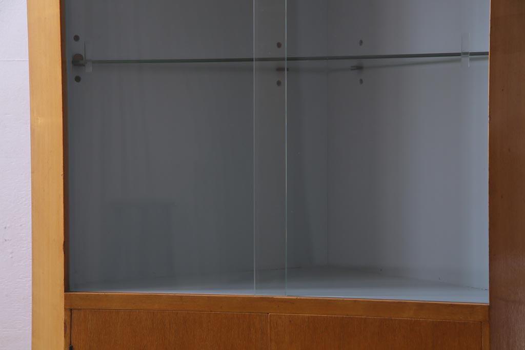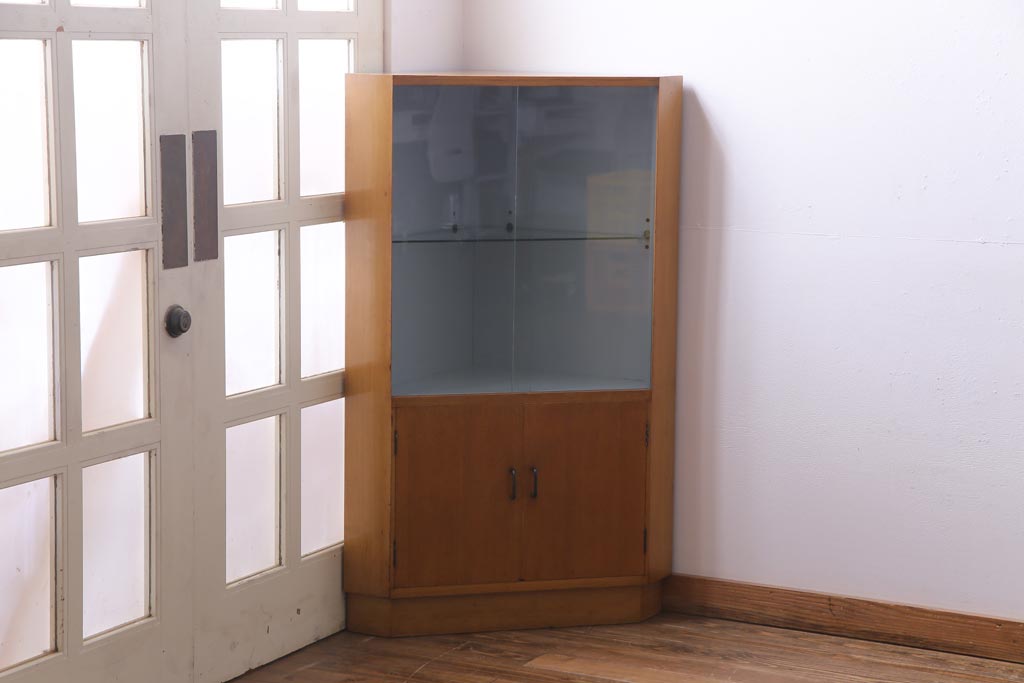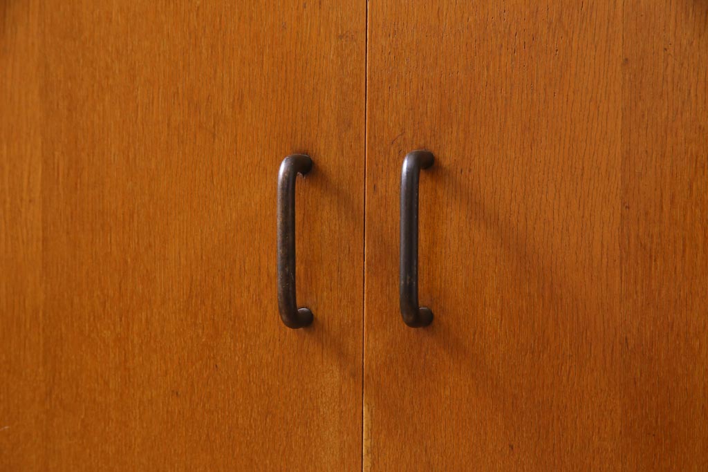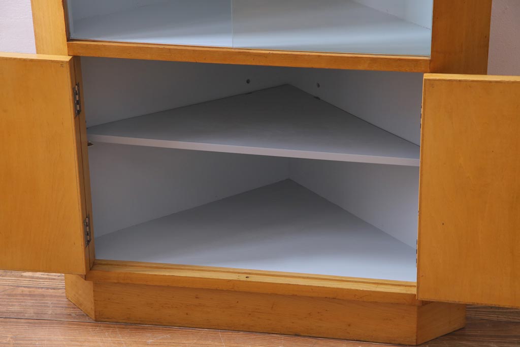 レトロ家具 昭和中期 ナラ材突板 素朴な温かみ漂うレトロなコーナーキャビネット(サイドキャビネット、収納棚、戸棚)(R-035682)