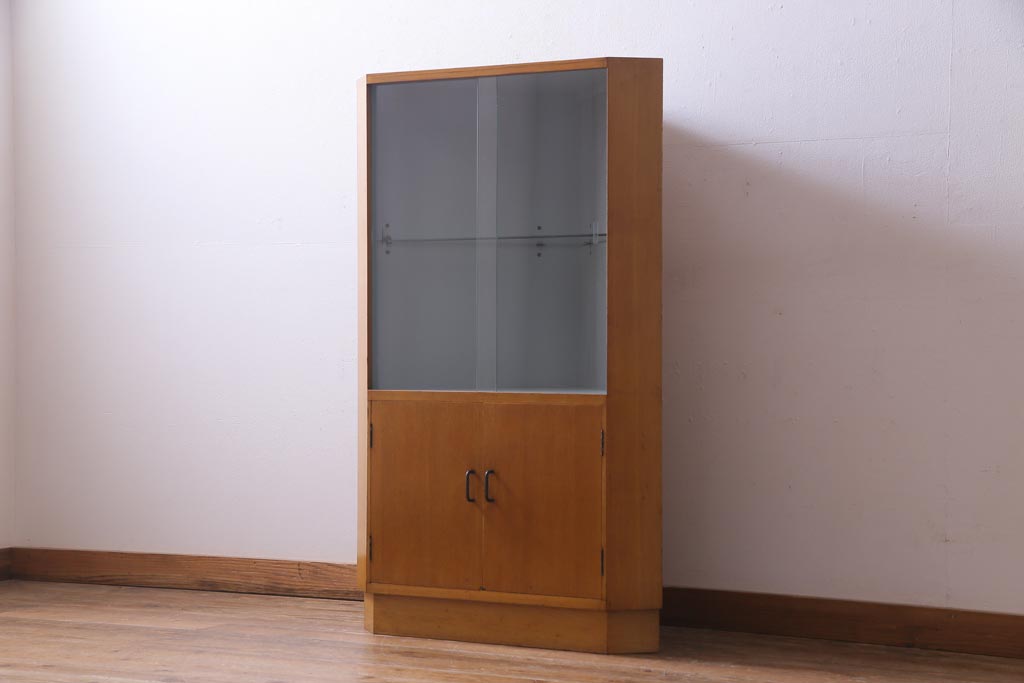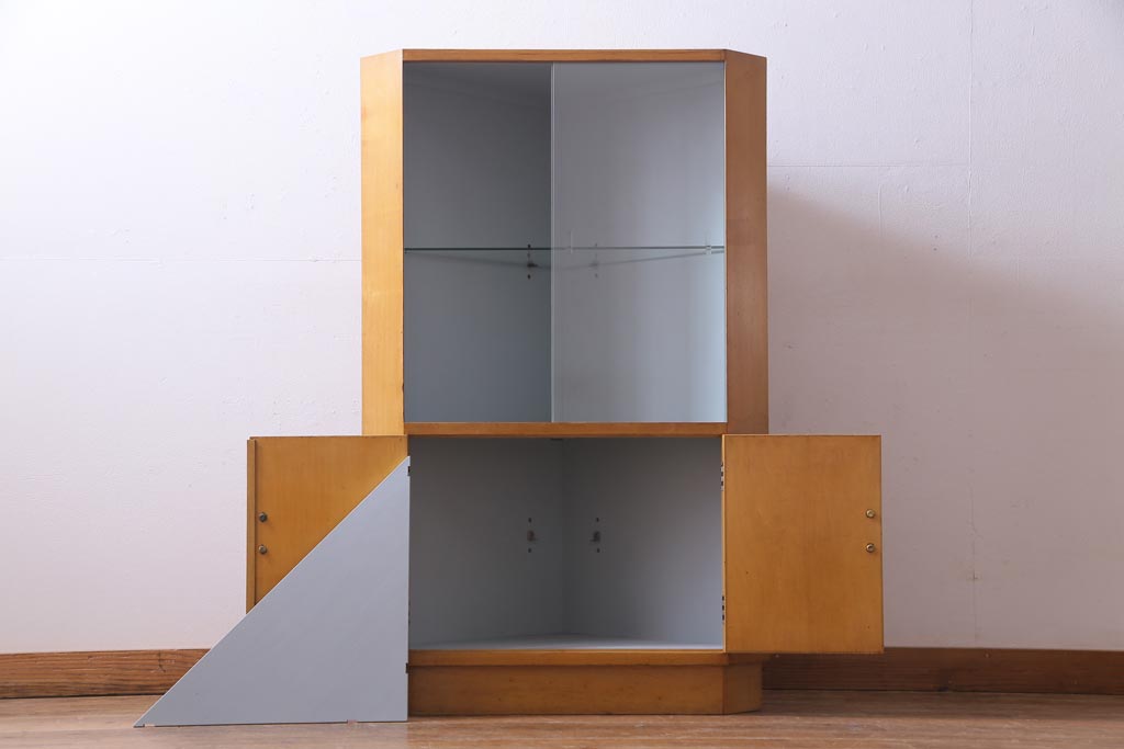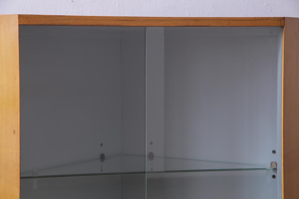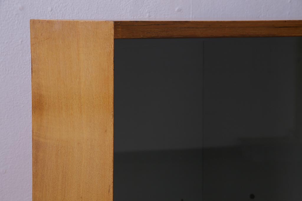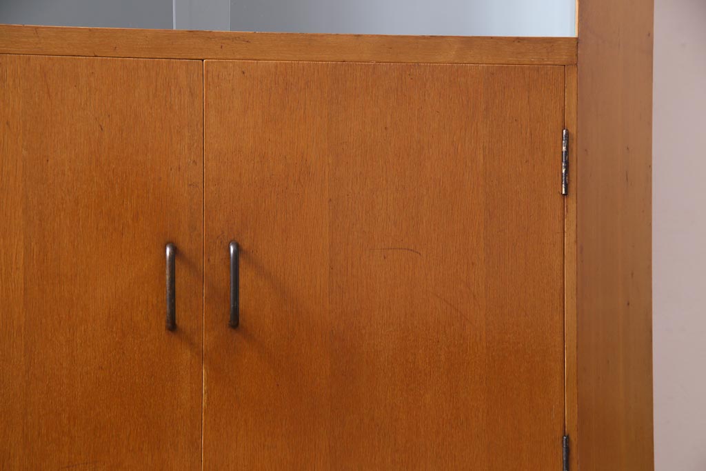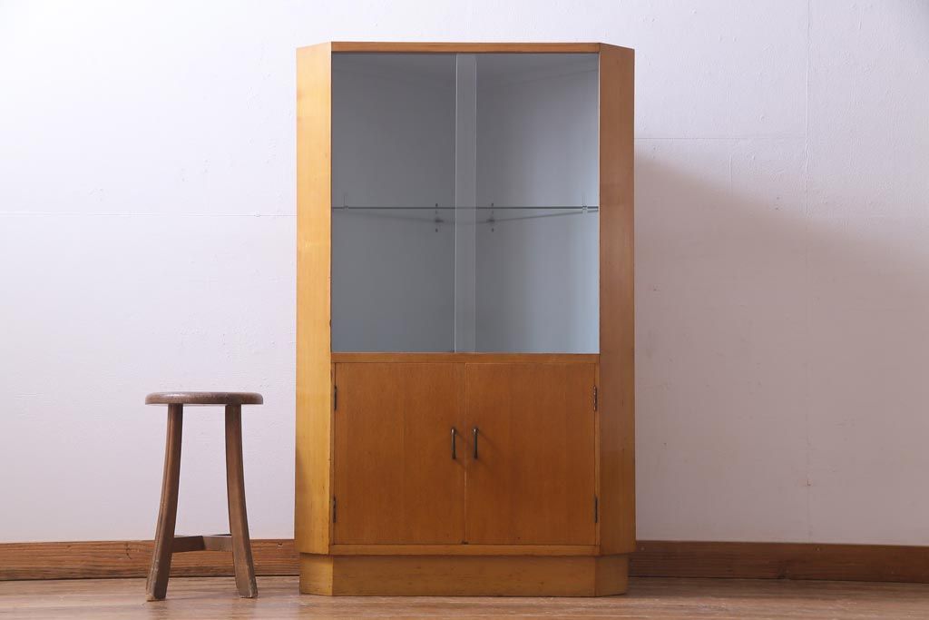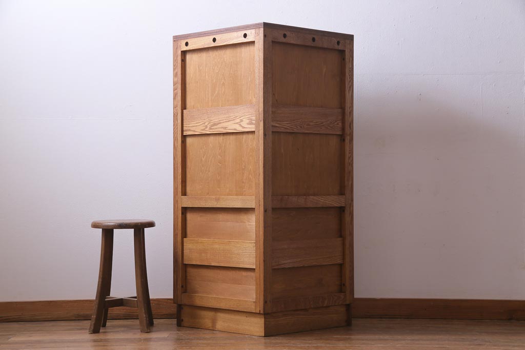 レトロ家具 昭和中期 ナラ材突板 素朴な温かみ漂うレトロなコーナーキャビネット(サイドキャビネット、収納棚、戸棚)(R-035682)