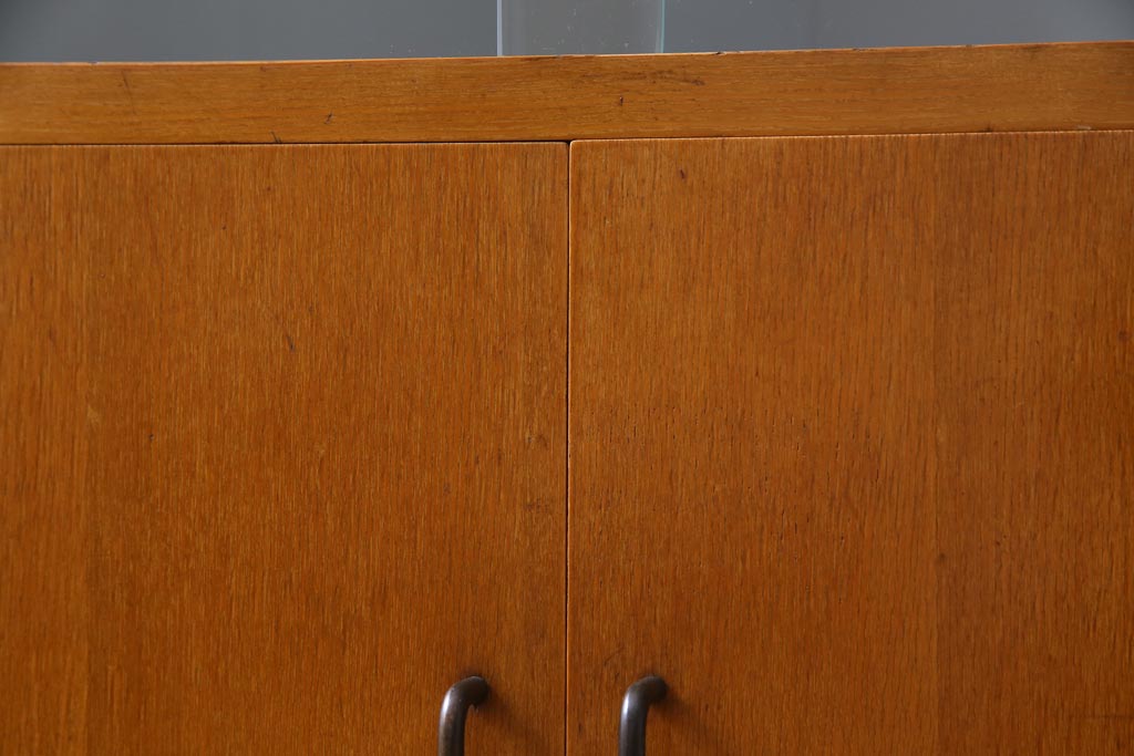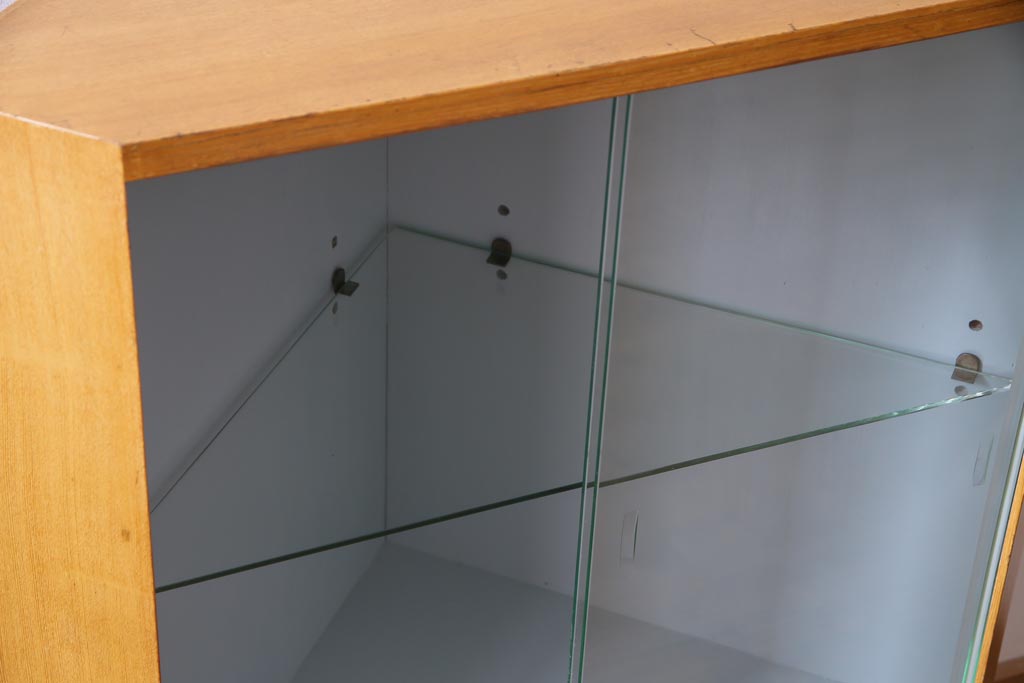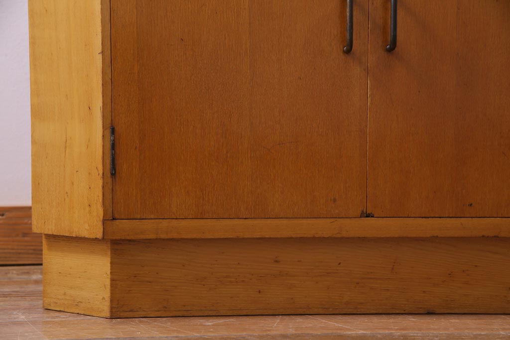 ラフジュ工房> キャビネット・戸棚> サイドキャビネット > レトロ家具 昭和中期 ナラ材突板 素朴な温かみ漂うレトロなコーナーキャビネット(サイドキャビネット、収納棚、戸棚)(R-035682)
