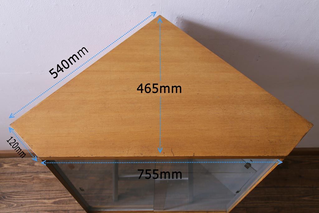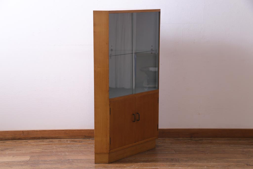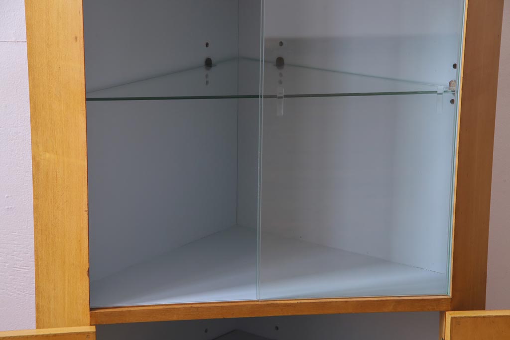 ラフジュ工房> キャビネット・戸棚> コーナーキャビネット > レトロ家具 昭和中期 ナラ材突板 素朴な温かみ漂うレトロなコーナーキャビネット(サイドキャビネット、収納棚、戸棚)(R-035682)