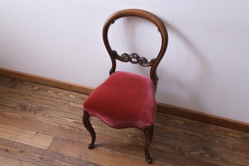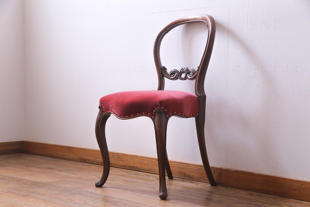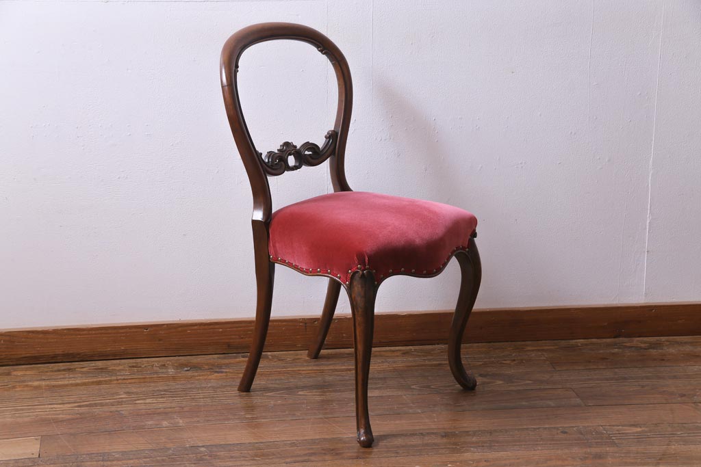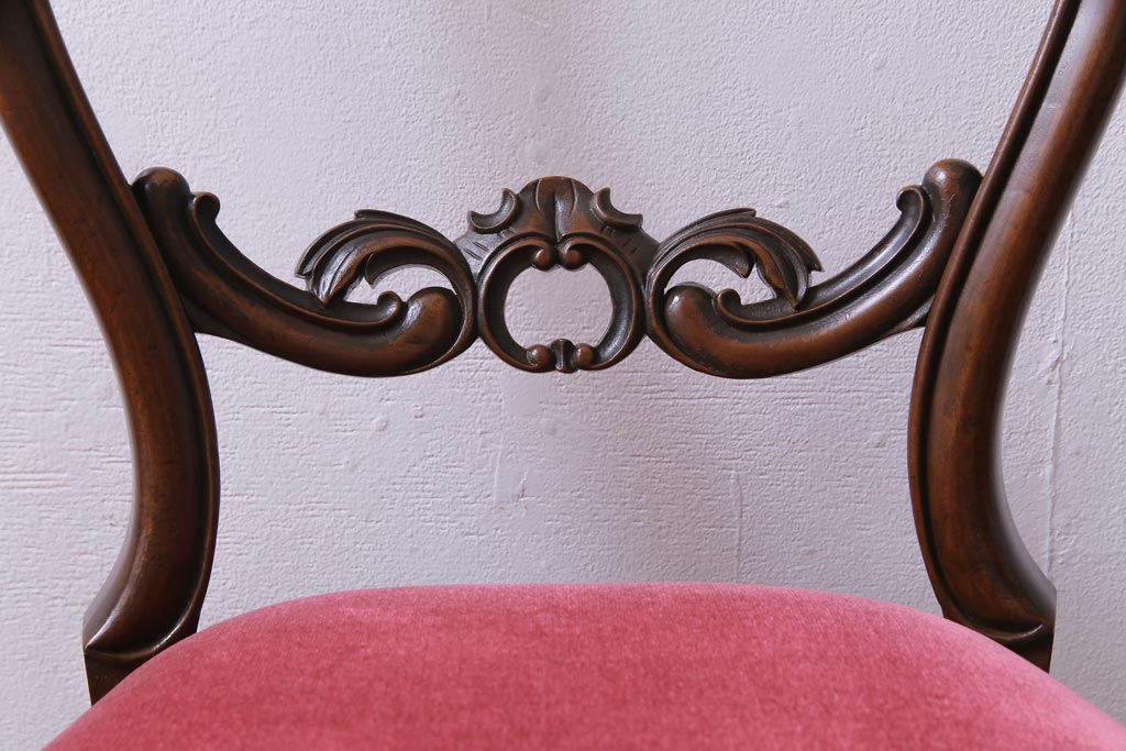 アンティーク家具 フランスアンティーク ウォールナット 大人の雰囲気漂うシックなバルーンバックチェア(ダイニングチェア、椅子)
