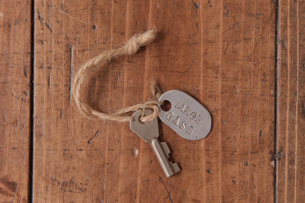 鍵は付属します。画像にありますように、袋に入れお付けします。スムーズに動くように調整していますが、あくまでも古いものや中古品ですので、長期の使用保証は出来かねます。ご購入後不具合が発生した場合は、当店でサポートさせていただきますので、お気軽にご相談くださいませ。