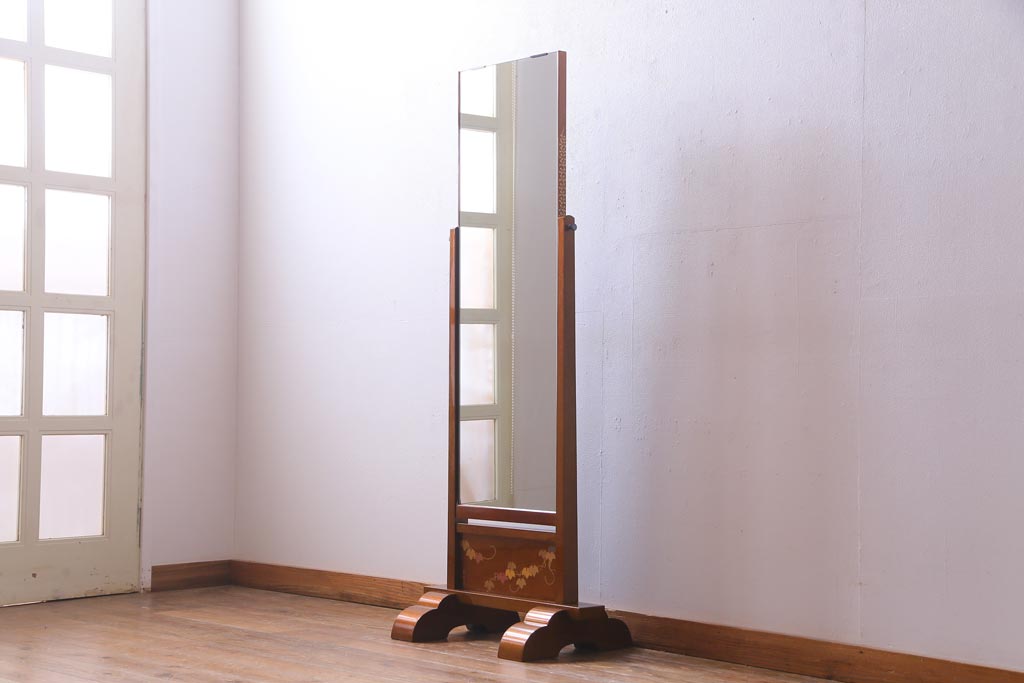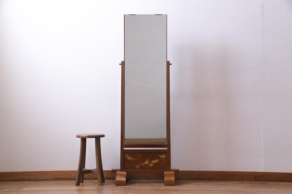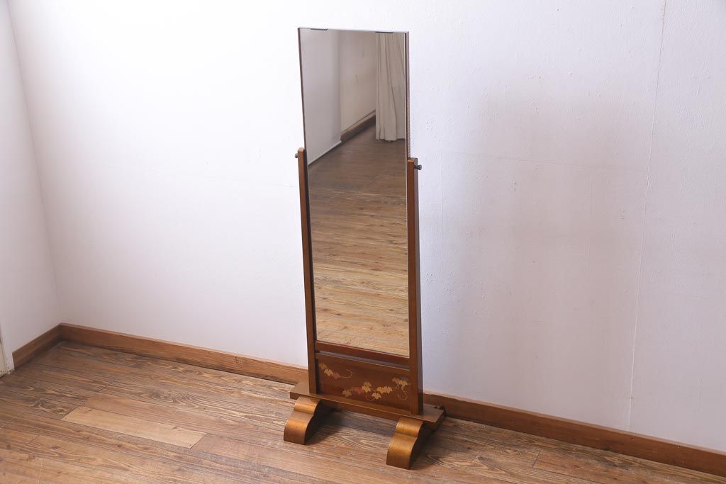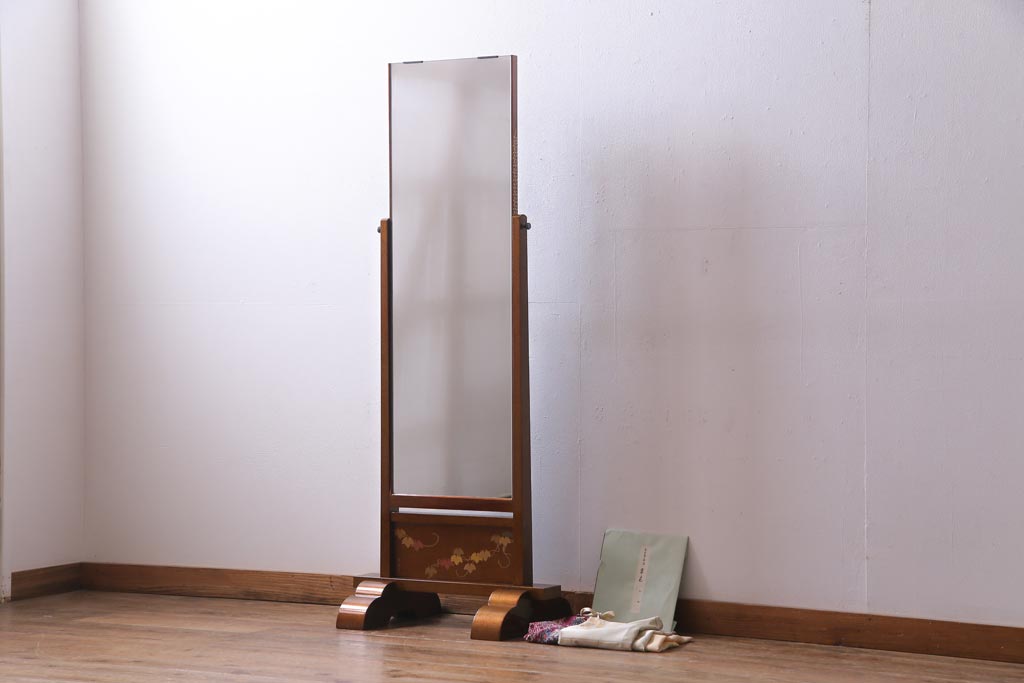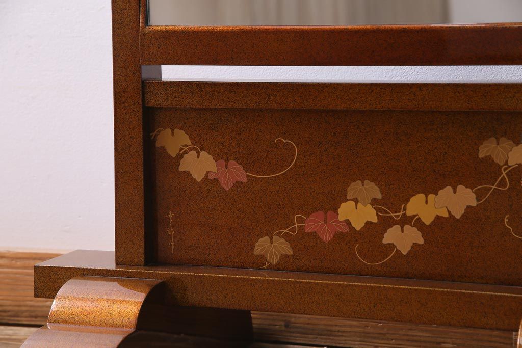 アンティーク雑貨 中古 山本幸三郎作 輪島塗 梨地蔦蒔絵 上品な高級感漂う姿見(鏡、ミラー)