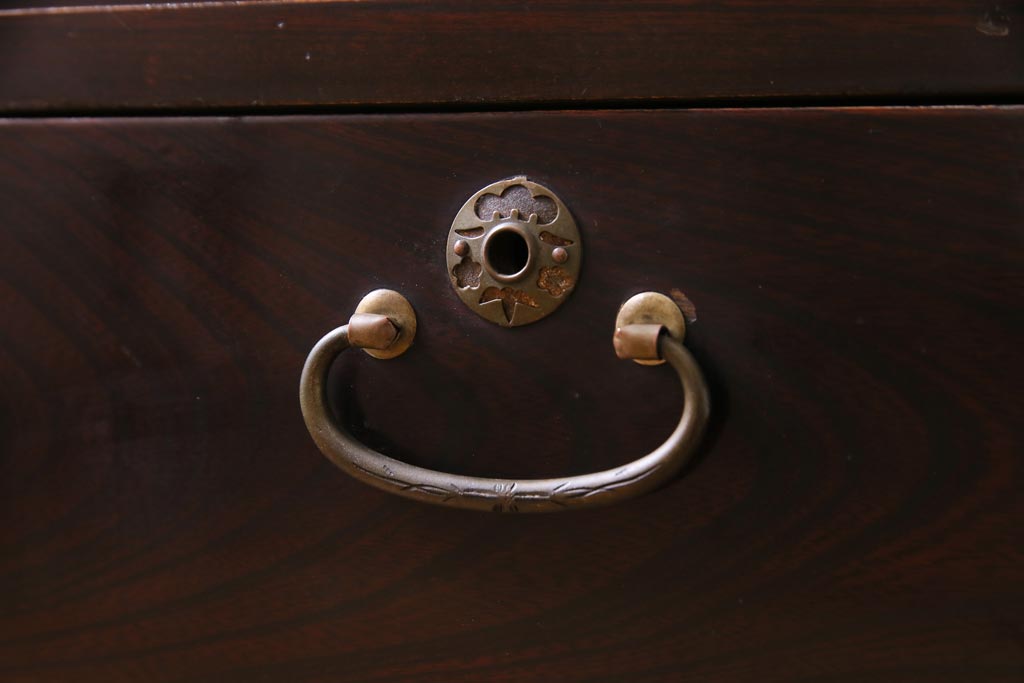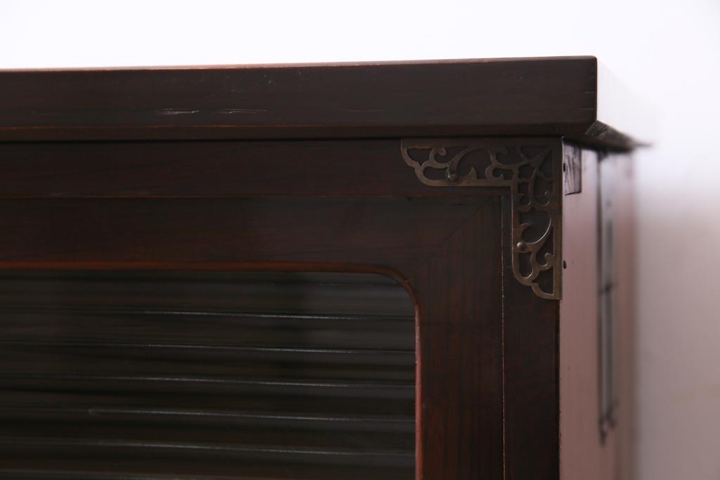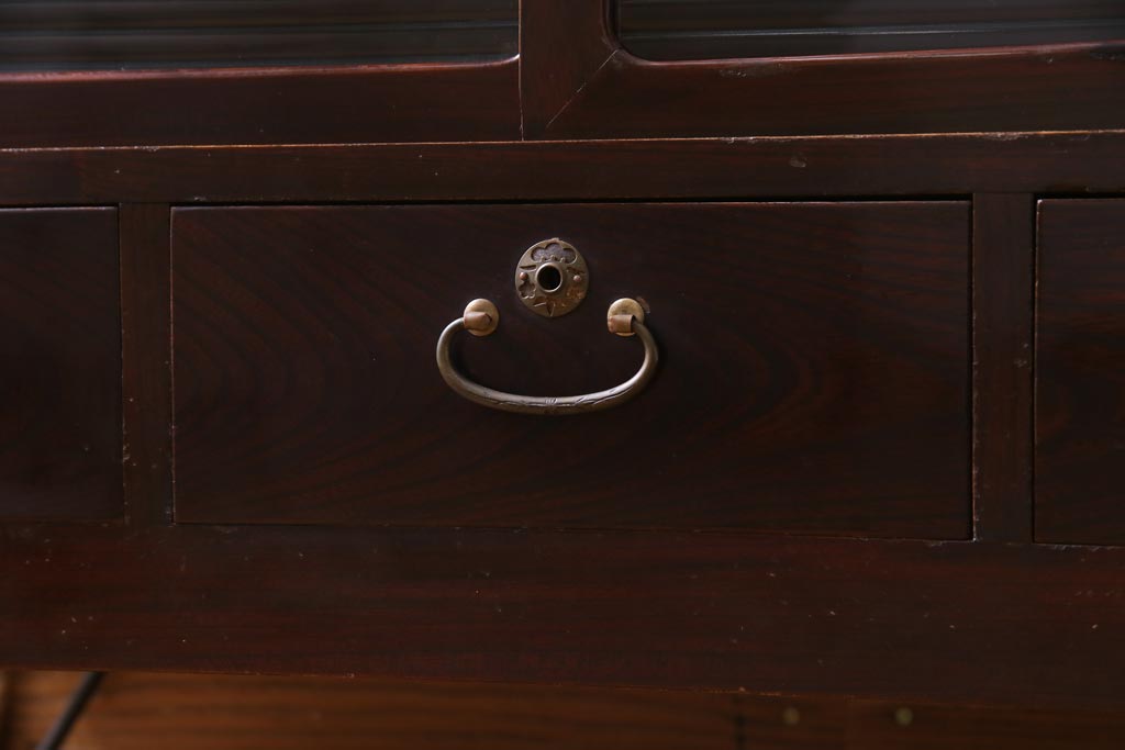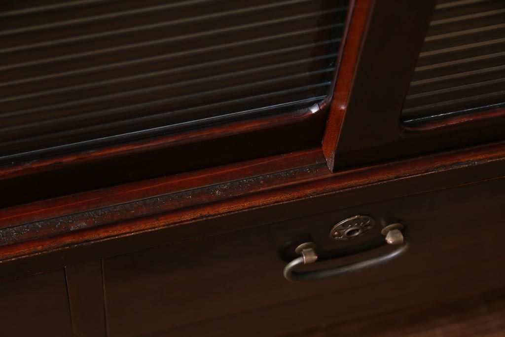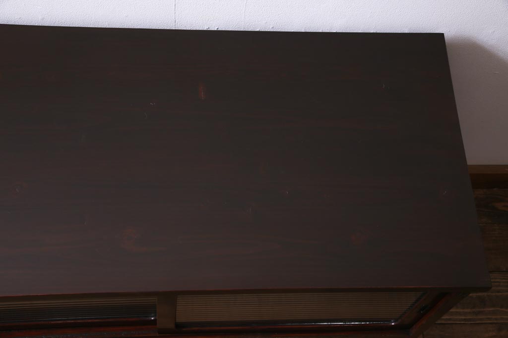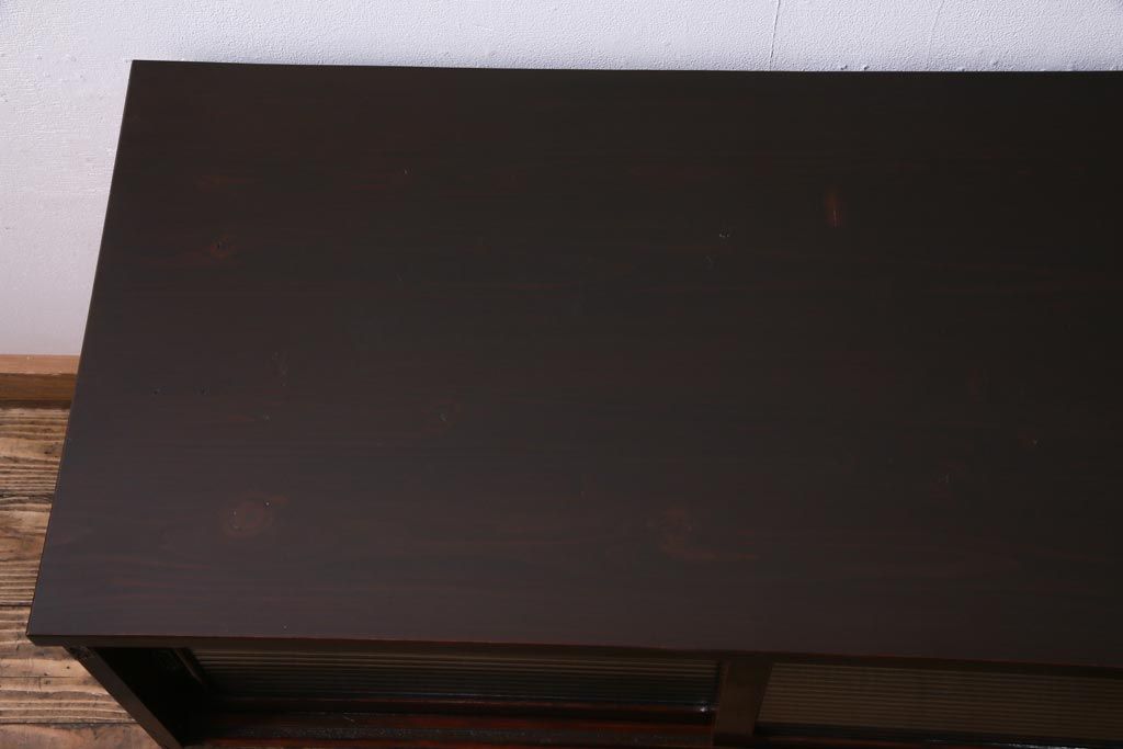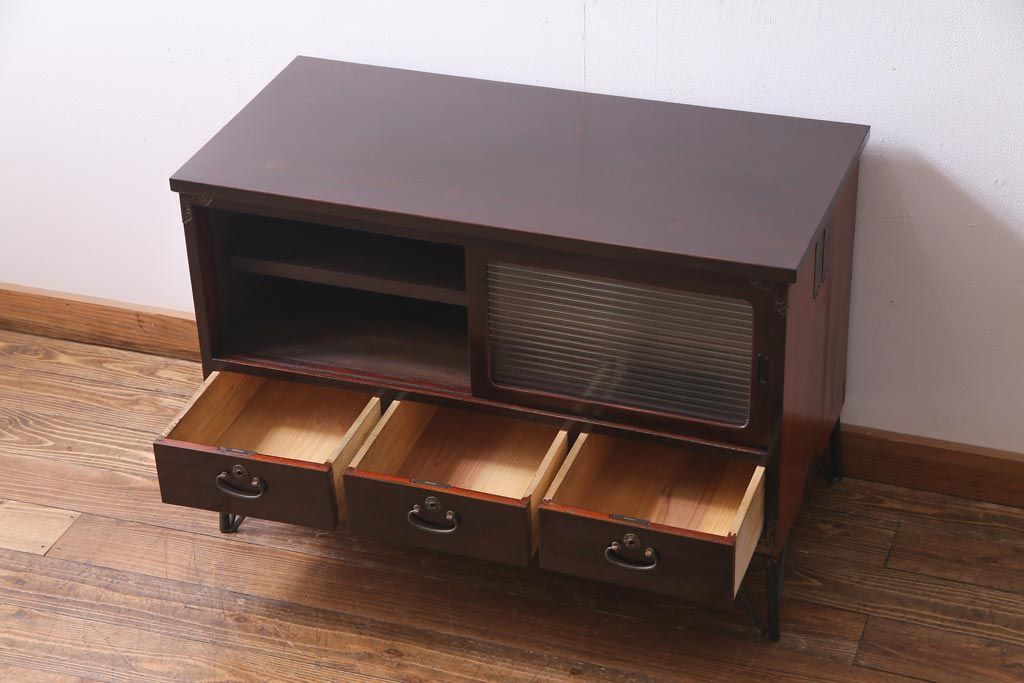 アンティーク家具 昭和初期 鉄脚付リメイク 前面ケヤキ材 漆塗りの光沢が目を引くリビングボード(テレビ台、戸棚、アンティークチェスト)