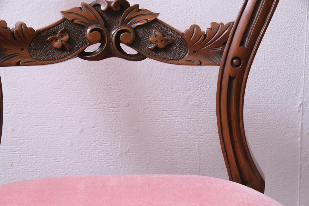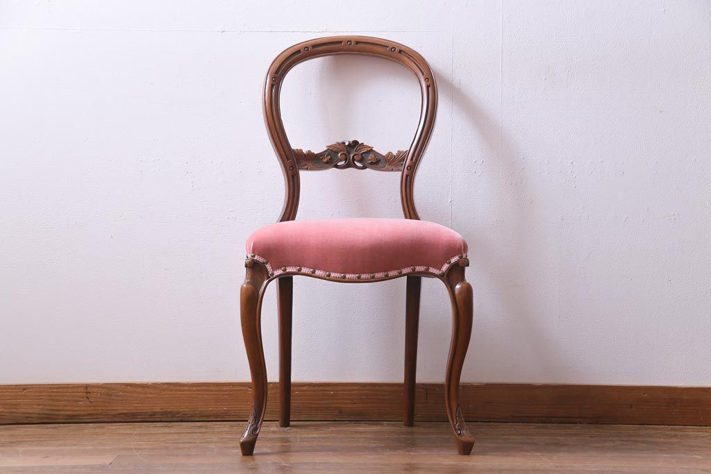 アンティーク家具 フランスアンティーク ウォールナット 優雅な佇まいのバルーンバックチェア(ダイニングチェア、椅子)