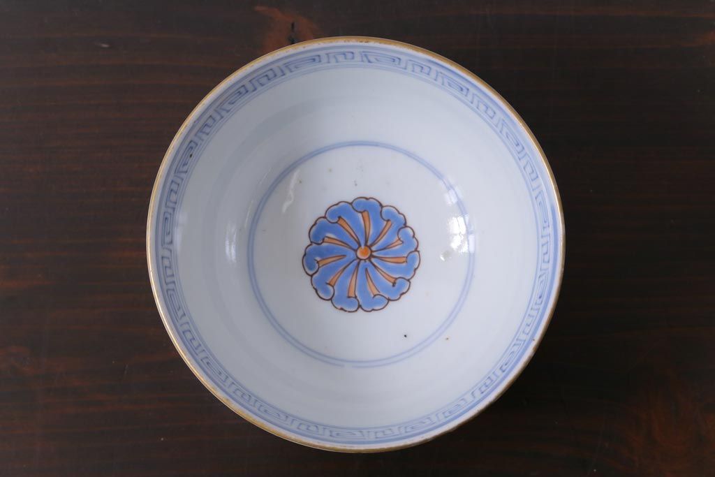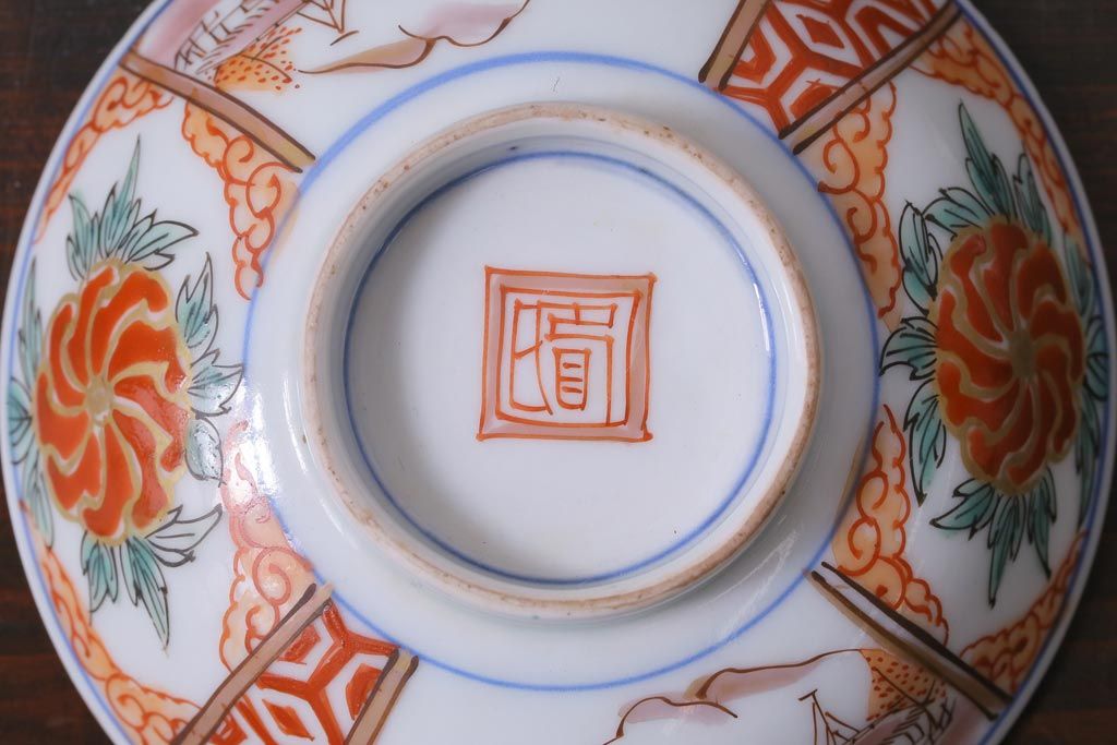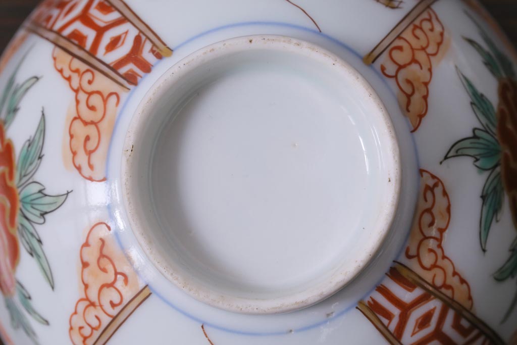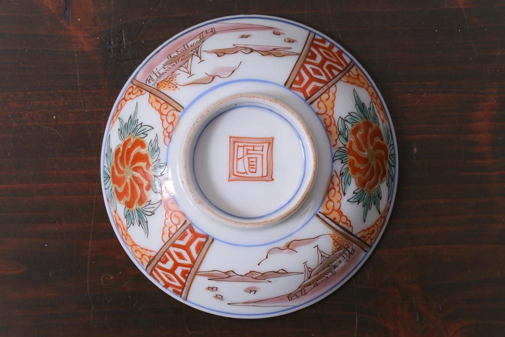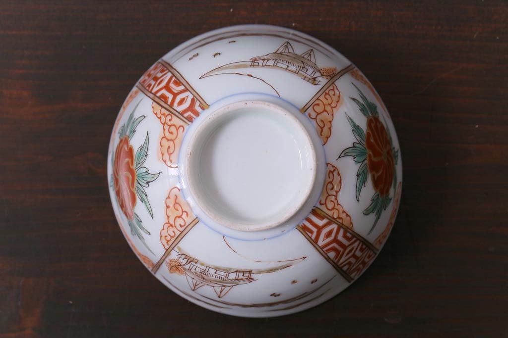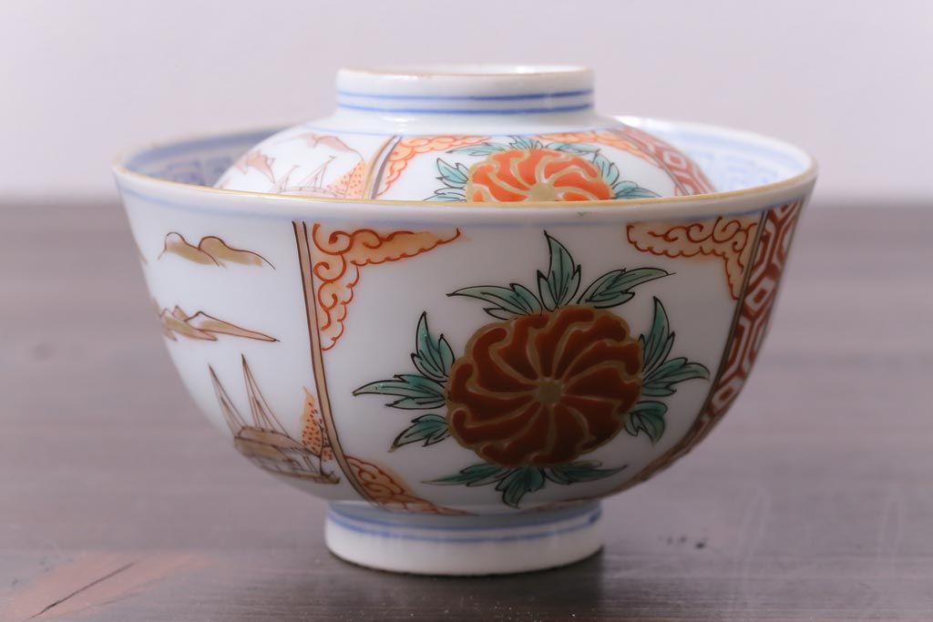 ラフジュ工房> 和食器・茶道具> お椀・茶碗 > 和製アンティーク 古伊万里 江戸期 華やかな色絵染付の蓋つき茶碗2客セット(和食器)