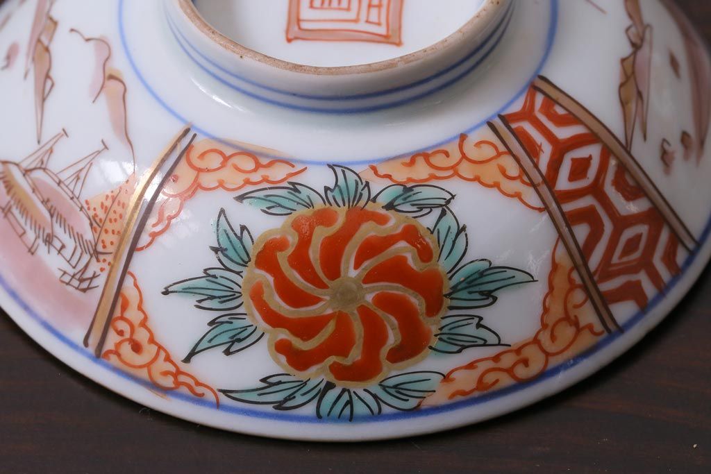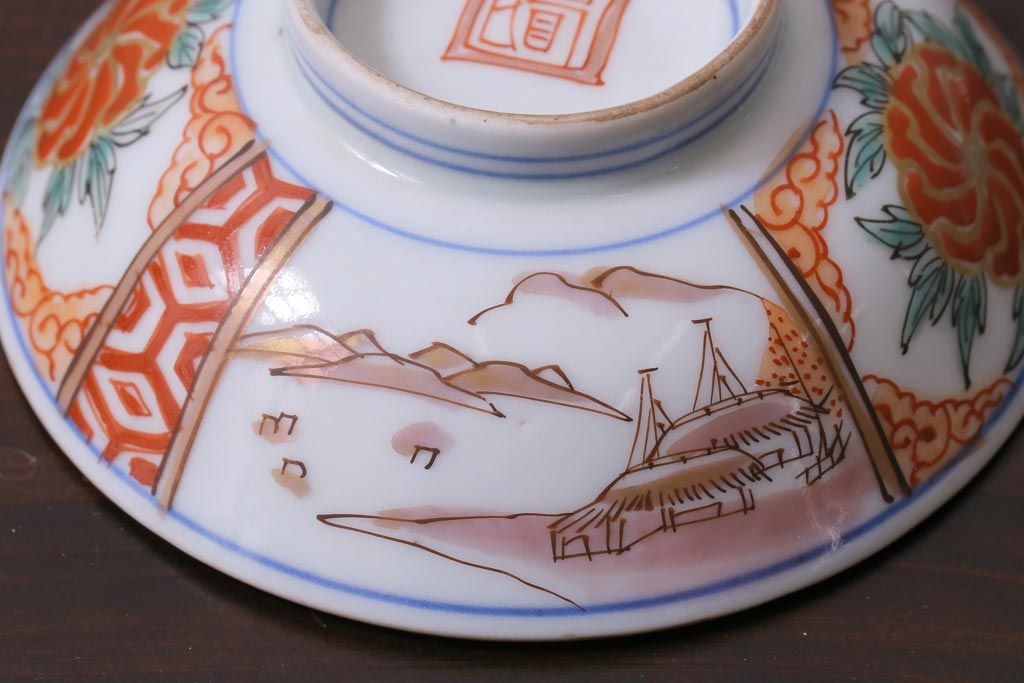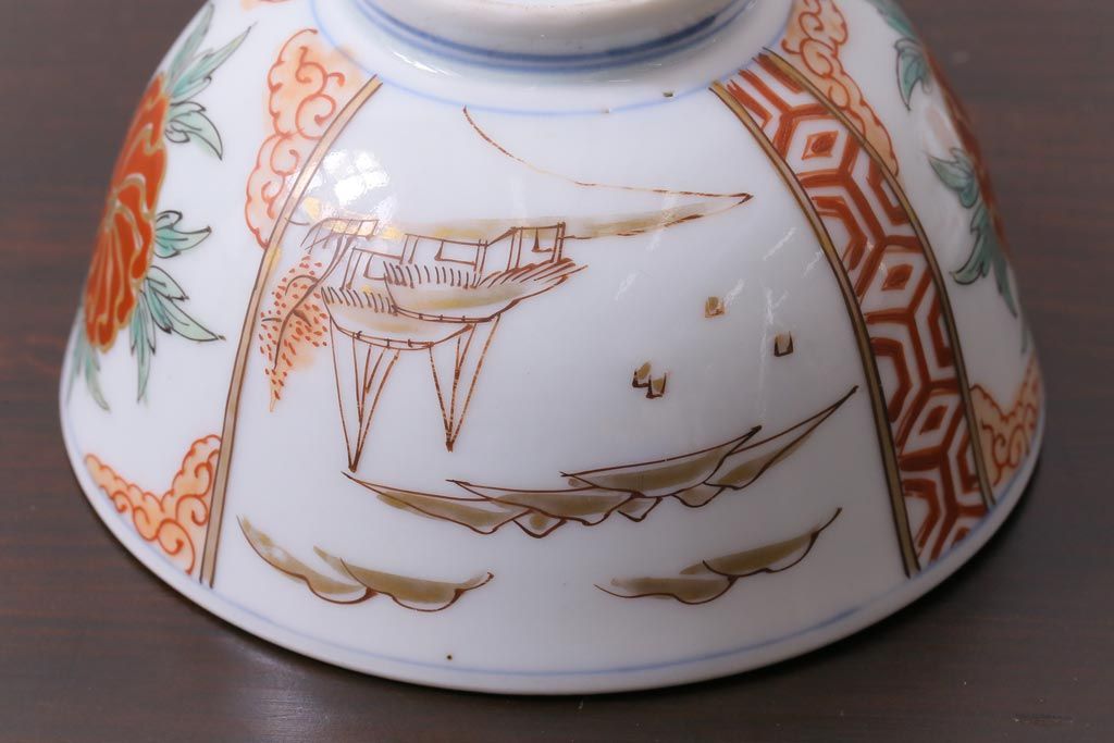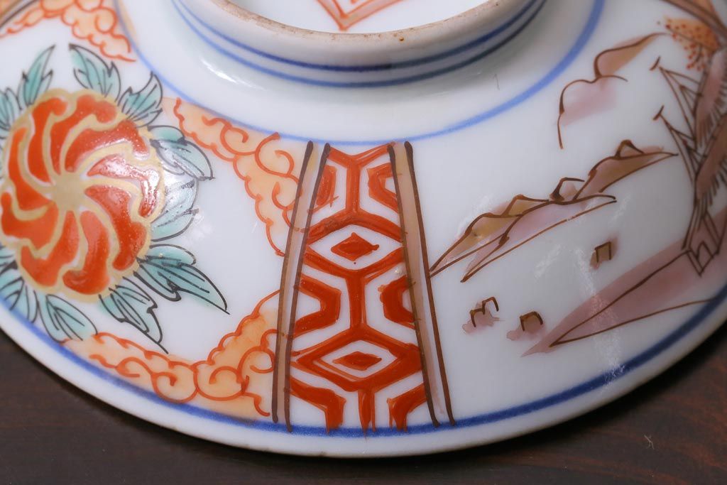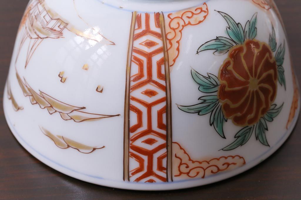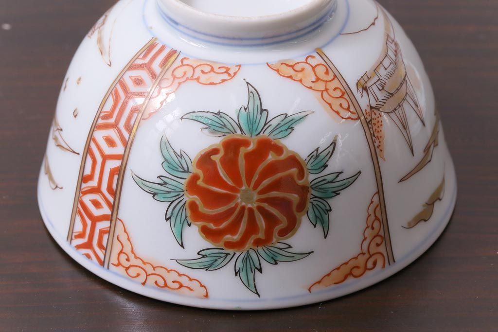 ラフジュ工房> 骨董・美術品> 骨董-陶磁器 > 和製アンティーク 古伊万里 江戸期 華やかな色絵染付の蓋つき茶碗2客セット(和食器)