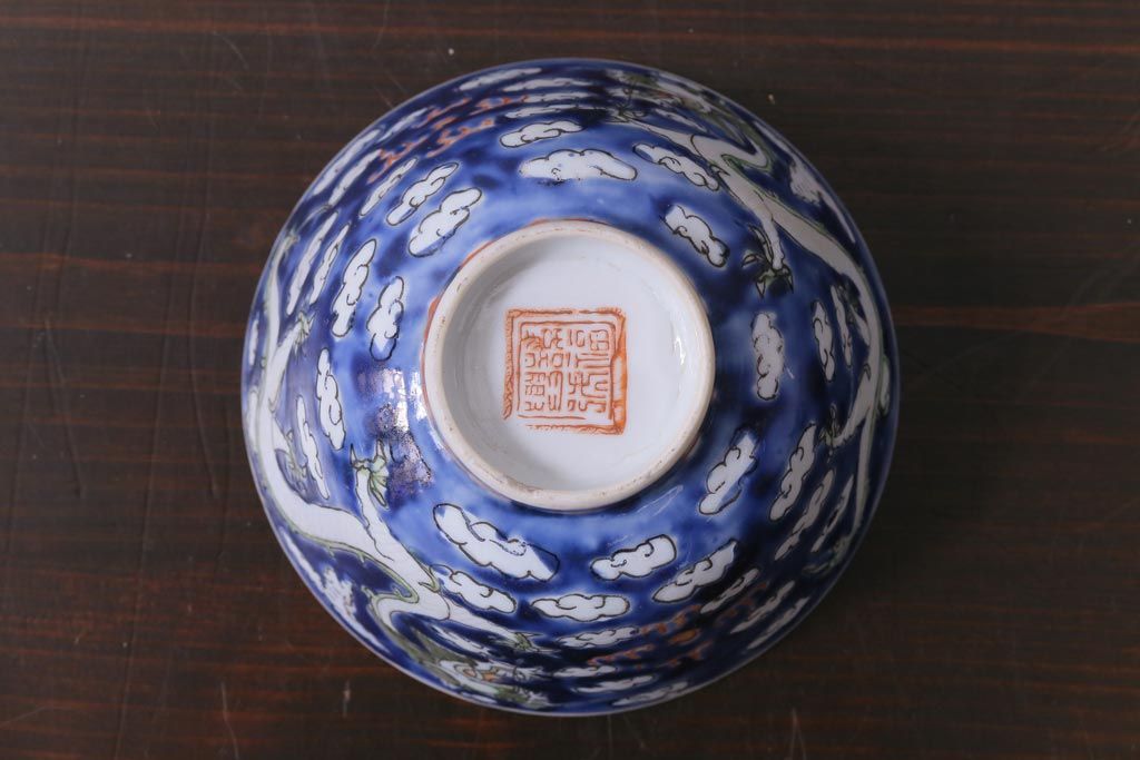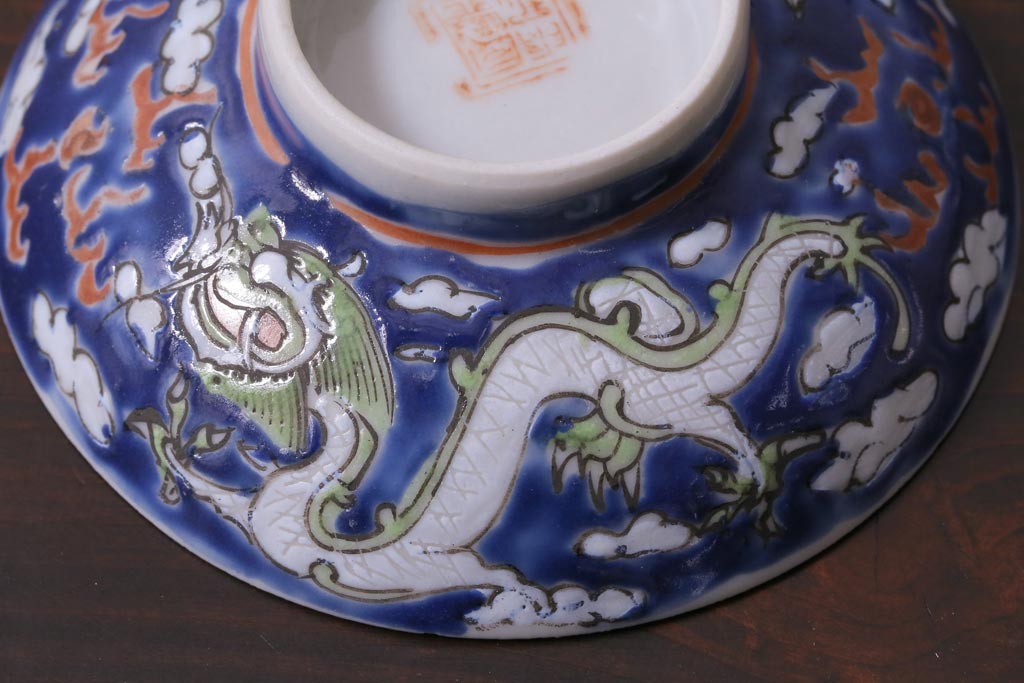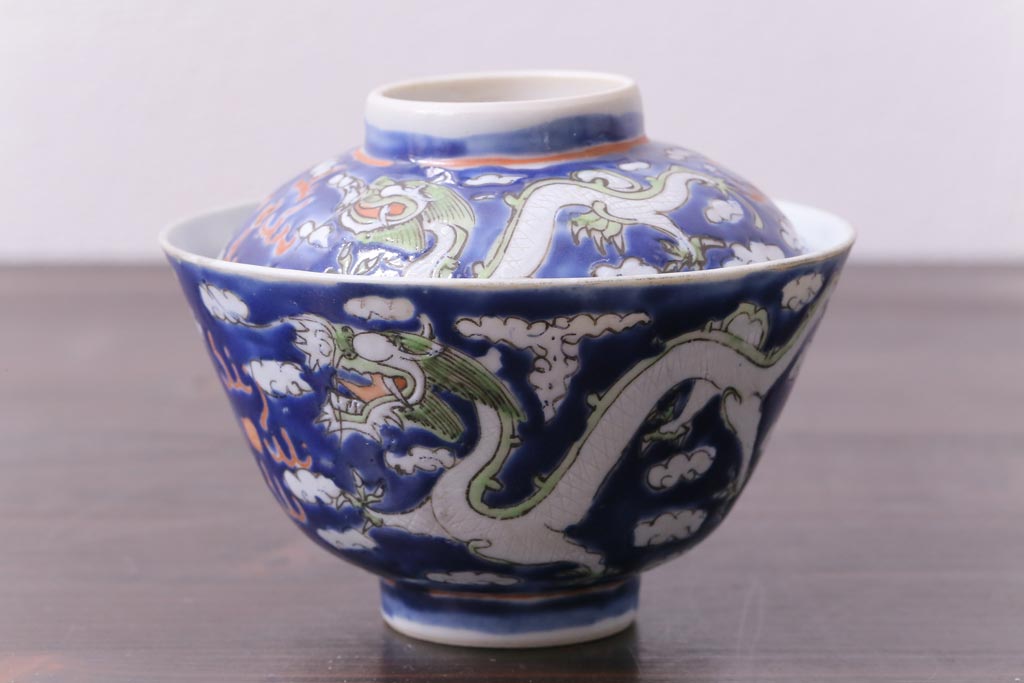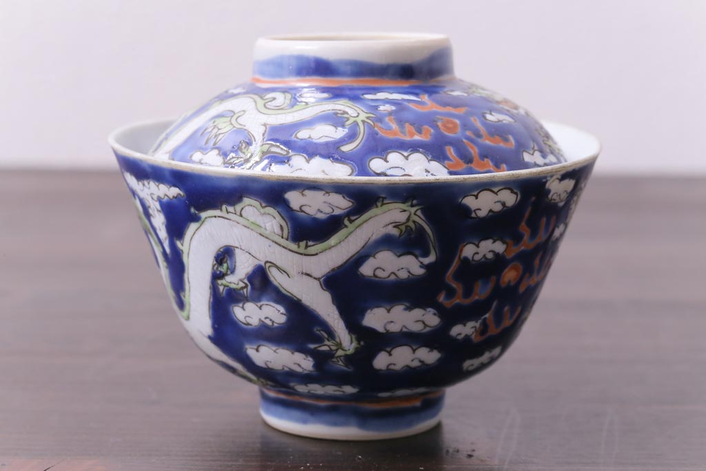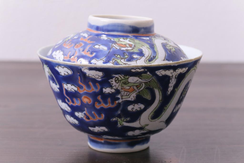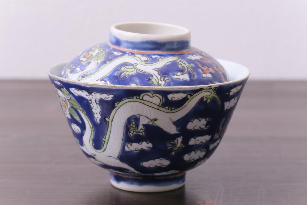 ラフジュ工房> 骨董・美術品 > 古民具・骨董 龍の図 色絵 独特な絵柄の蓋付き茶碗2客セット(和食器)(3)