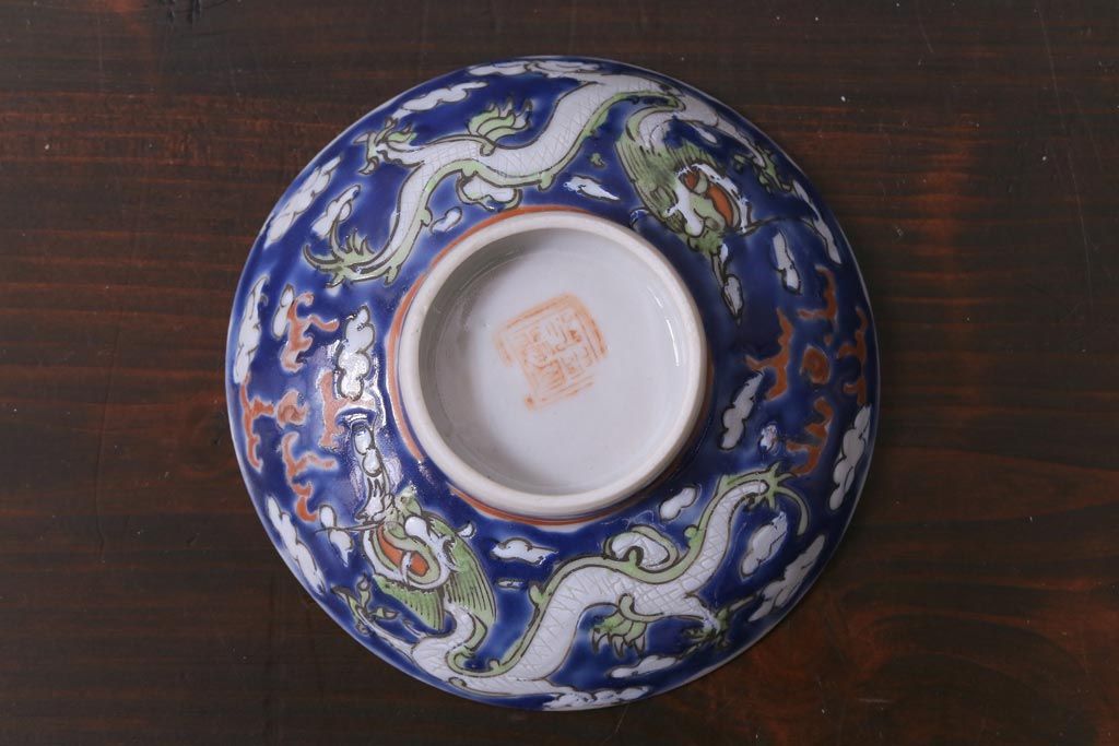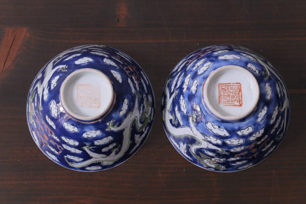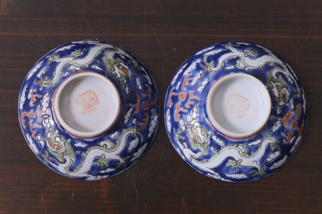 ラフジュ工房> 和食器・茶道具> お椀・茶碗 > 古民具・骨董 龍の図 色絵 独特な絵柄の蓋付き茶碗2客セット(和食器)(3)