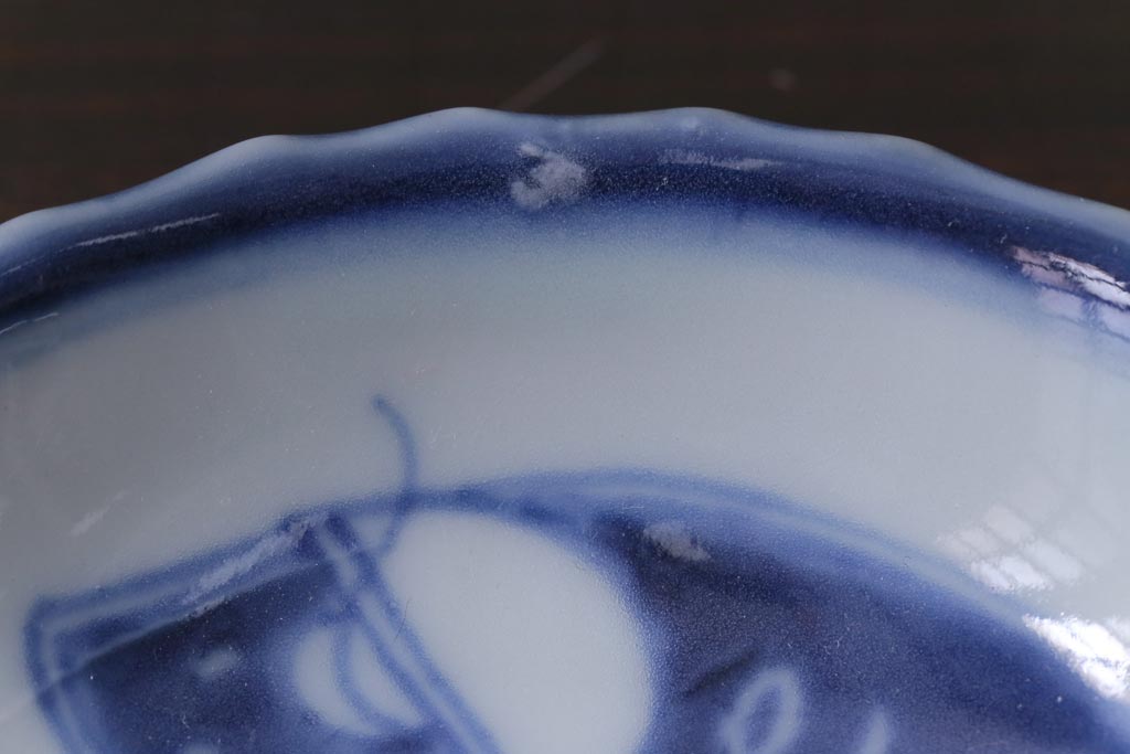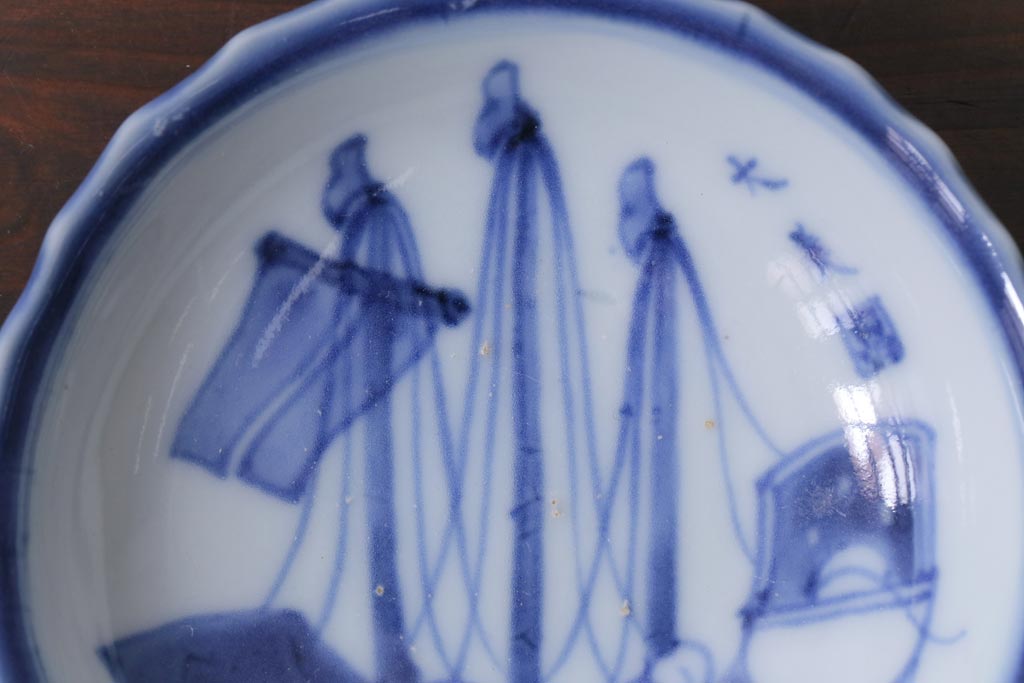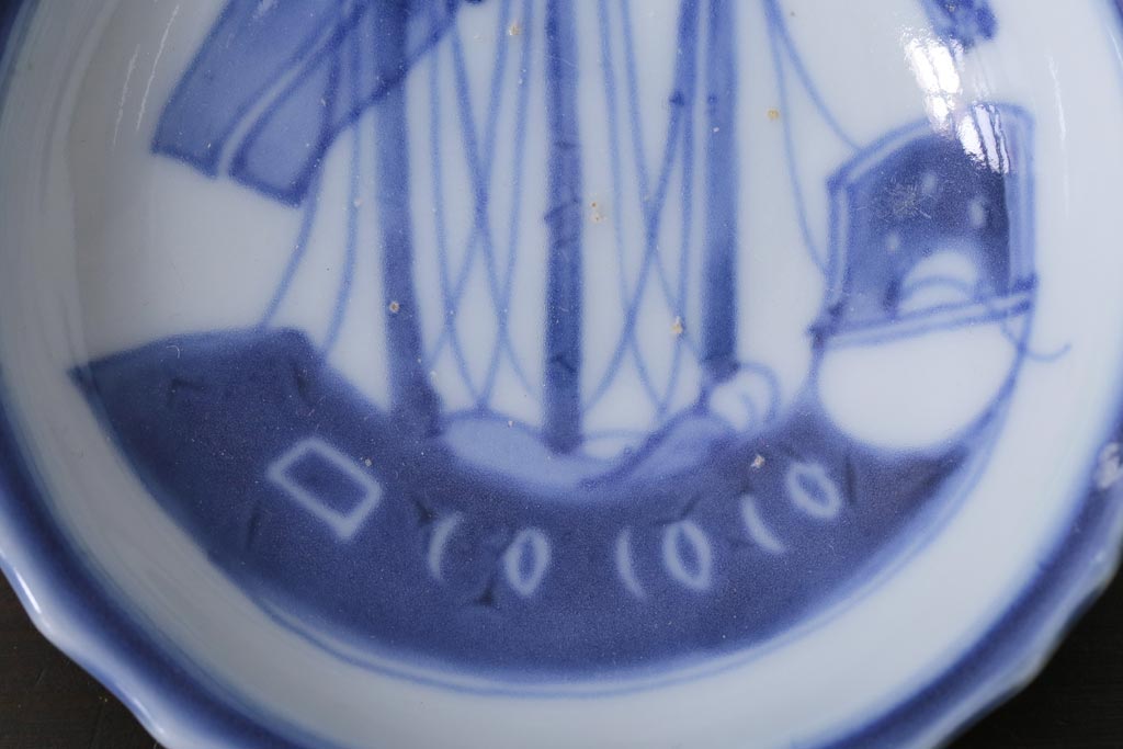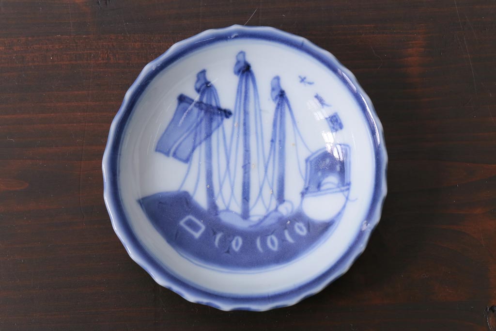 ラフジュ工房> 骨董・美術品 > 骨董 江戸期 古伊万里 船の図 染付 3.3寸小皿2枚セット(和食器)