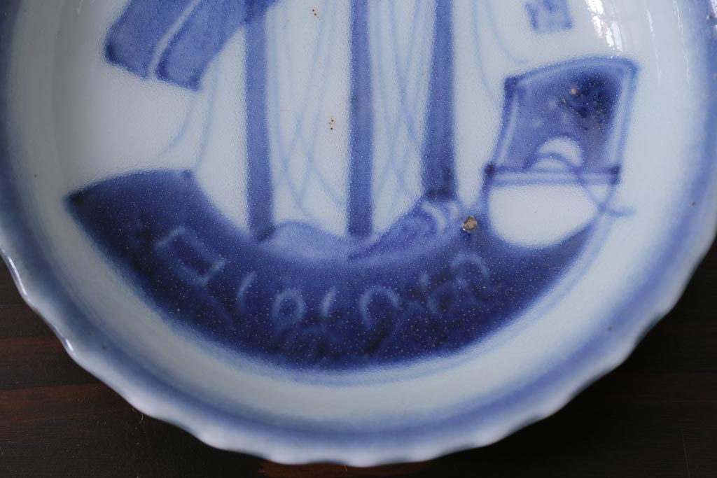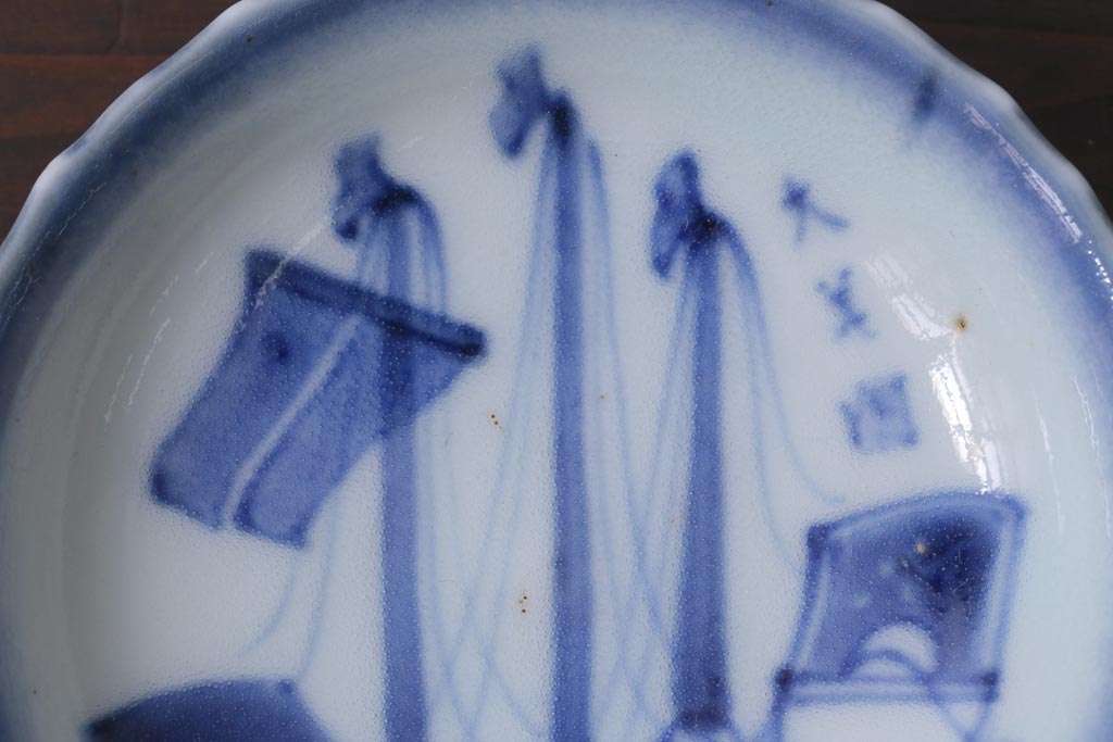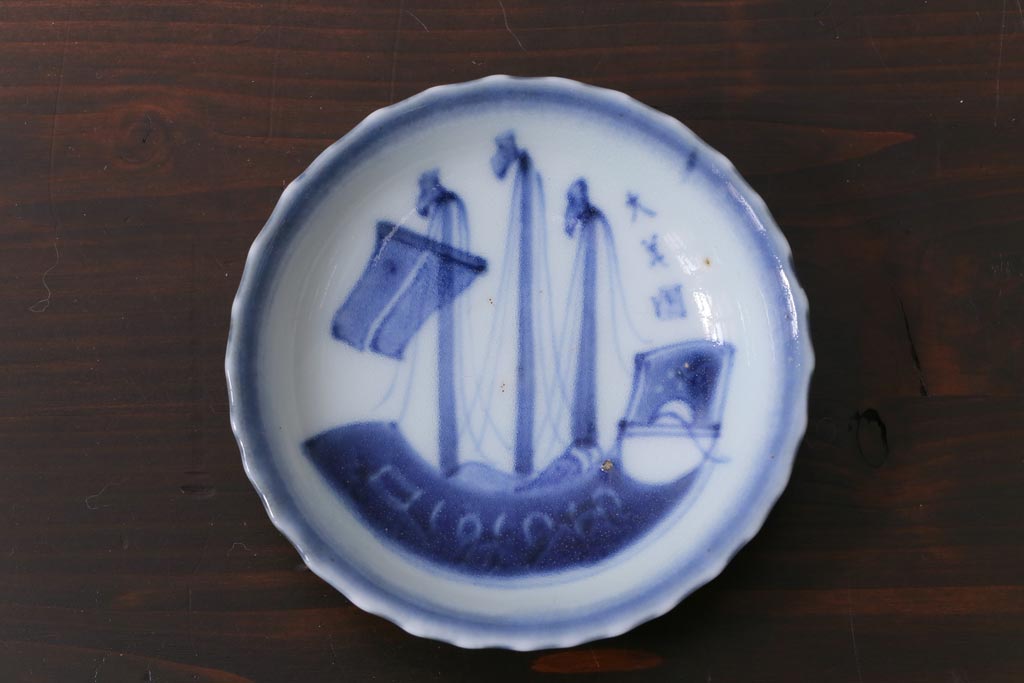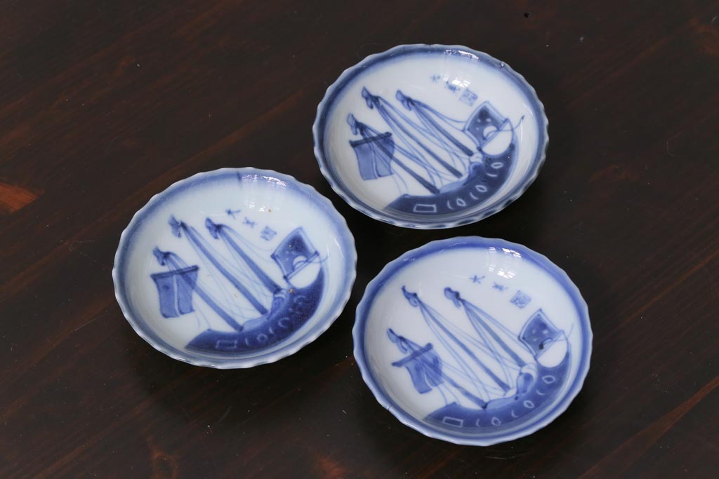 ラフジュ工房> 骨董・美術品 > 骨董 江戸期 古伊万里 船の図 染付 3.3寸小皿3枚セット(和食器)