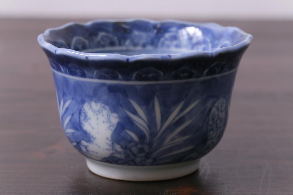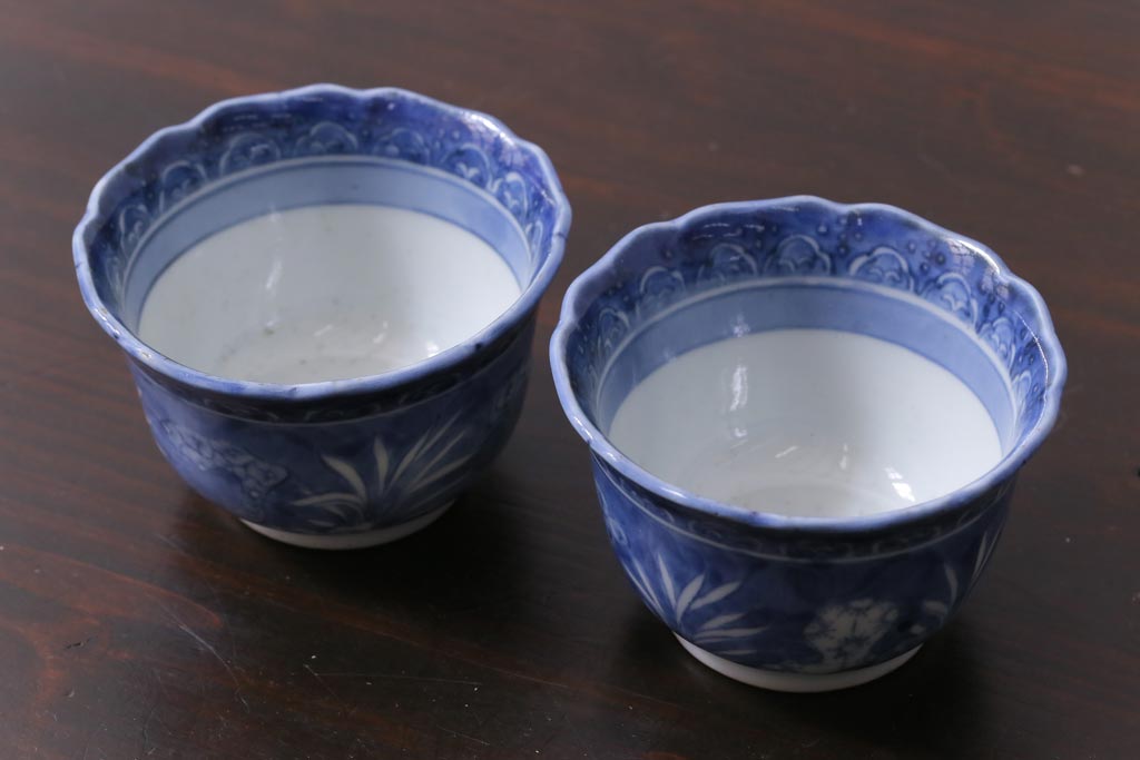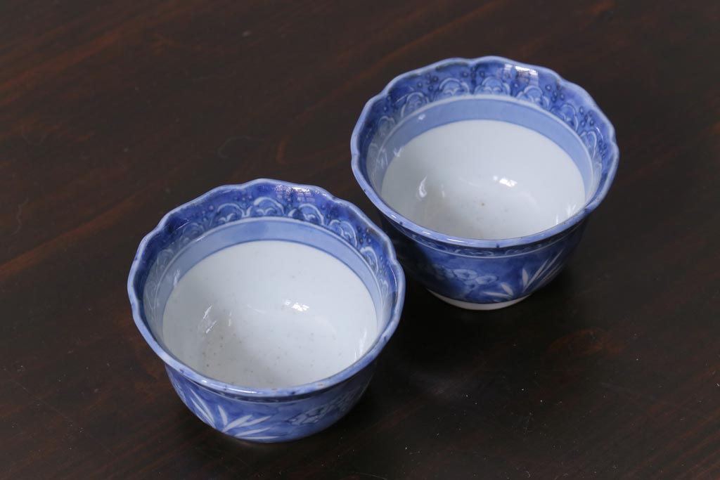 ラフジュ工房> 骨董・美術品> 骨董-陶磁器 > 江戸期 古伊万里 藍の濃淡が美しい草花文の小鉢2つセット(そば猪口、和食器)(1)