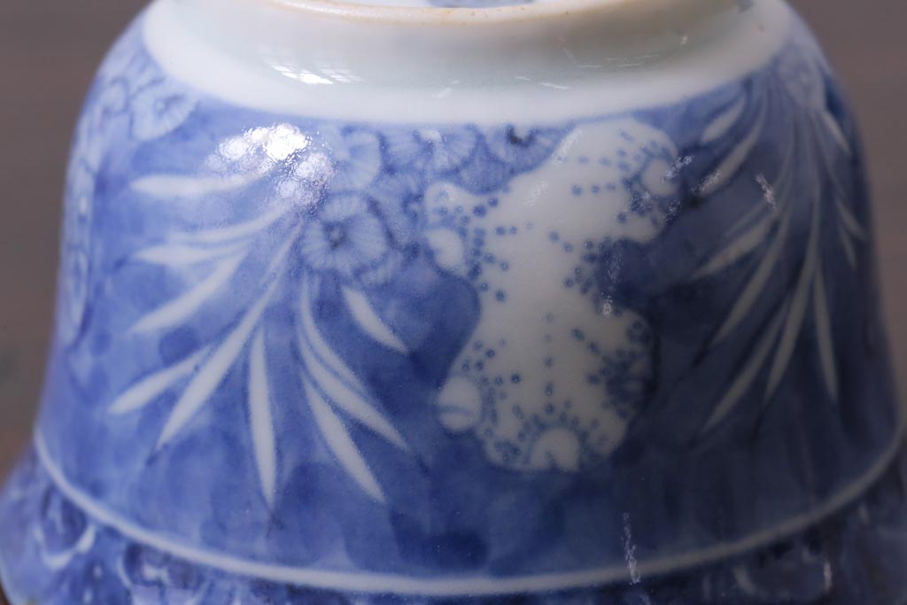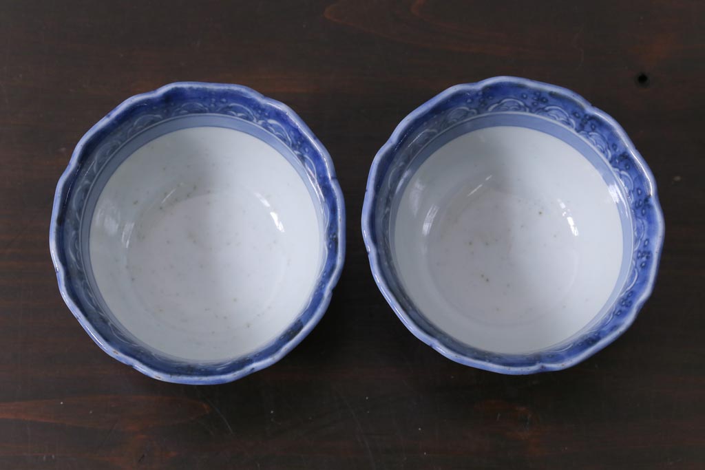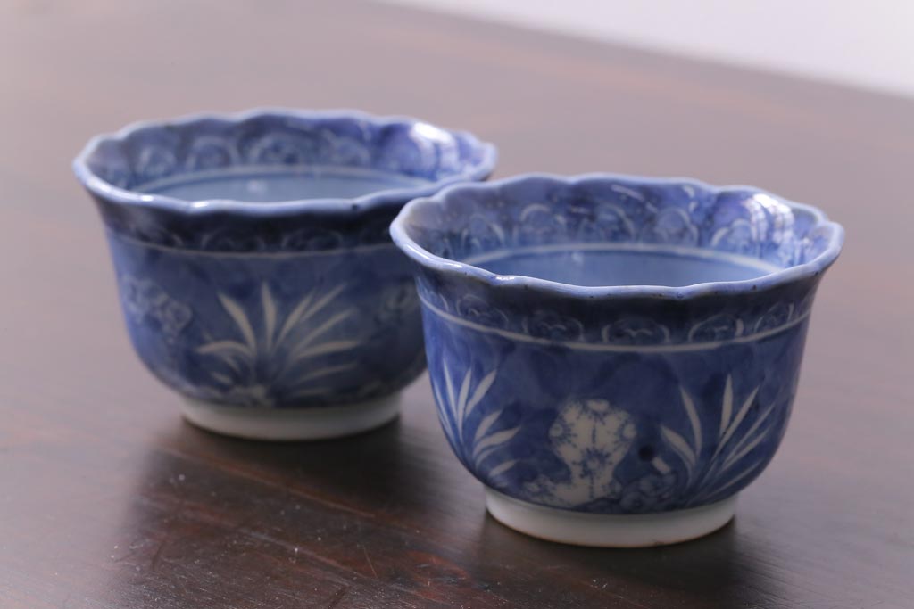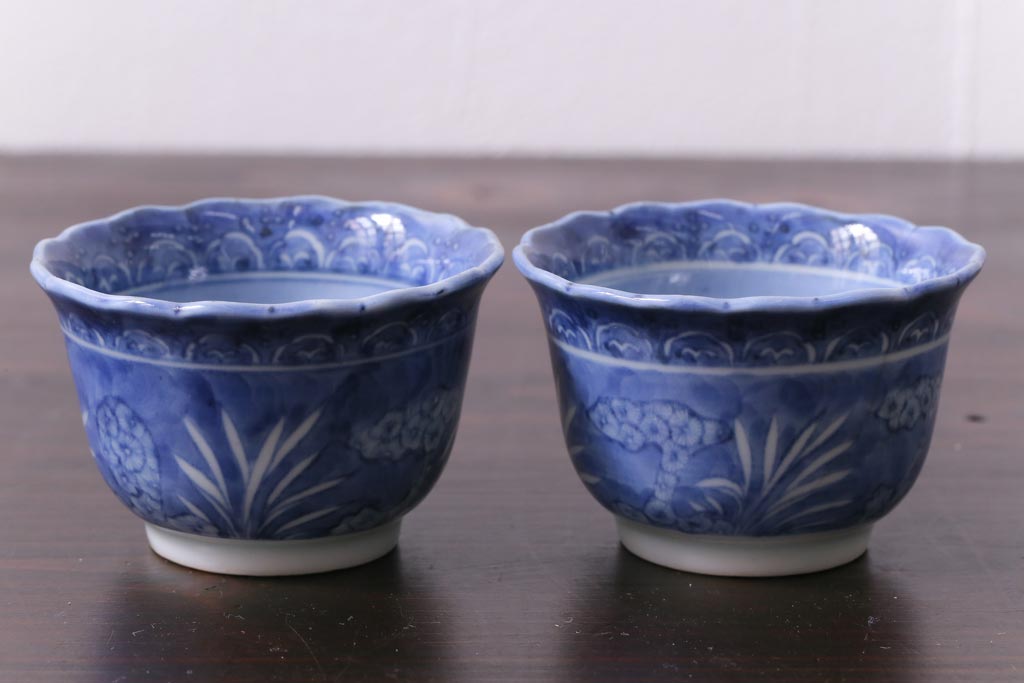 江戸期 古伊万里 藍の濃淡が美しい草花文の小鉢2つセット(そば猪口、和食器)(1)