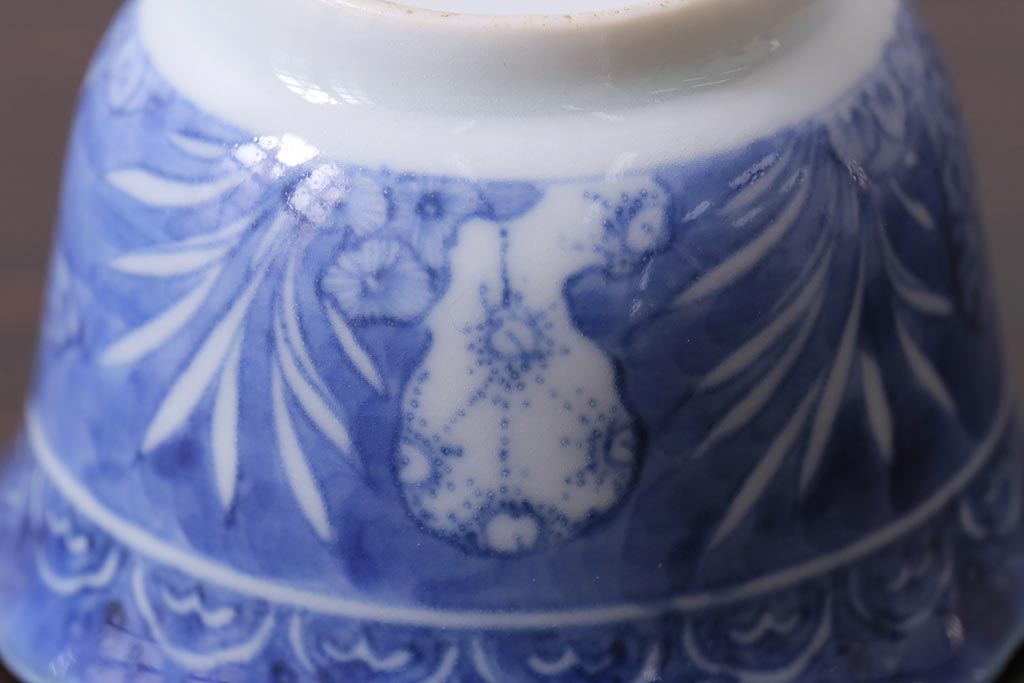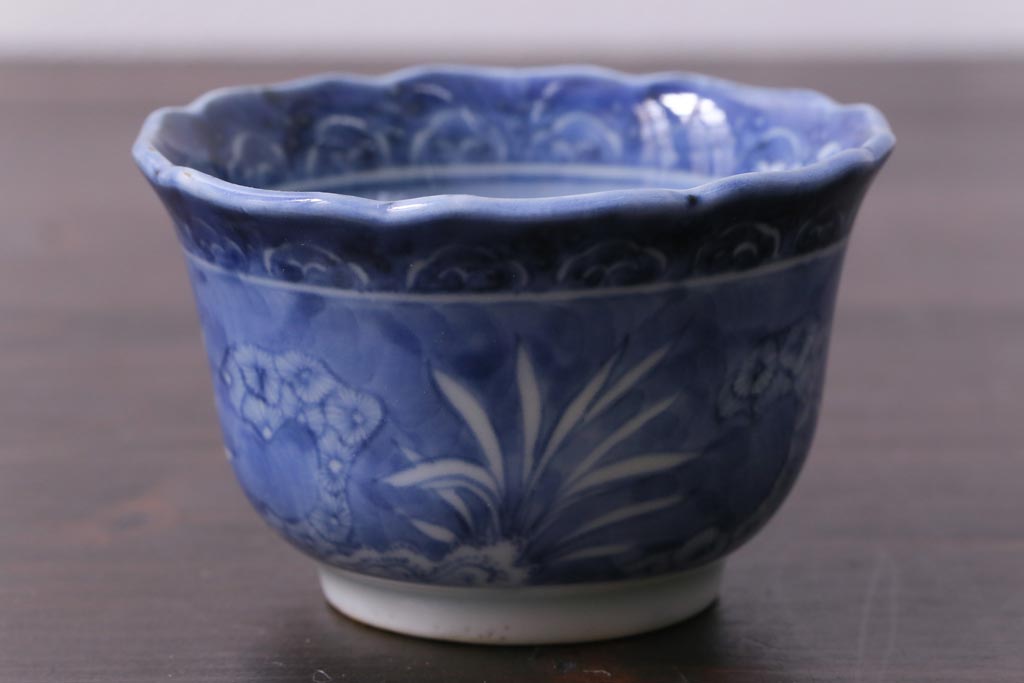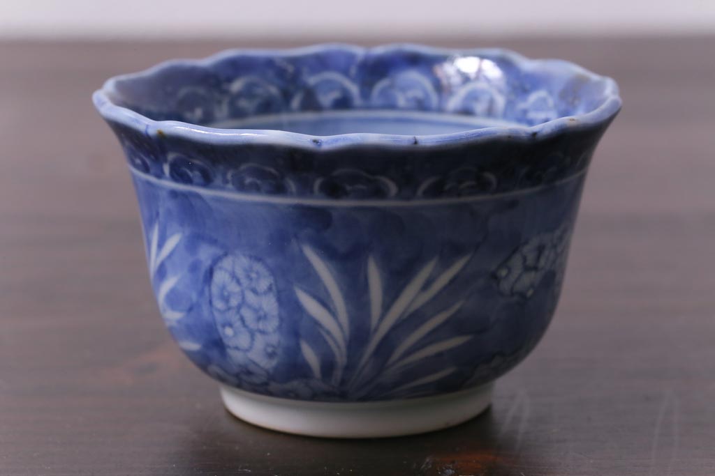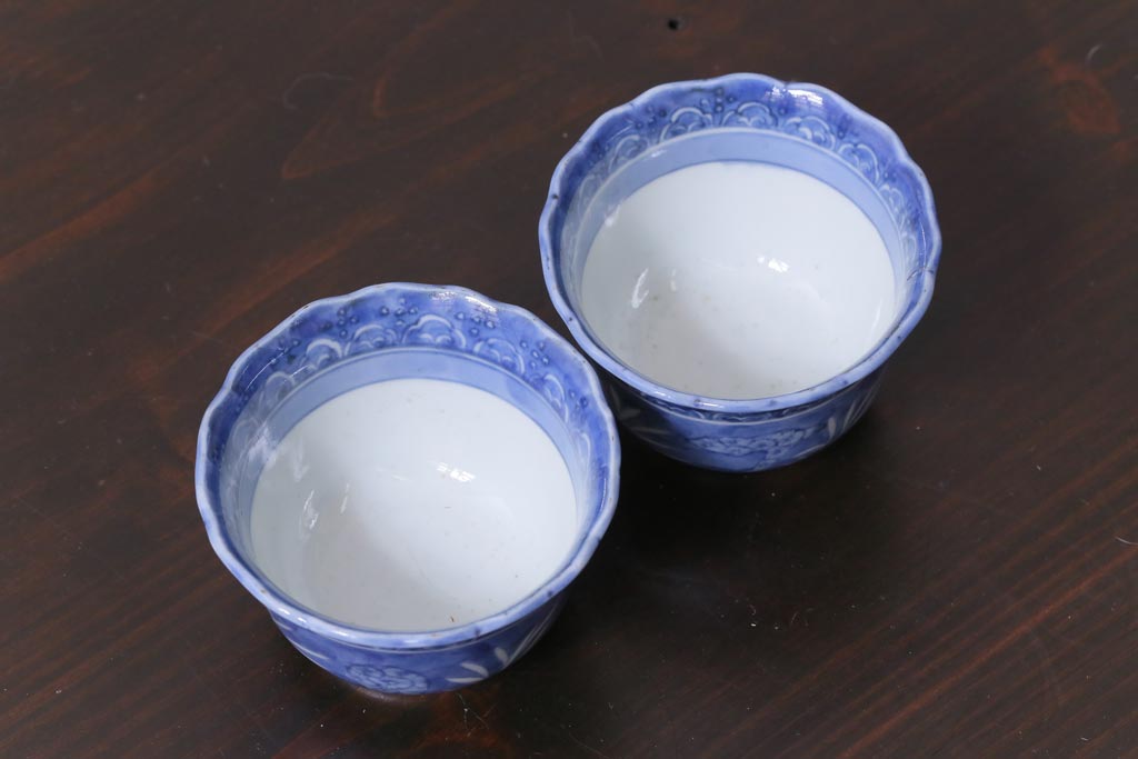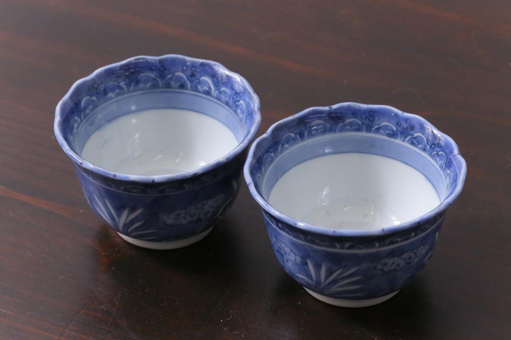 ラフジュ工房> 骨董・美術品> 骨董-陶磁器 > 江戸期 古伊万里 藍の濃淡が美しい草花文の小鉢2つセット(そば猪口、和食器)(2)
