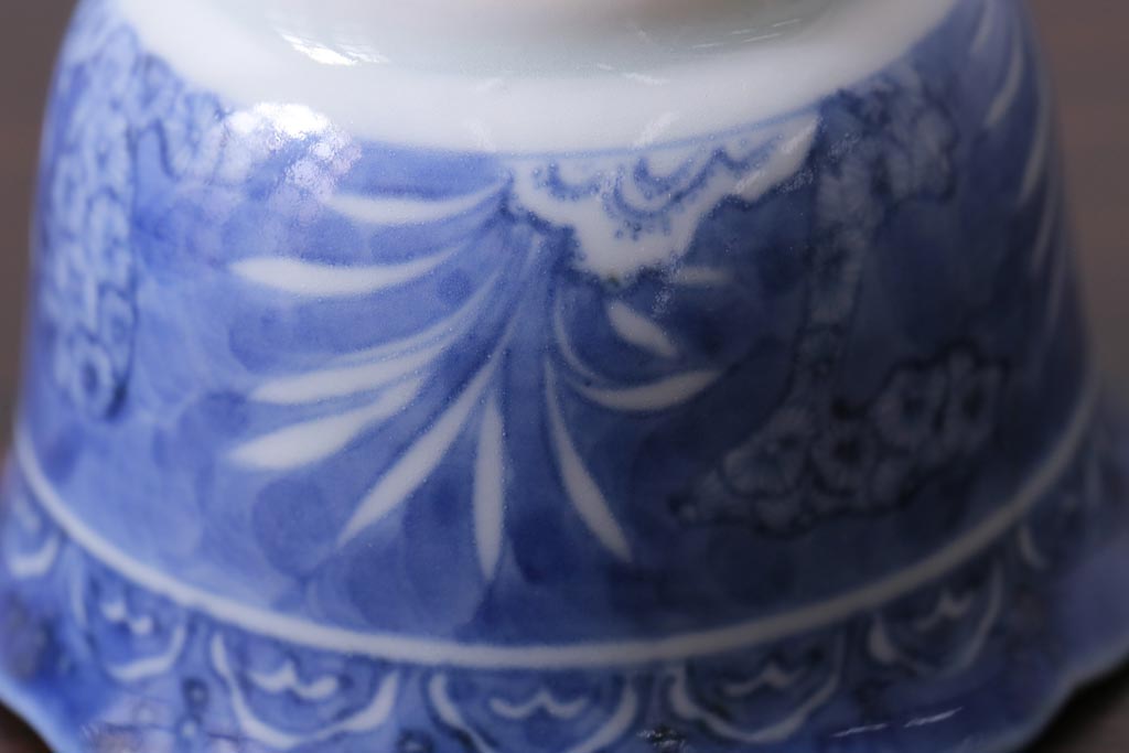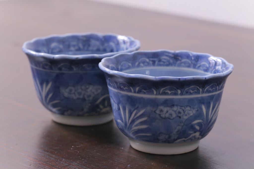 江戸期 古伊万里 藍の濃淡が美しい草花文の小鉢2つセット(そば猪口、和食器)(2)
