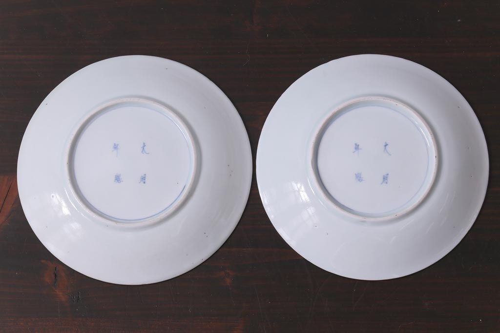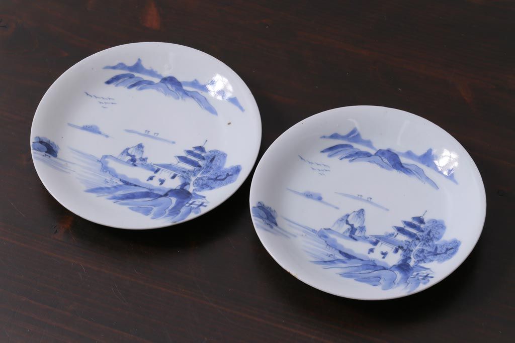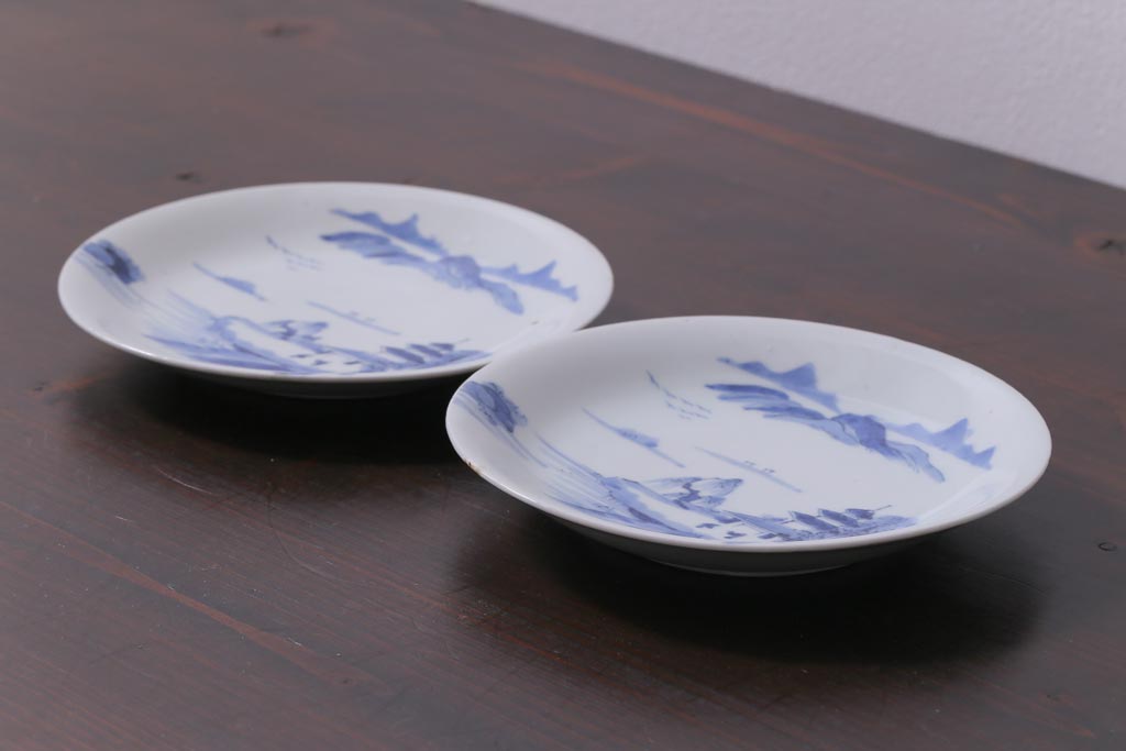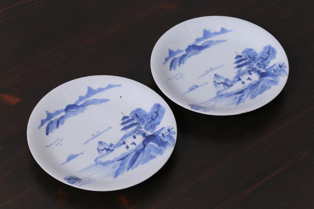 古民具・骨董 江戸期 古伊万里 山水図の中皿(和食器)2枚セット