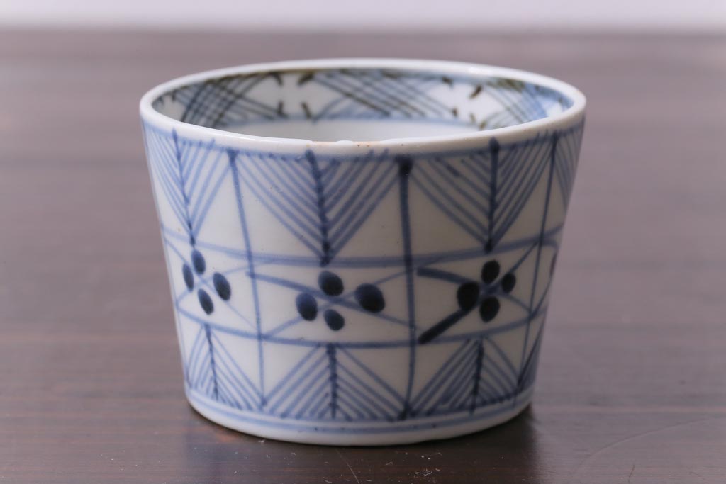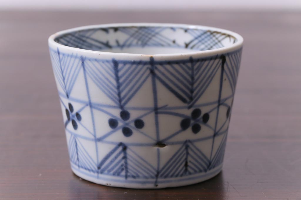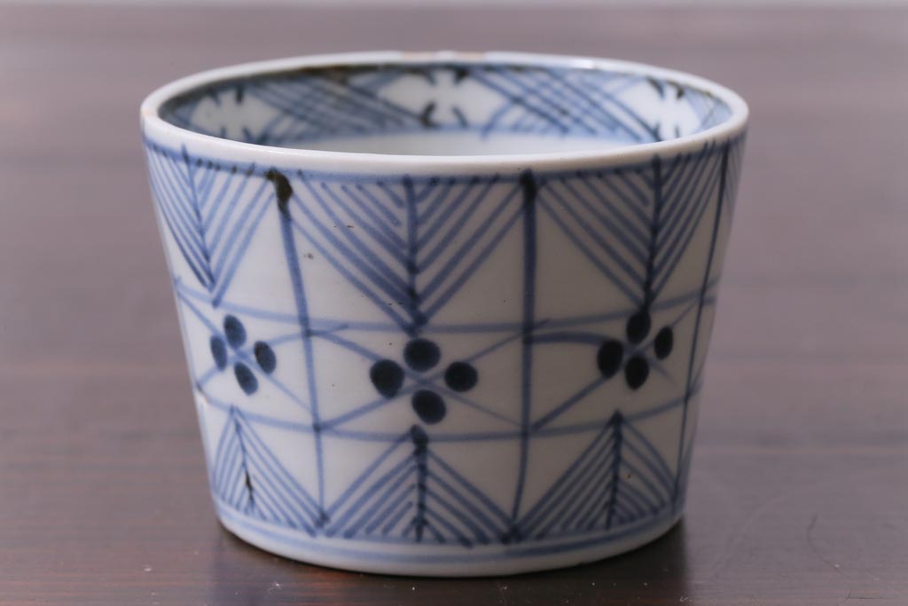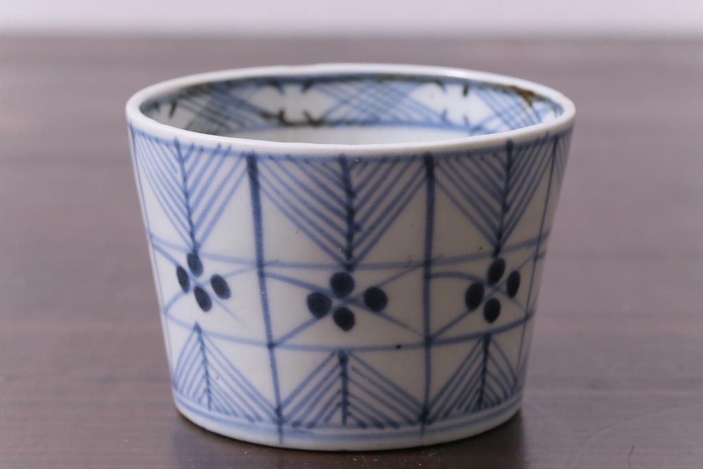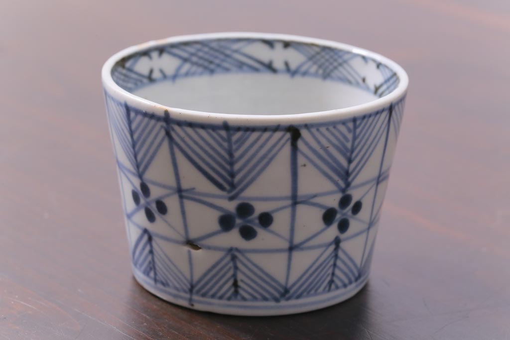 江戸後期 四弁花文 淡い藍が味わい深いアンティークのそば猪口(蕎麦猪口、和食器)(2)