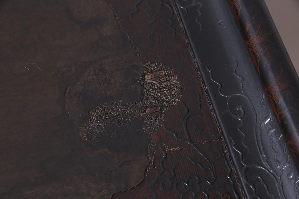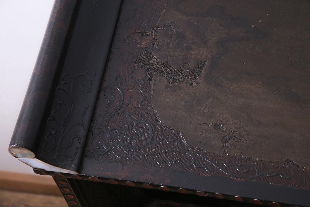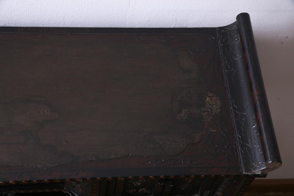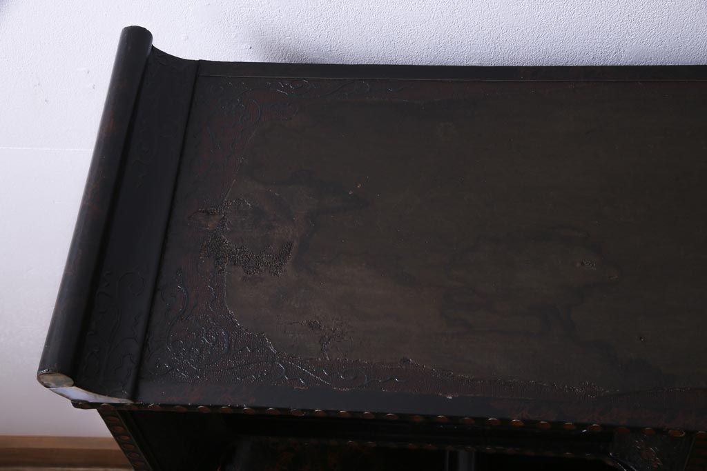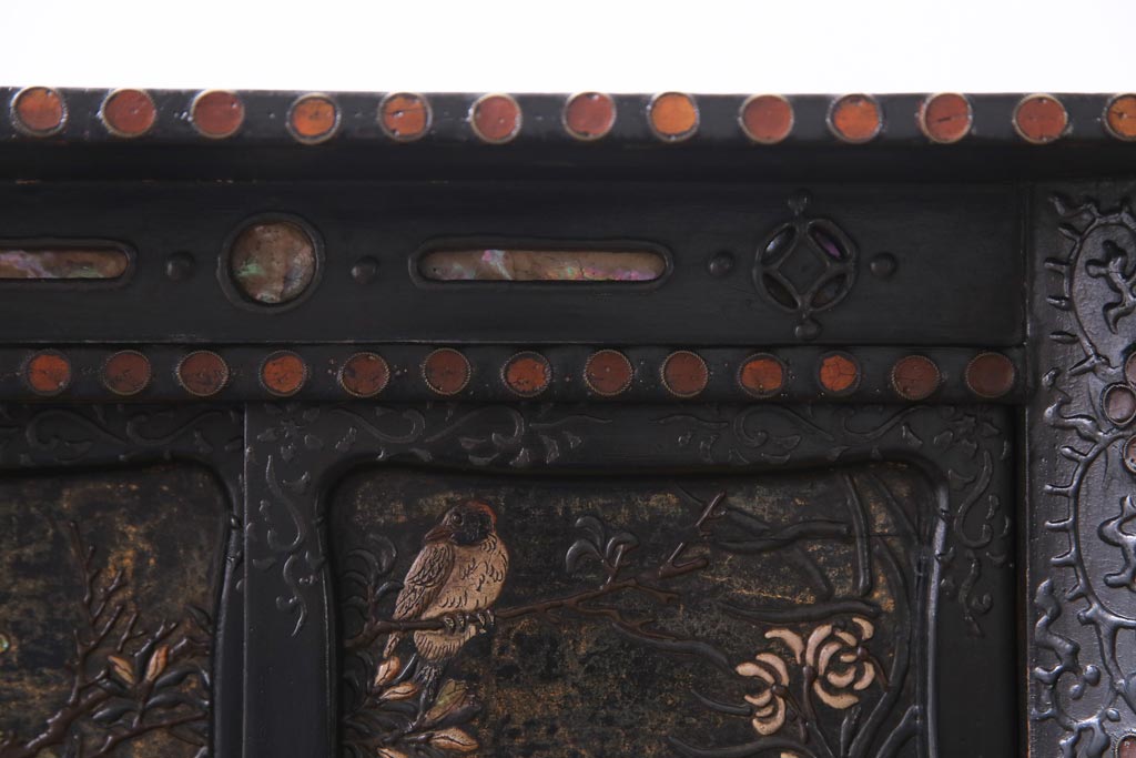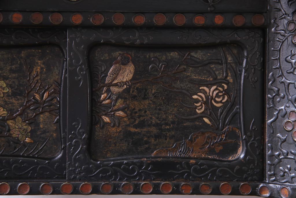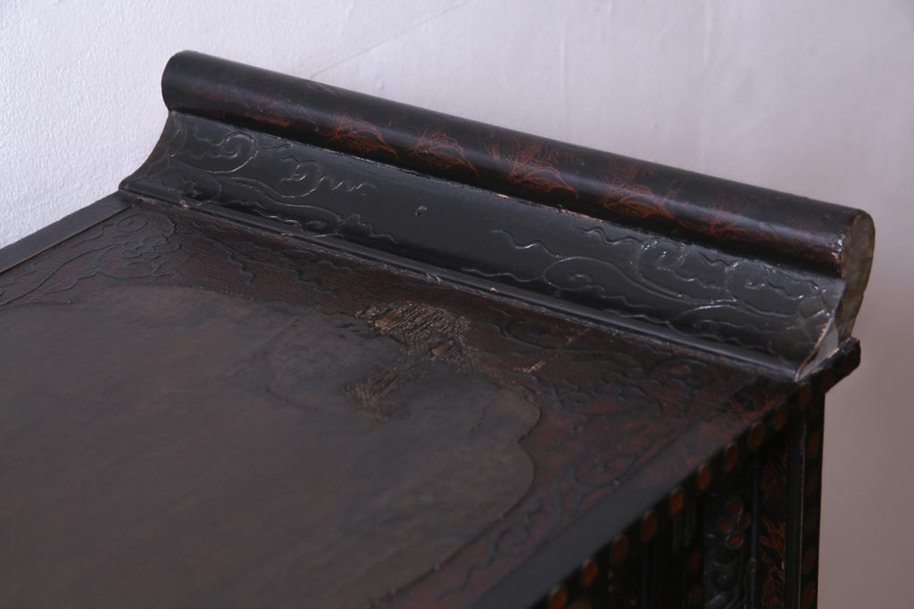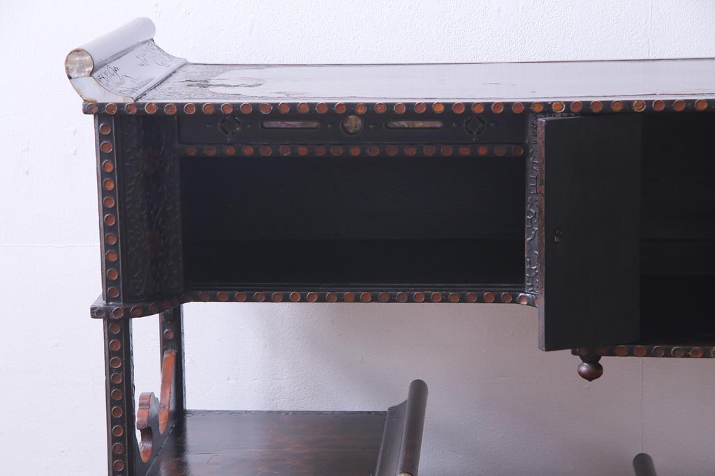 アンティーク家具 和製アンティーク 漆塗り 布目塗り 螺鈿・象嵌細工 花鳥図の茶棚(飾棚)