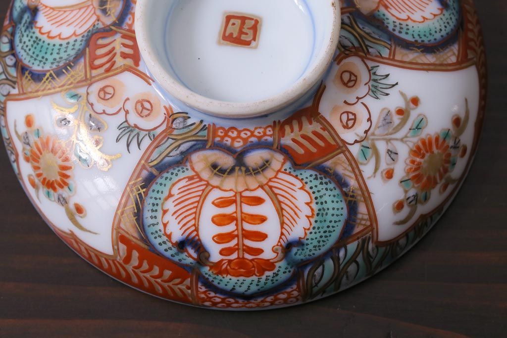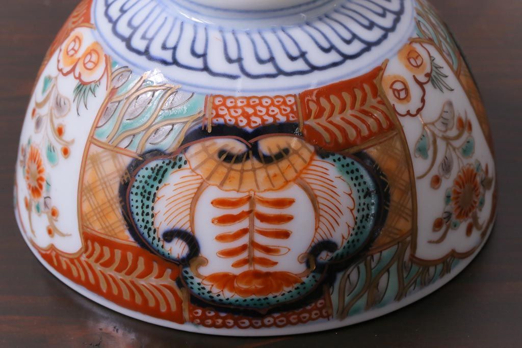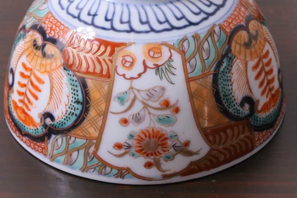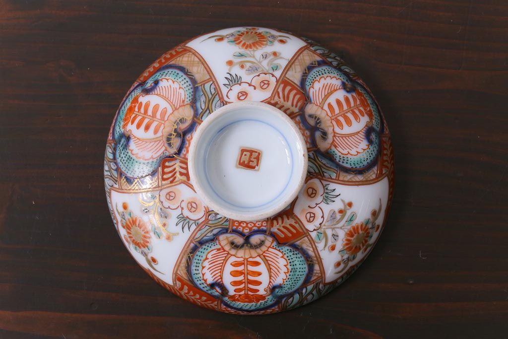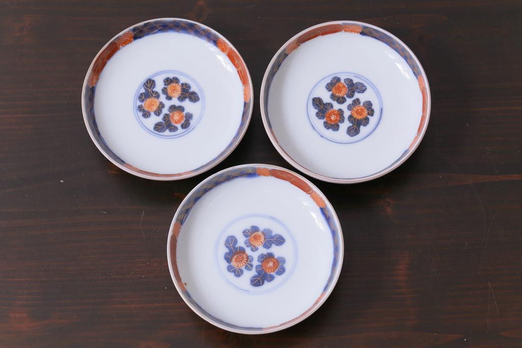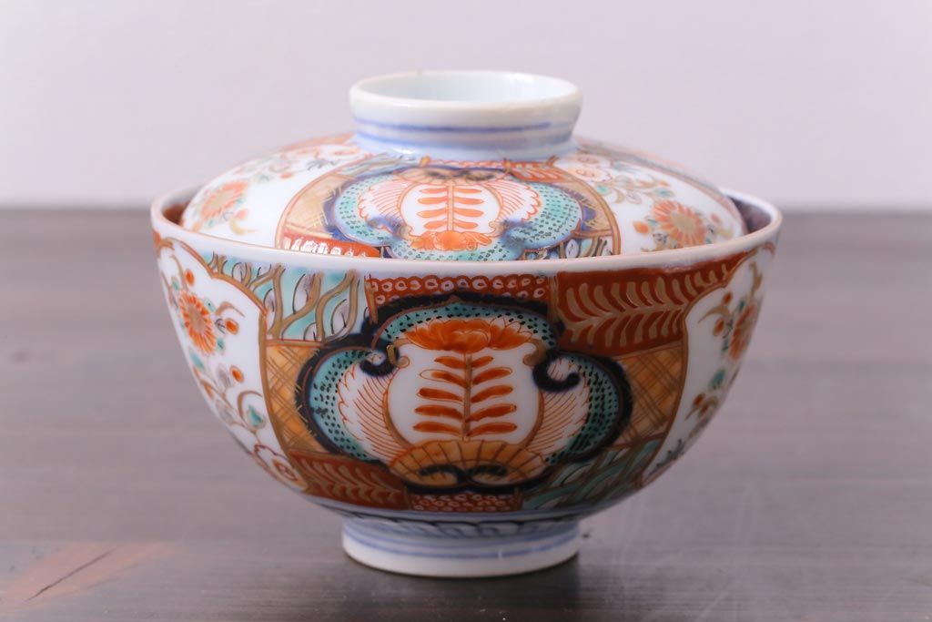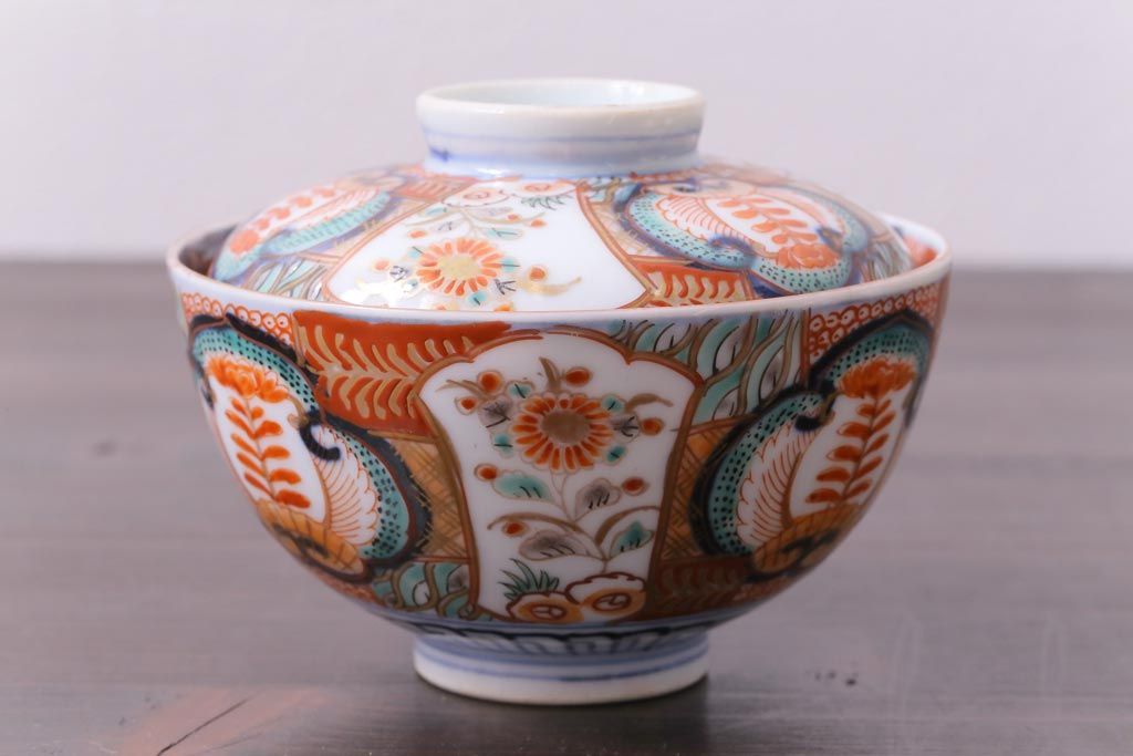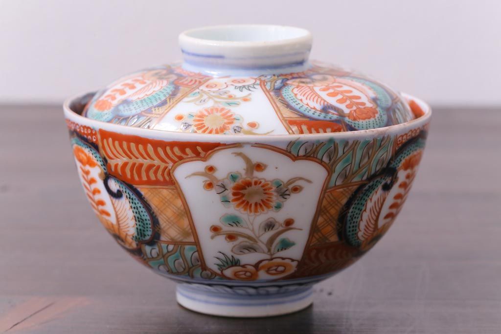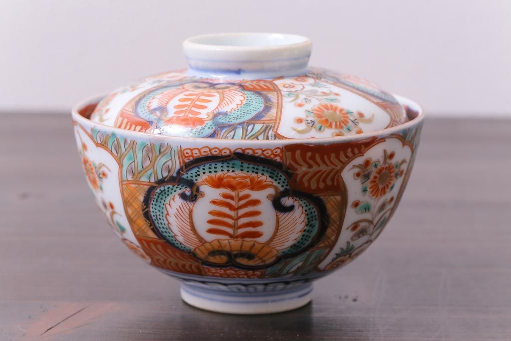 和製アンティーク 伊万里 豊かな彩りを感じる色絵の蓋付き茶碗3客セット(和食器)