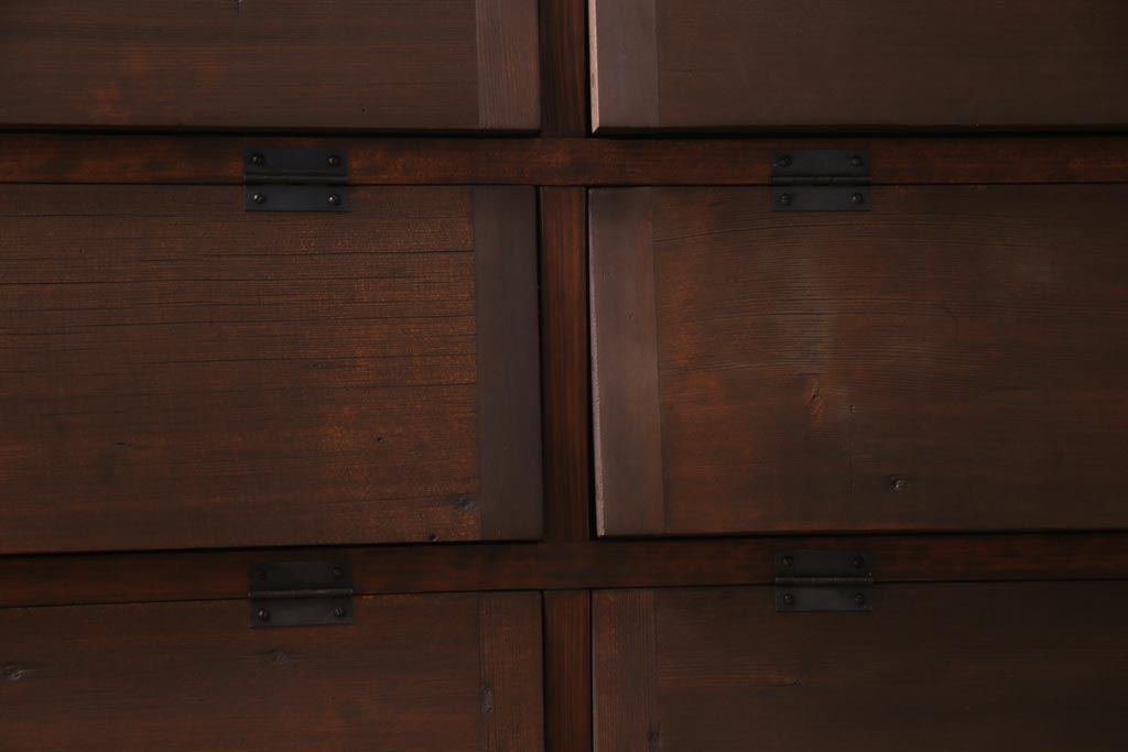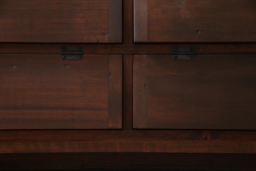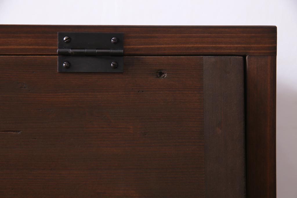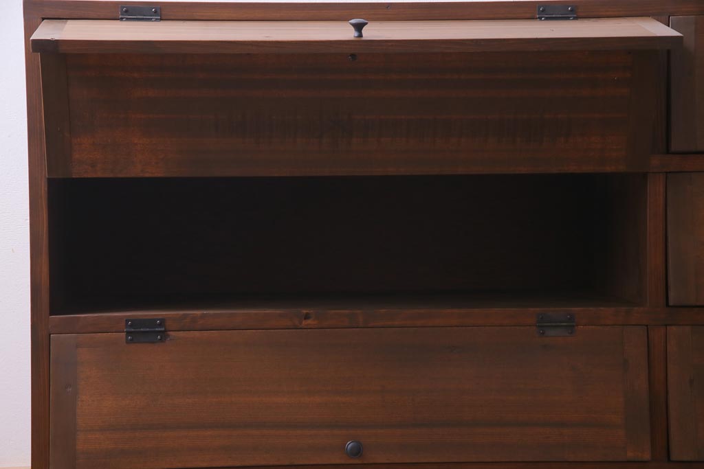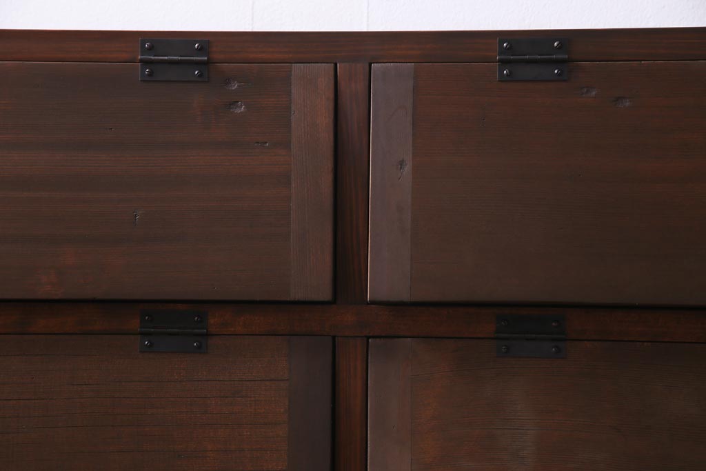 キャビネット・戸棚> 下駄箱 > ラフジュ工房オリジナル 古材リメイク 前板サワラ材 脚付き パタパタ扉が使い勝手の良い収納棚(リビングボード、戸棚、下駄箱)(1)