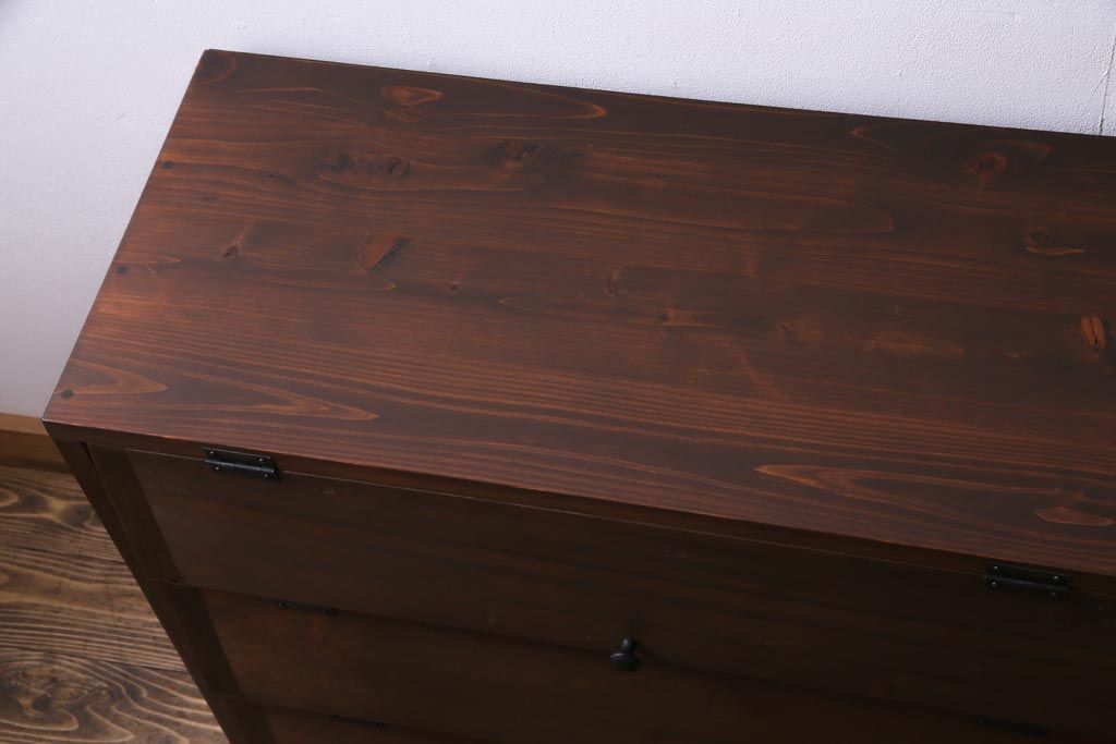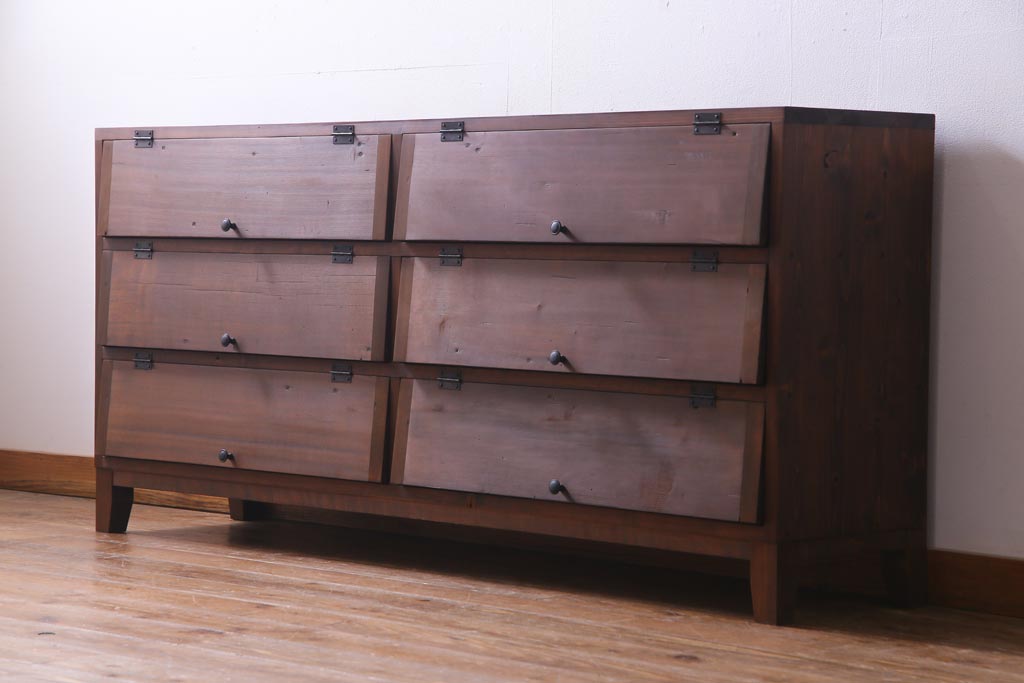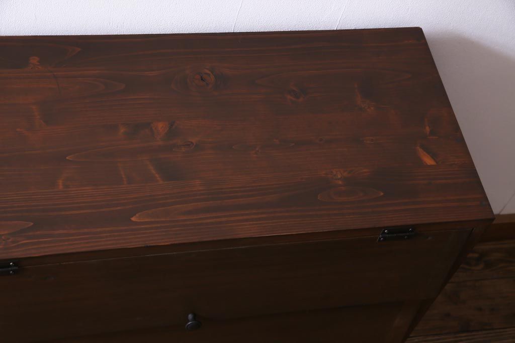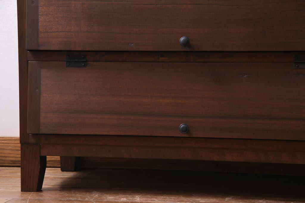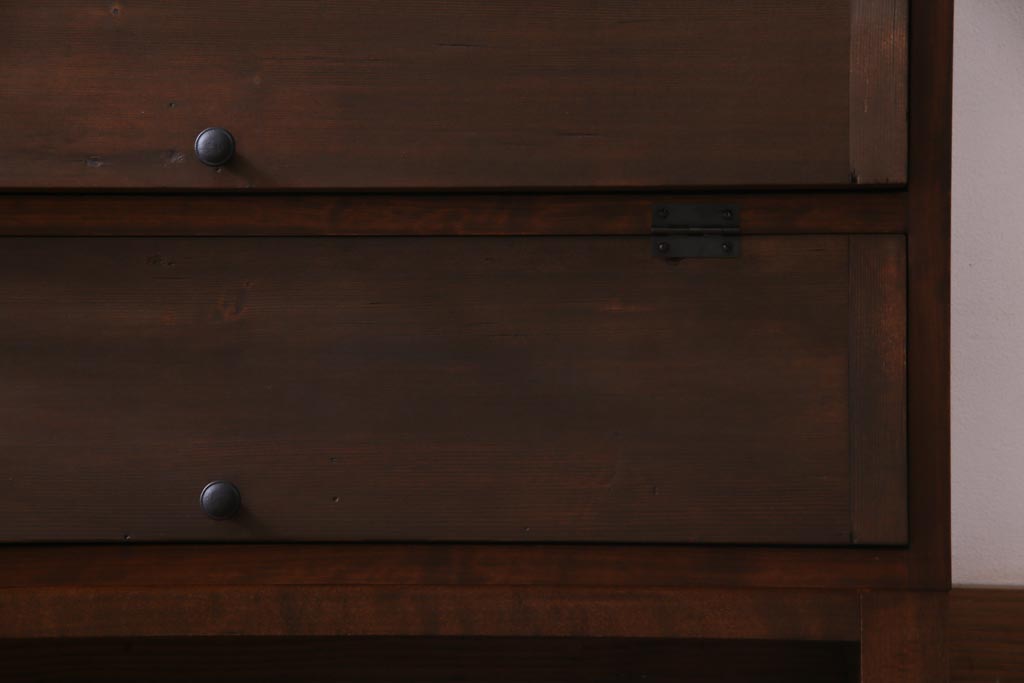 キャビネット・戸棚> 下駄箱 > ラフジュ工房オリジナル 古材リメイク 前板サワラ材 脚付き パタパタ扉が使い勝手の良い収納棚(リビングボード、戸棚、下駄箱)(1)
