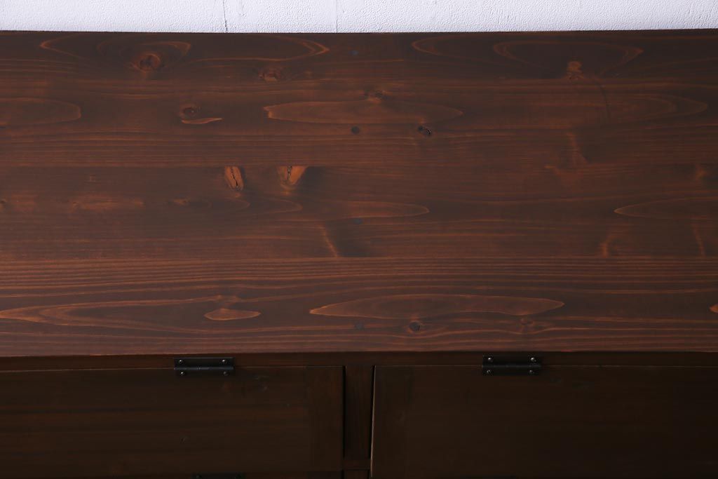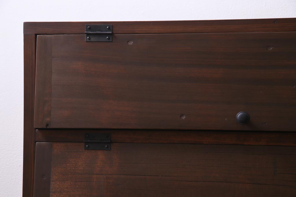 ラフジュ工房オリジナル 古材リメイク 前板サワラ材 脚付き パタパタ扉が使い勝手の良い収納棚(リビングボード、戸棚、下駄箱)(1)