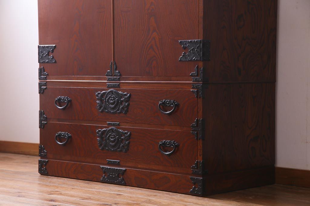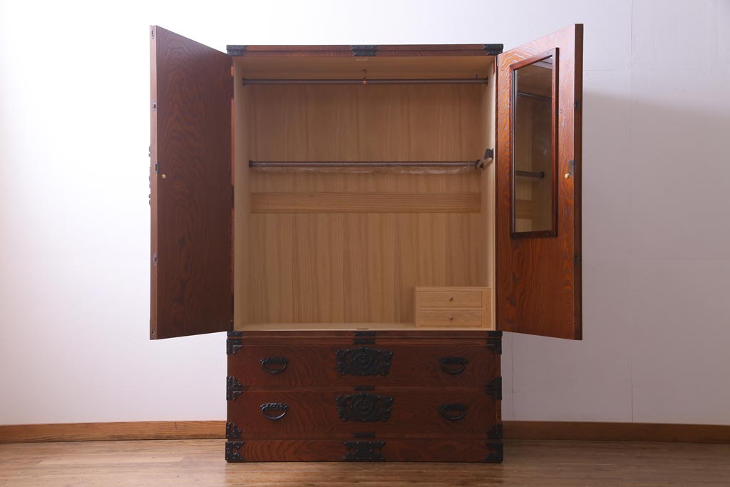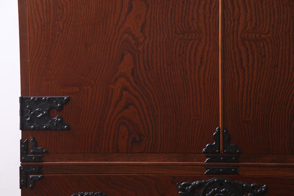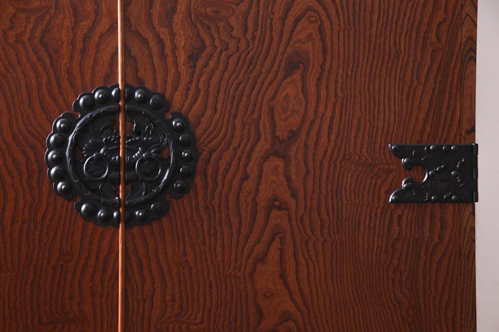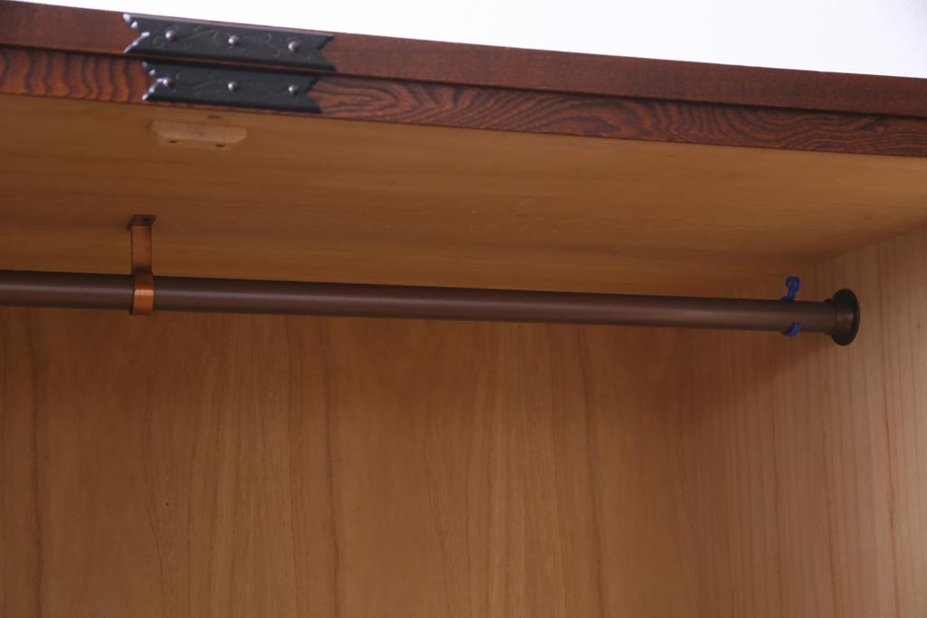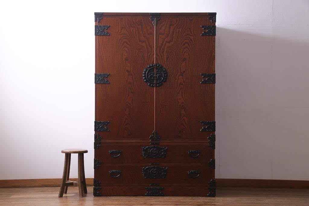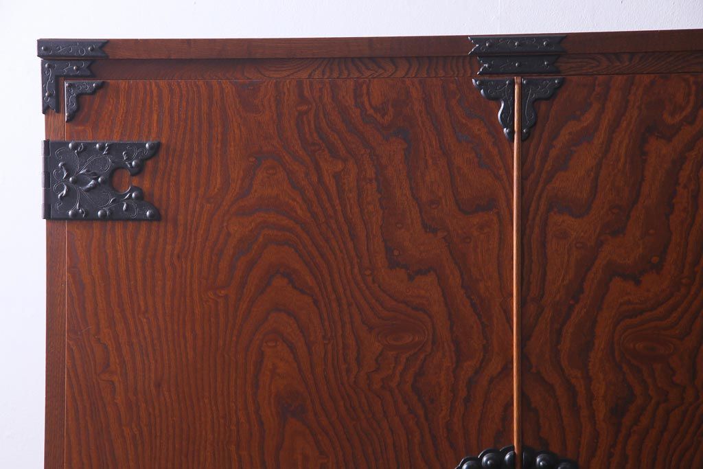 中古 民芸家具 漆塗り ケヤキの杢目が力強いワードローブ(洋服タンス)
