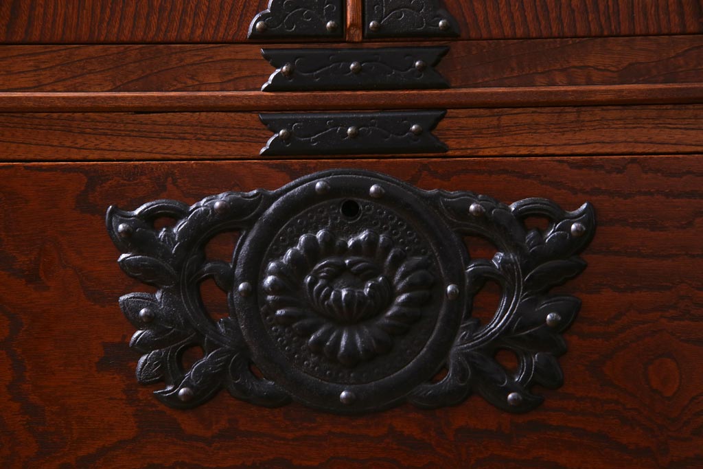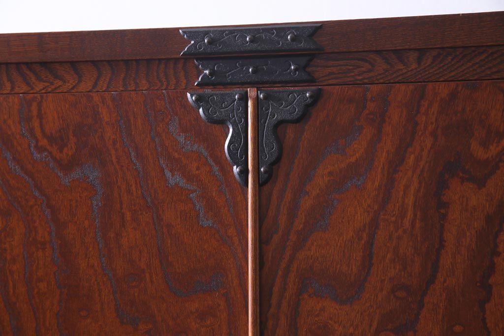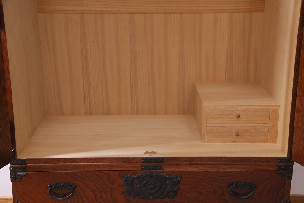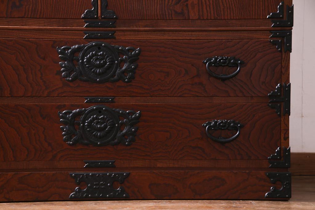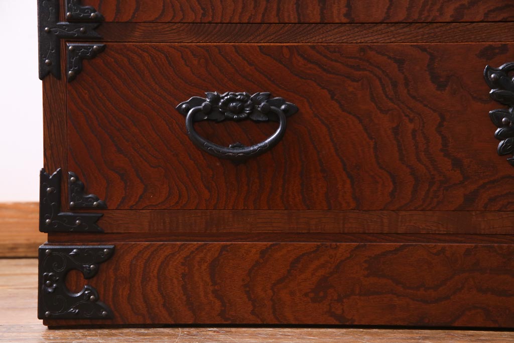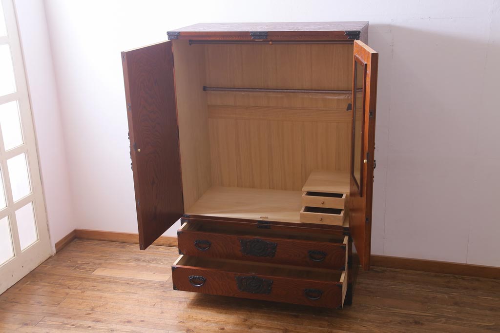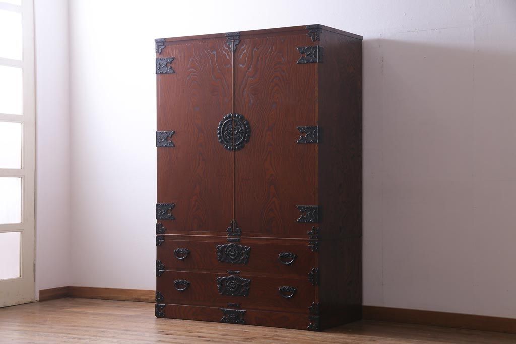 中古 民芸家具 漆塗り ケヤキの杢目が力強いワードローブ(洋服タンス)