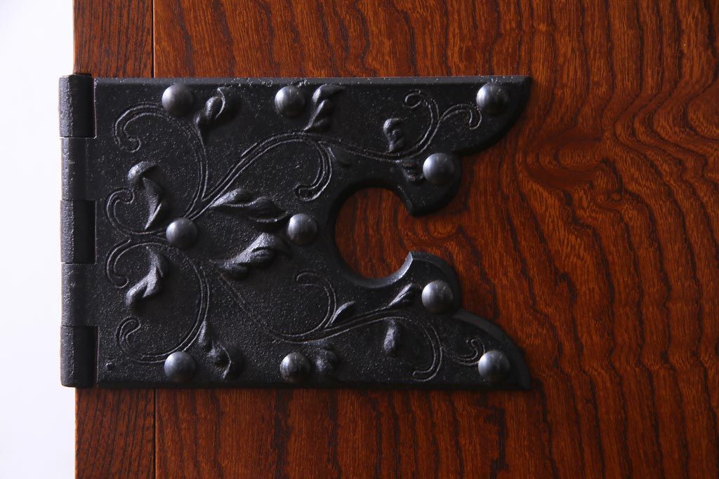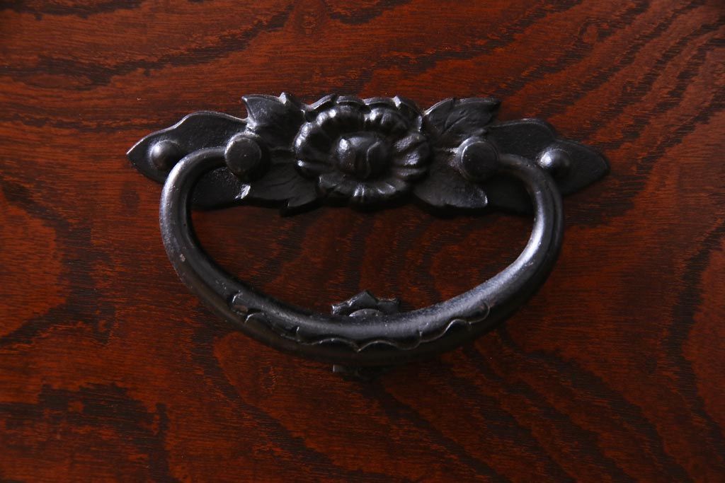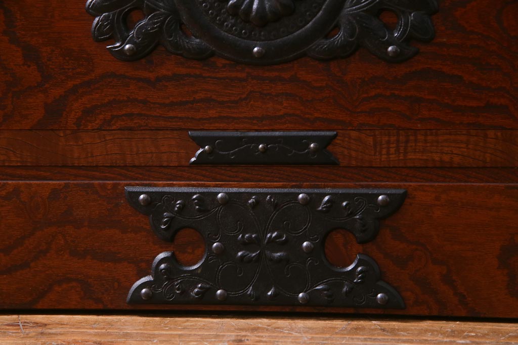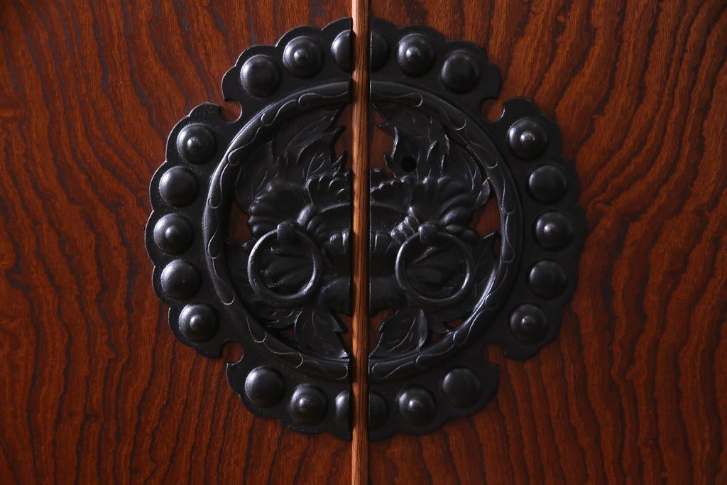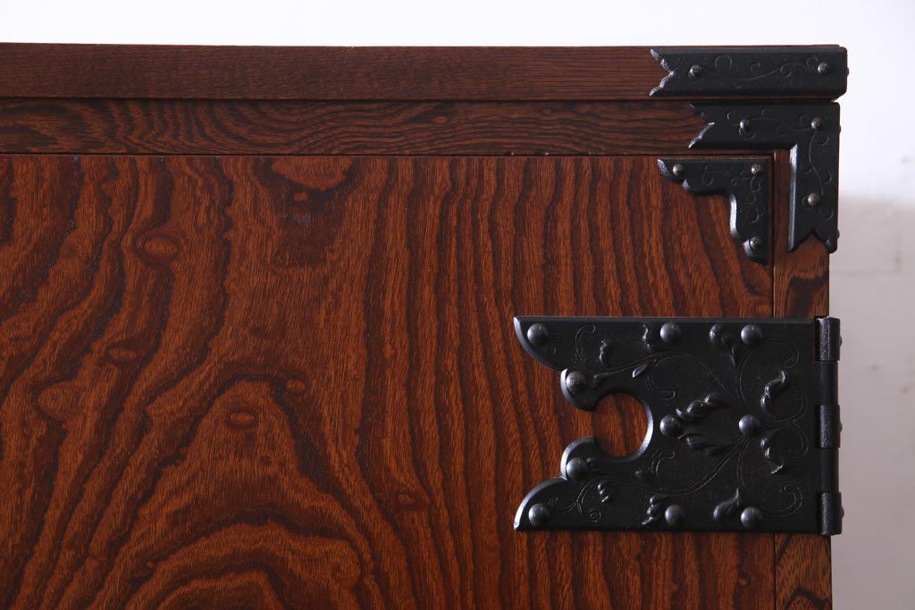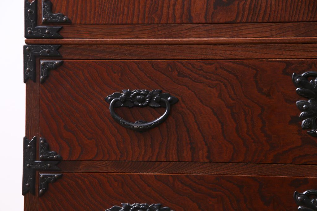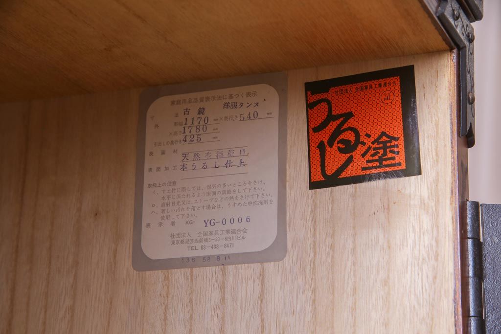 中古 民芸家具 漆塗り ケヤキの杢目が力強いワードローブ(洋服タンス)
