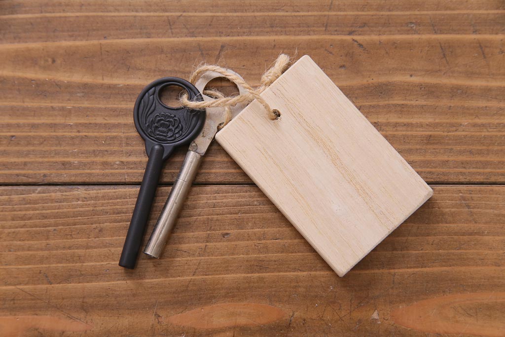 鍵は付属します。画像にありますように、袋に入れお付けします。スムーズに動くように調整していますが、あくまでも古いものや中古品ですので、長期の使用保証は出来かねます。ご購入後不具合が発生した場合は、当店でサポートさせていただきますので、お気軽にご相談くださいませ。