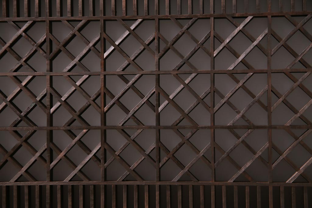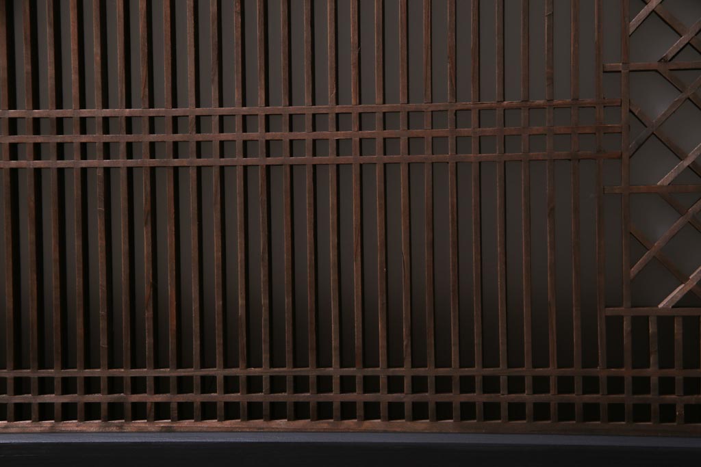 ペイント建具 片面ガラス 格子・枡つなぎ シックな色合いの組子欄間(明り取り、建具)