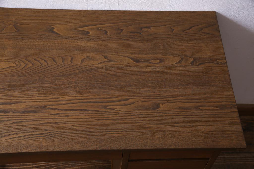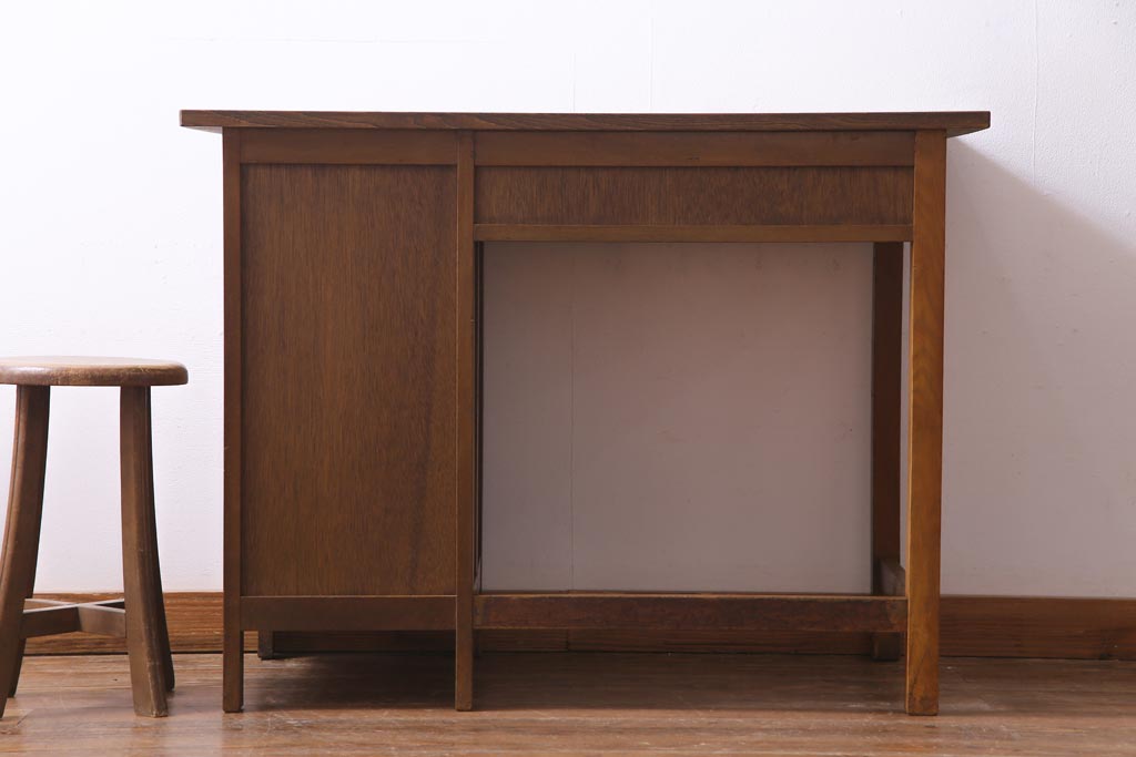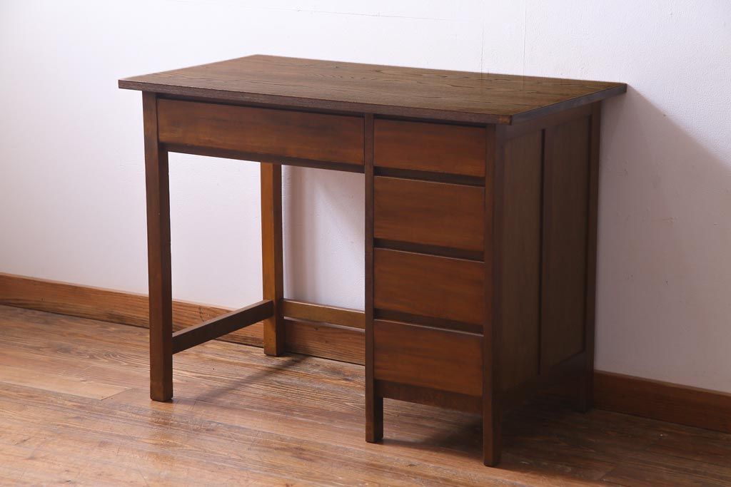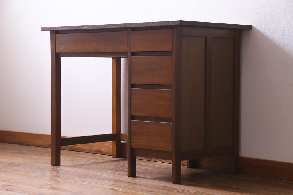 昭和レトロ 薄型リメイク ナラ材・栗材 シンプルな引き出しの片袖デスク(机、在宅ワーク、在宅用ワークデスク)
