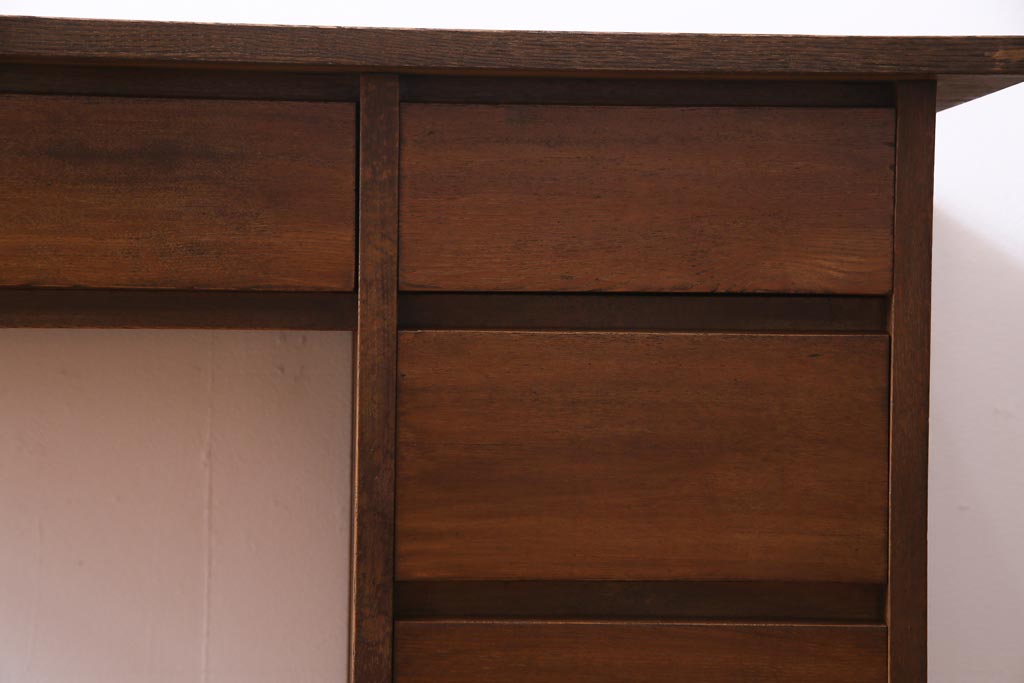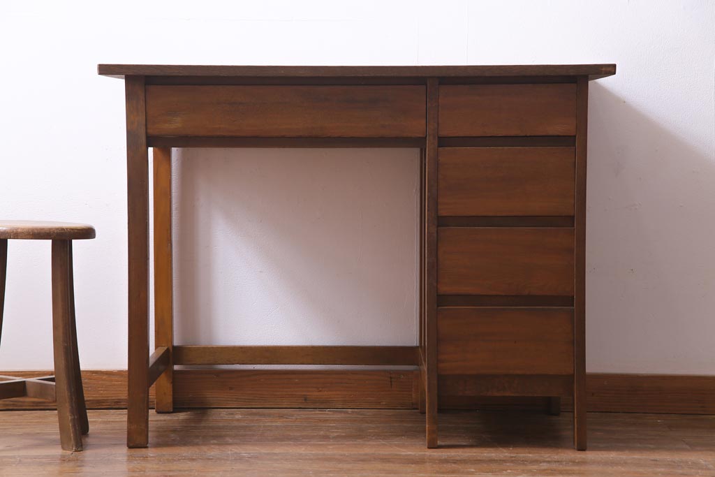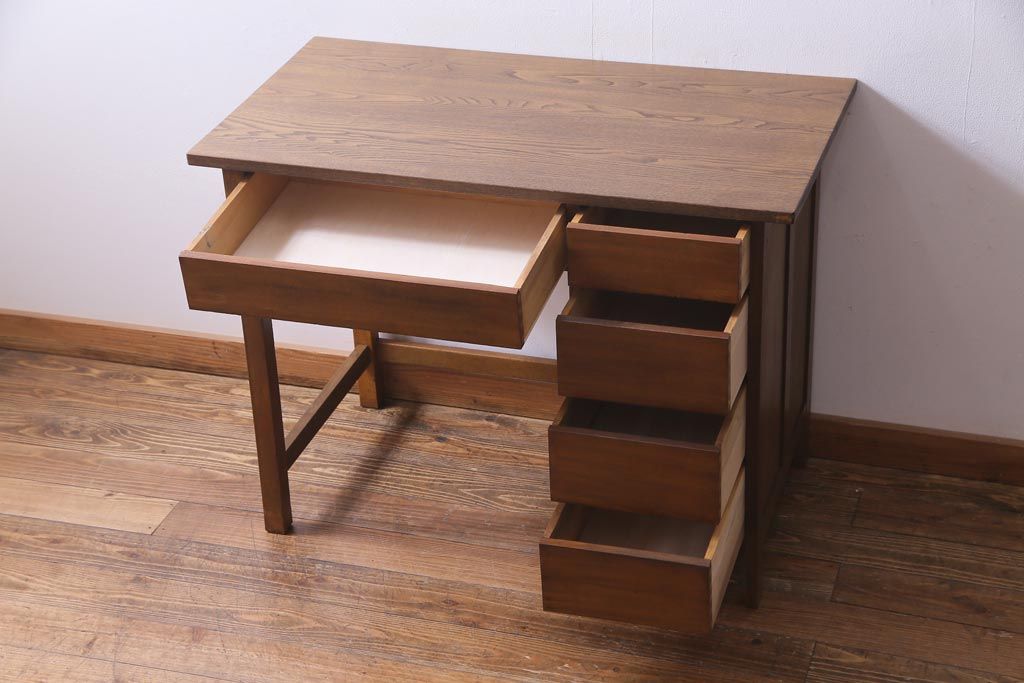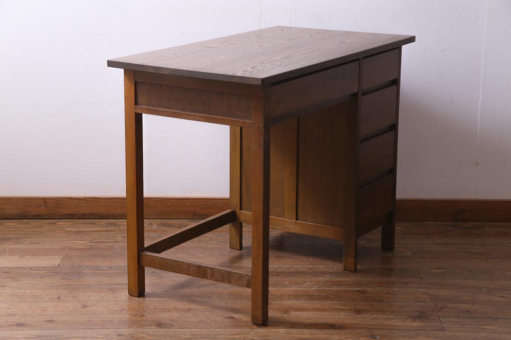ラフジュ工房> デスク> ワークデスク > 昭和レトロ 薄型リメイク ナラ材・栗材 シンプルな引き出しの片袖デスク(机、在宅ワーク、在宅用ワークデスク)