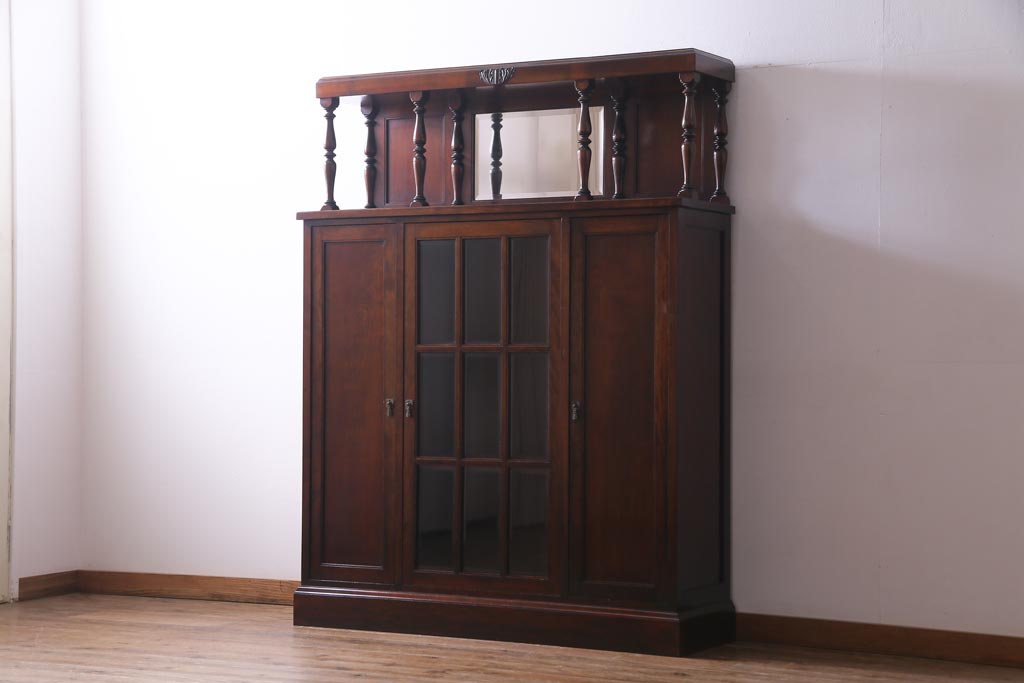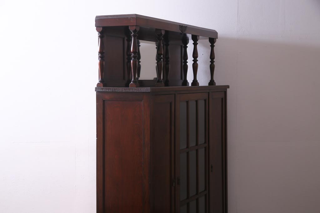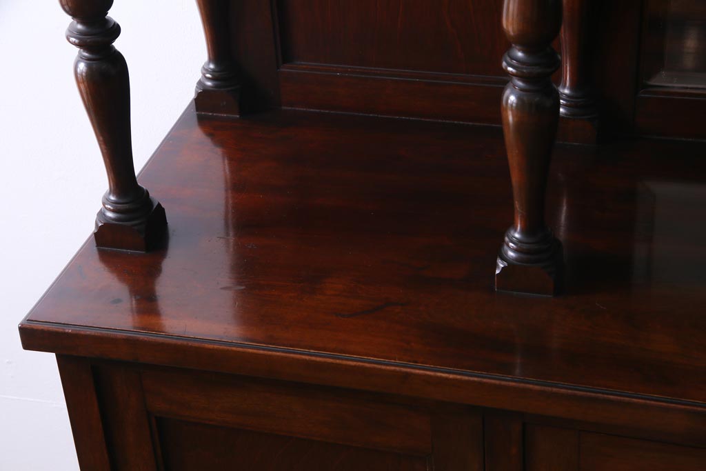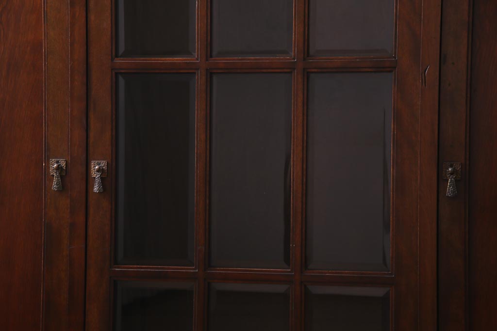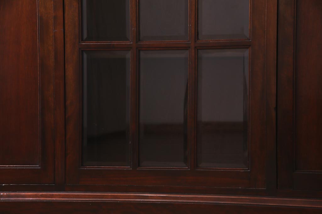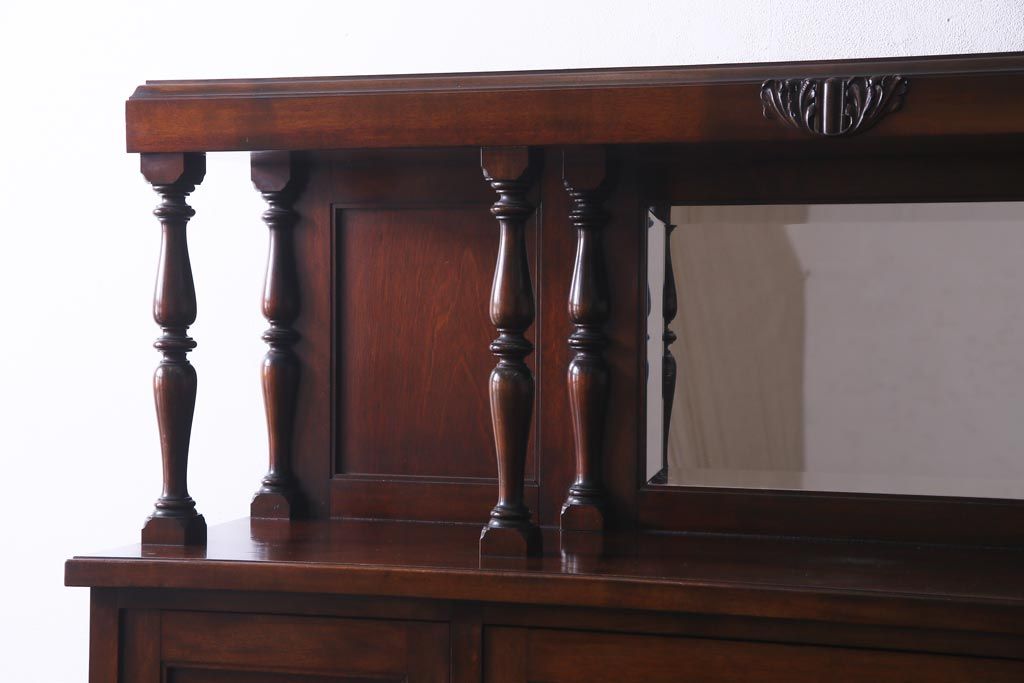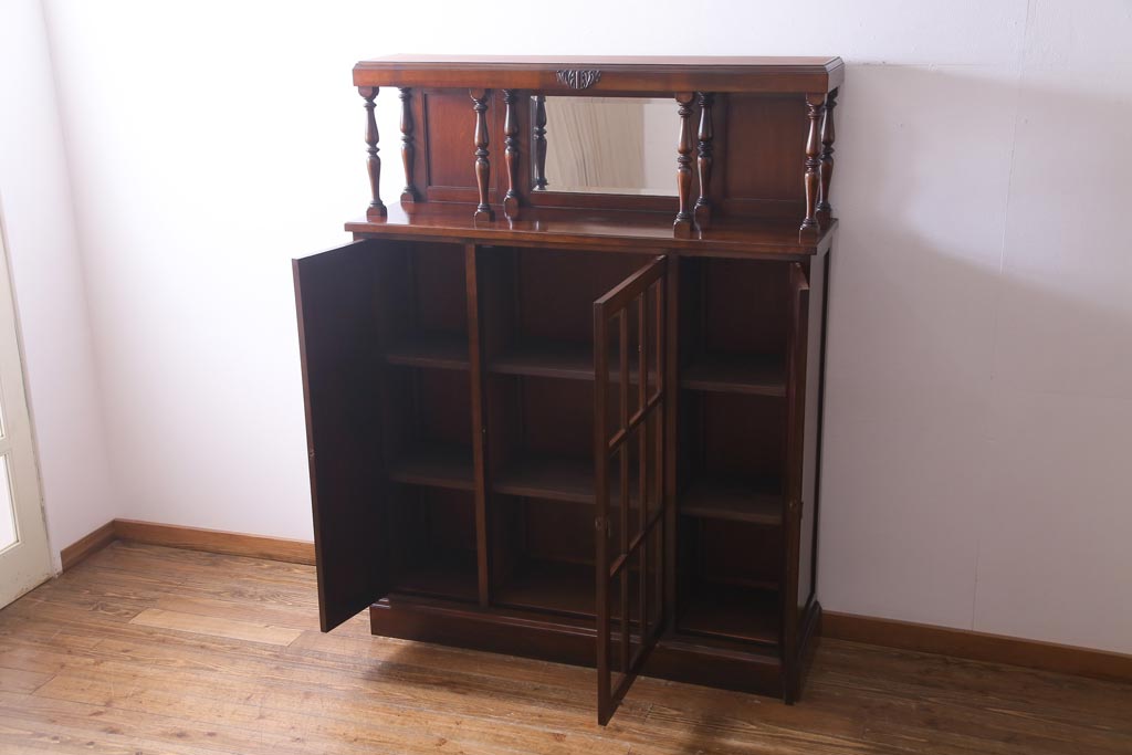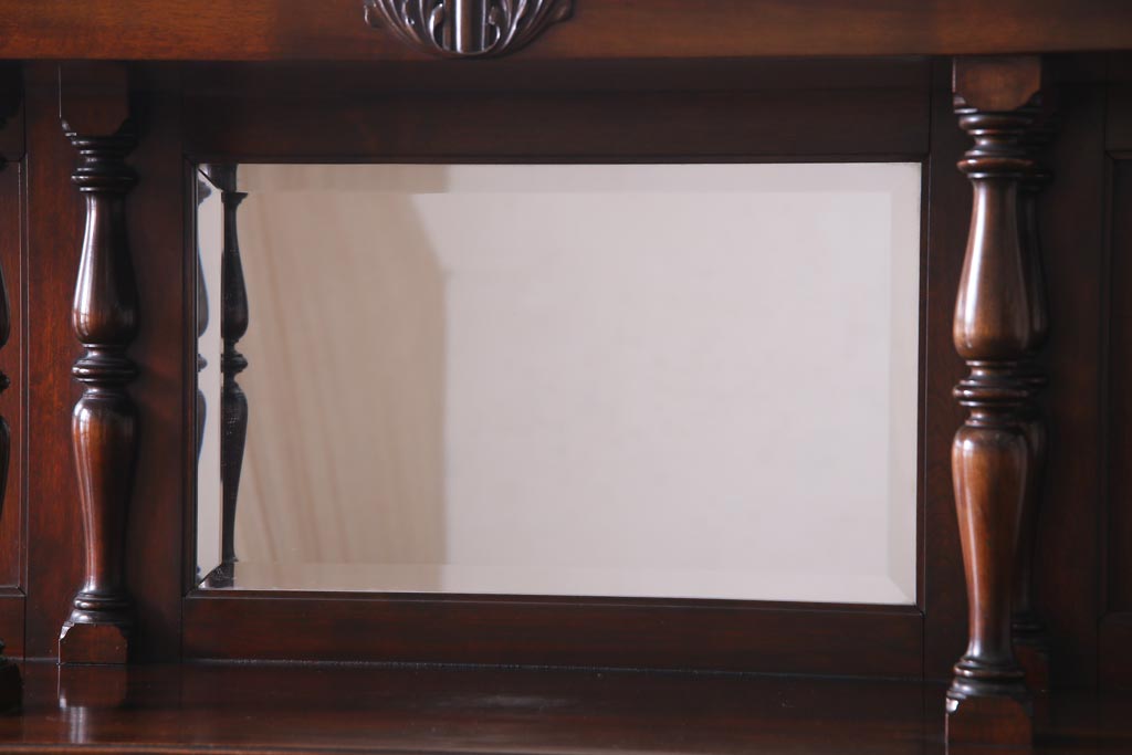 アンティーク家具 イギリスアンティーク ウォールナット材 鏡付き 凛とした佇まいの大型キャビネット(収納棚、戸棚)